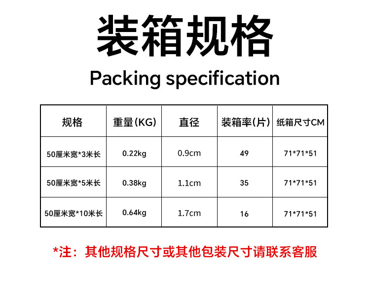 | 50cm wide × 10 meters long [a large roll will be sent, the longest for common style is 25 meters, and the longest for extra-thick style is 10 meters] | CN¥ 18.6 |