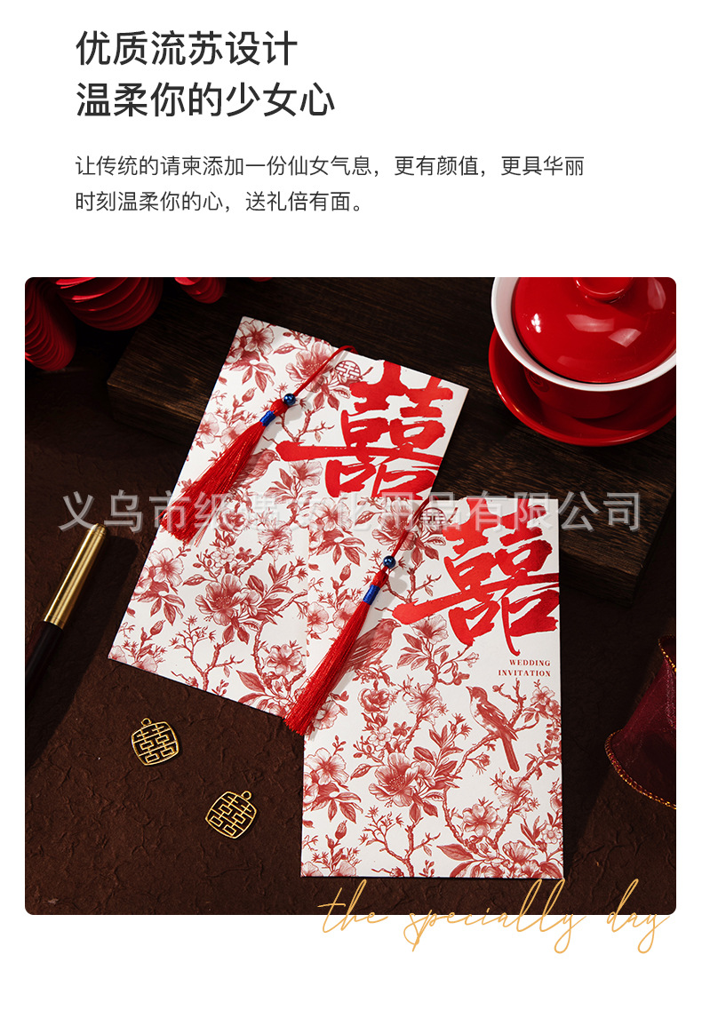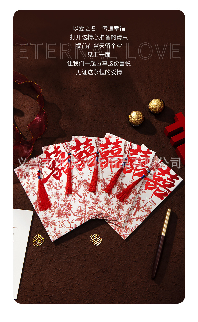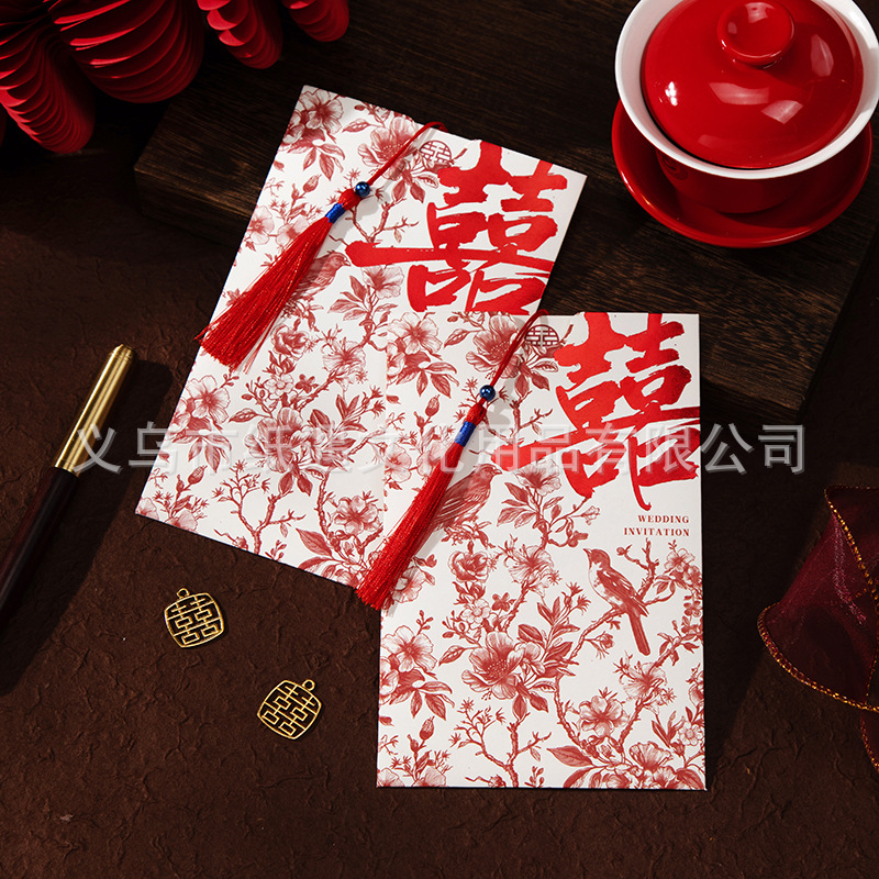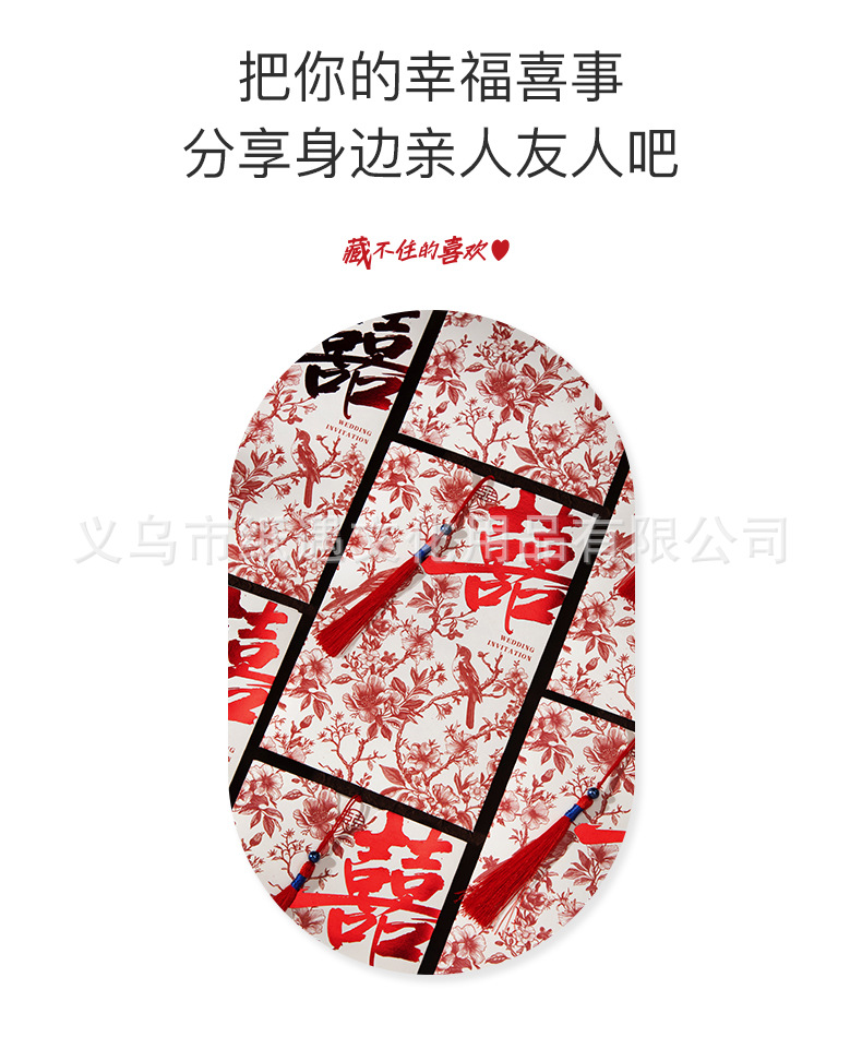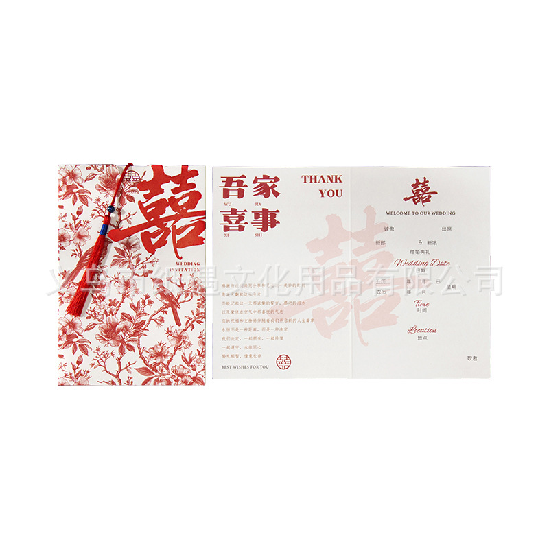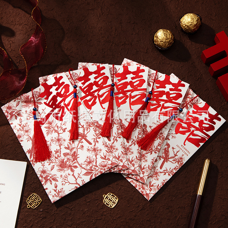 [happy family event] gold-embossed double happiness invitation card with tassels