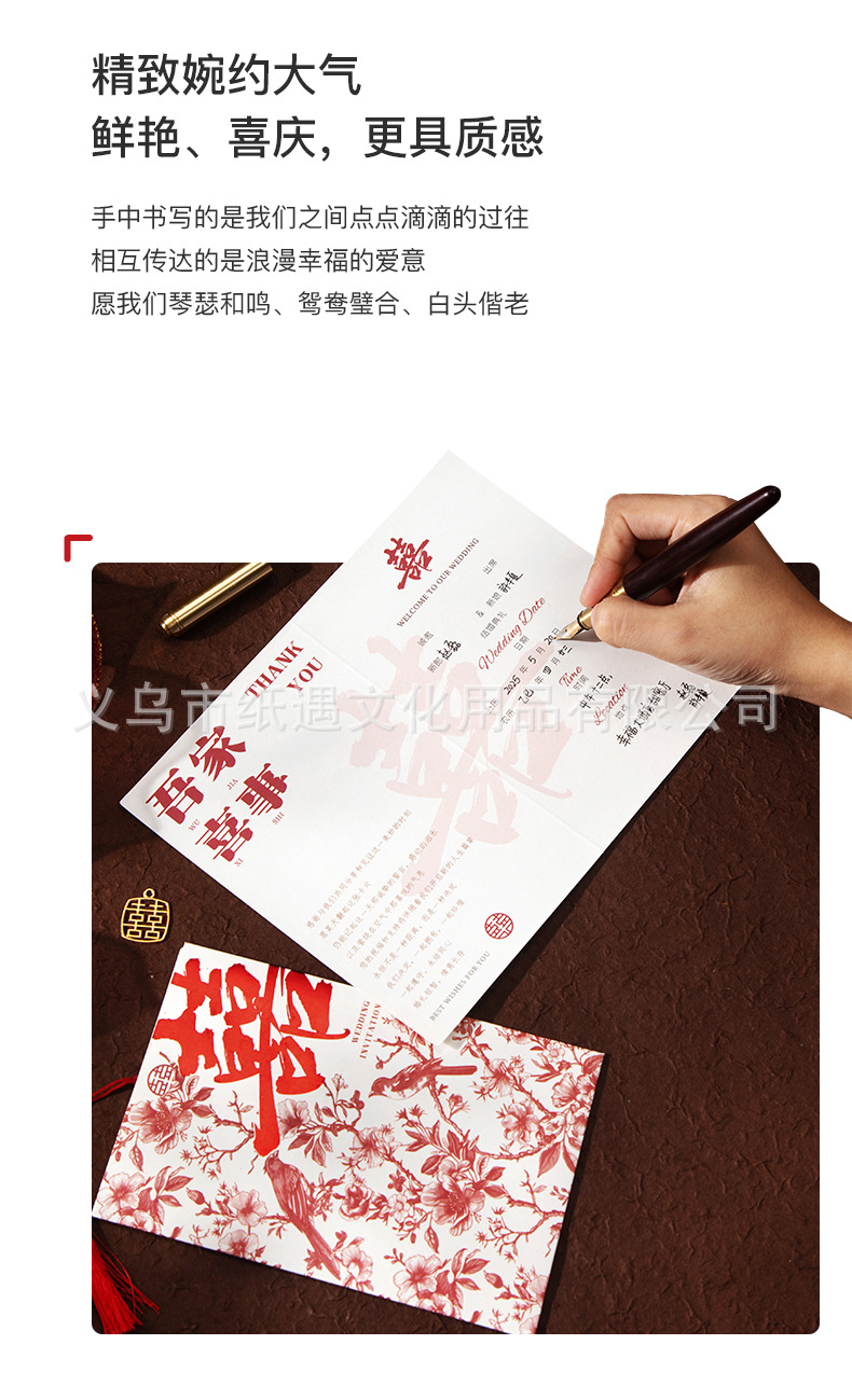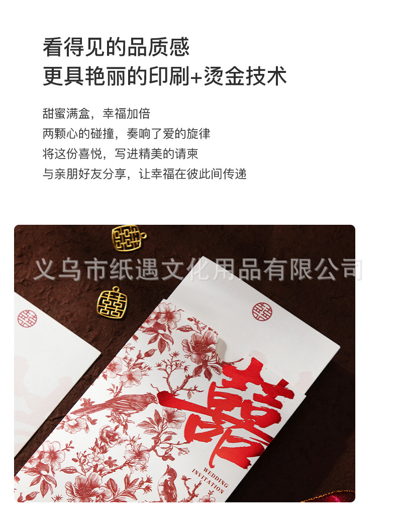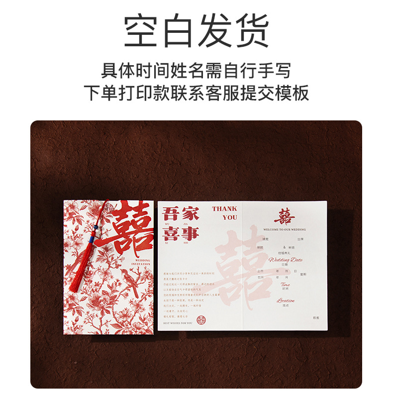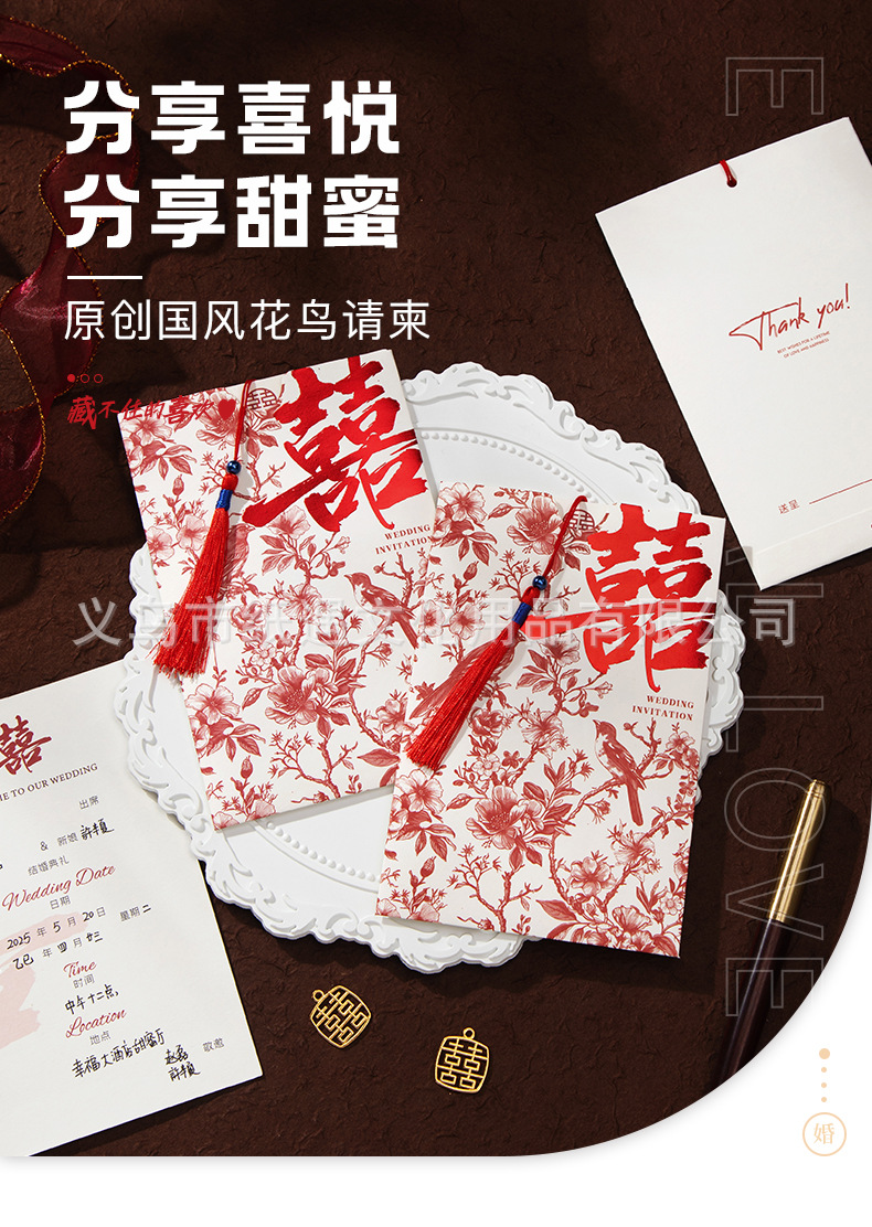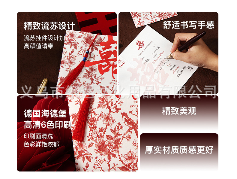[happy family event] gold-embossed double happiness invitation card with tassels
