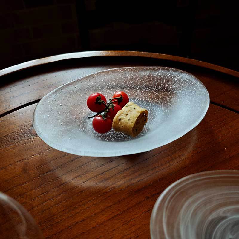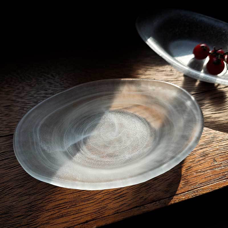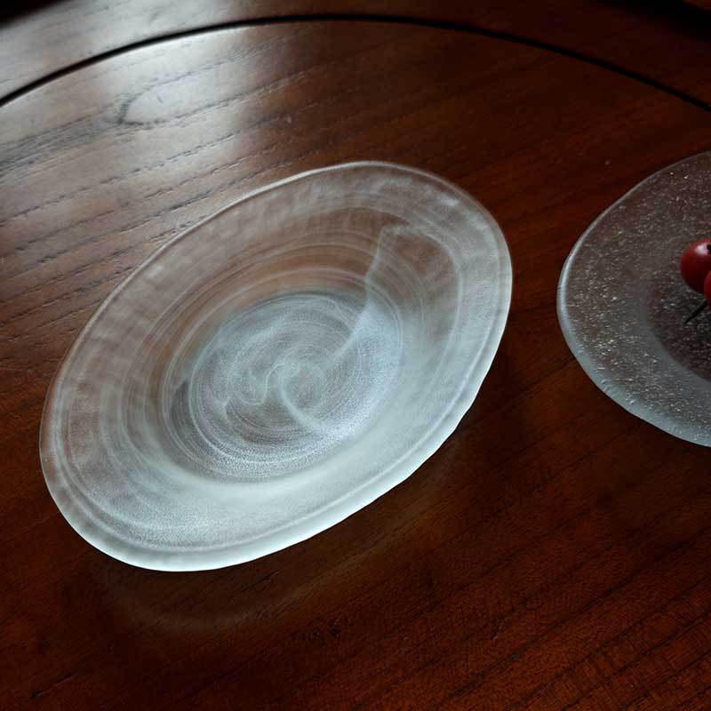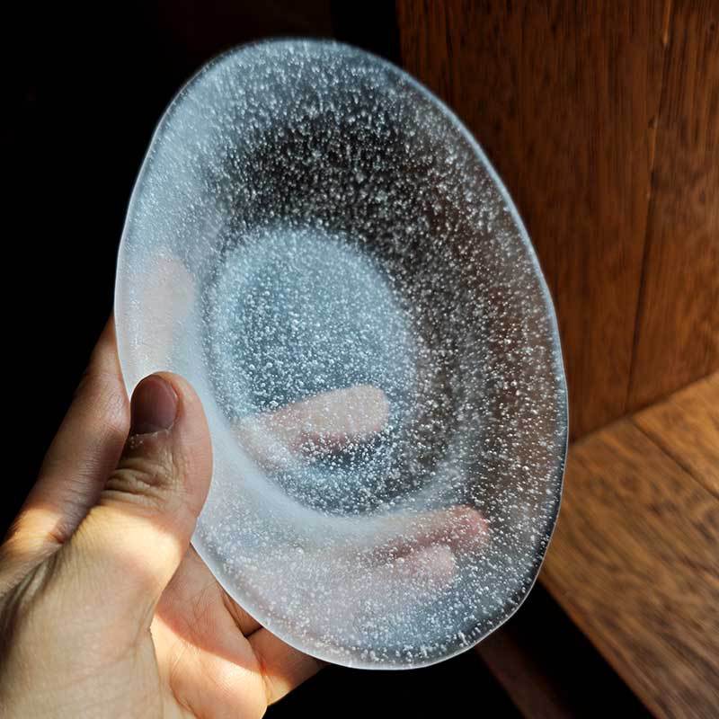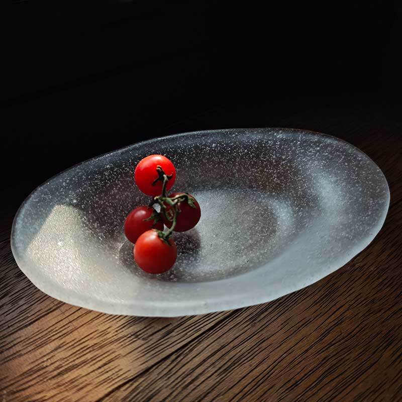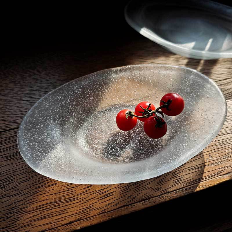 日式气泡玻璃盘椭圆点心餐盘创意水果沙拉甜品盘高颜值云雾收纳盘