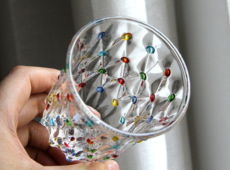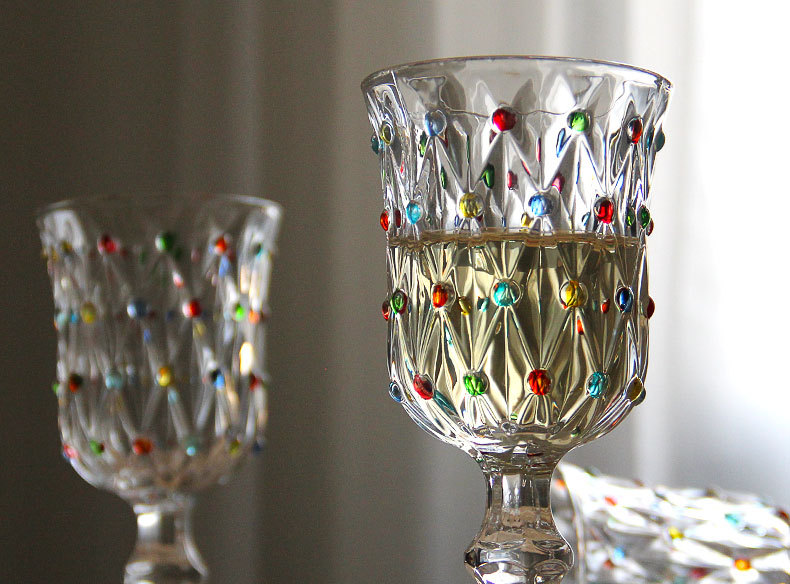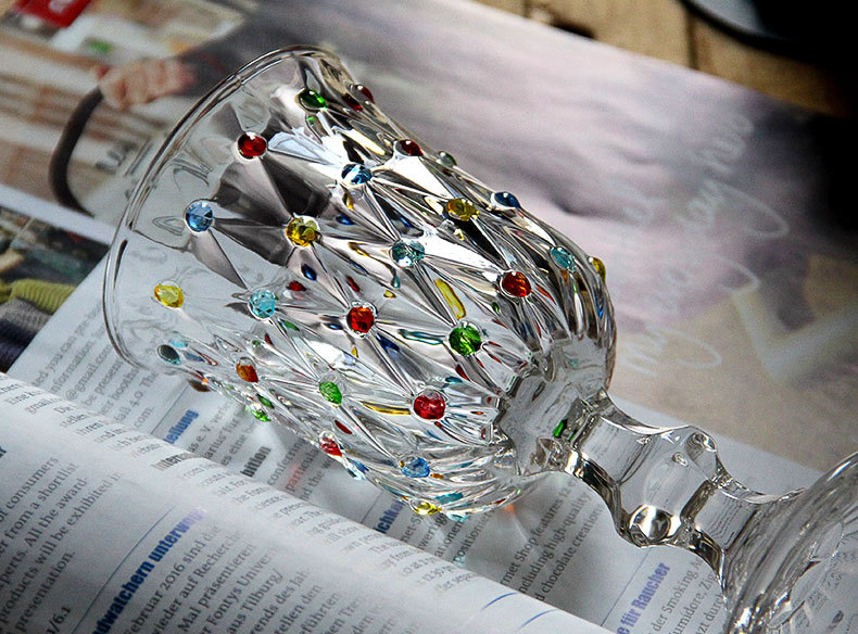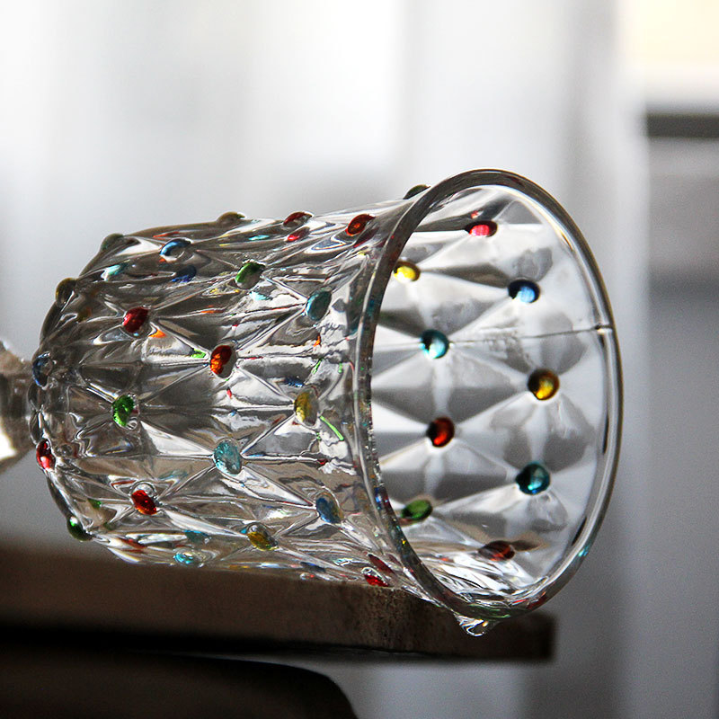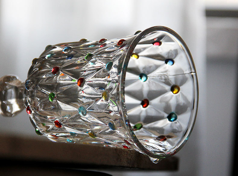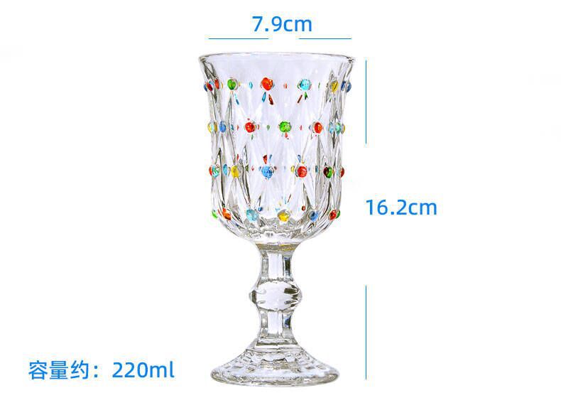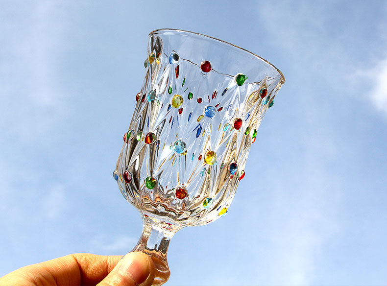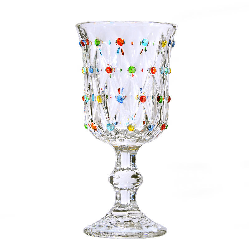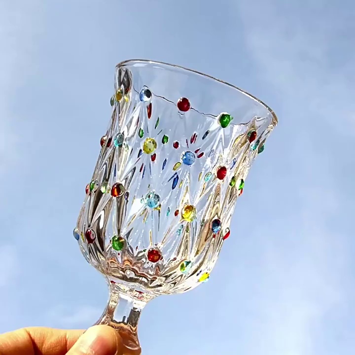 彩点高脚杯设计师压制加厚创意葡萄酒杯手绘高颜值中古红酒玻璃杯