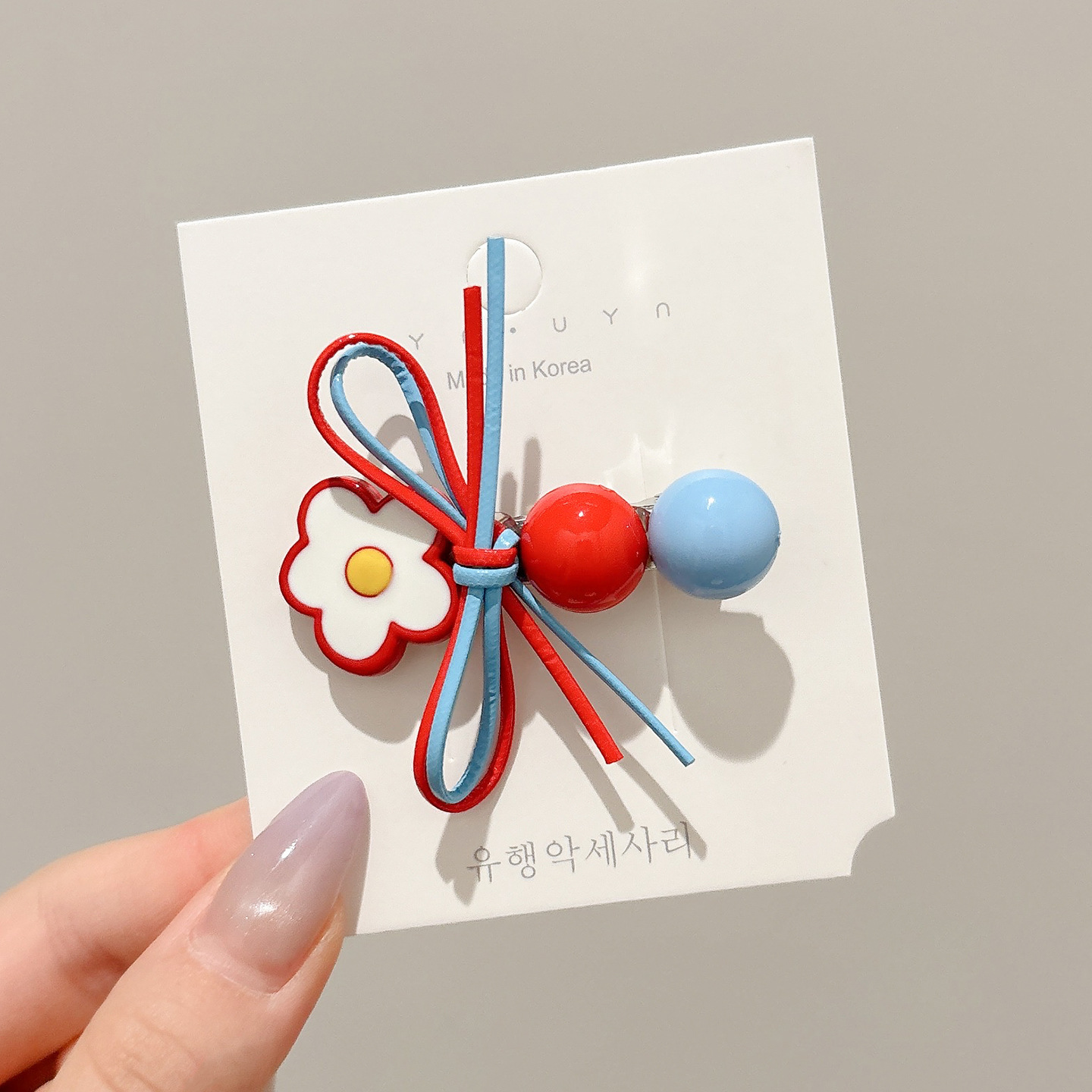 1# red and blue flower side clip about 5.5cm