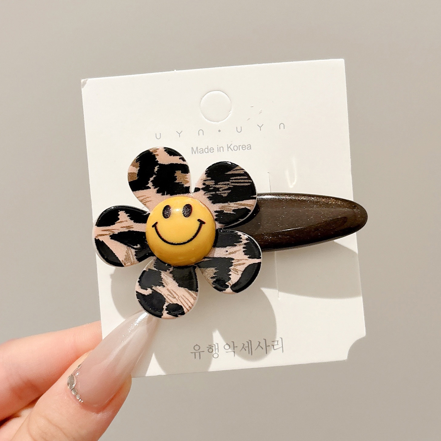 1# one pack ~ leopard print sunflower hair clip-bottom clip 6cm sunflower about 4.3cm