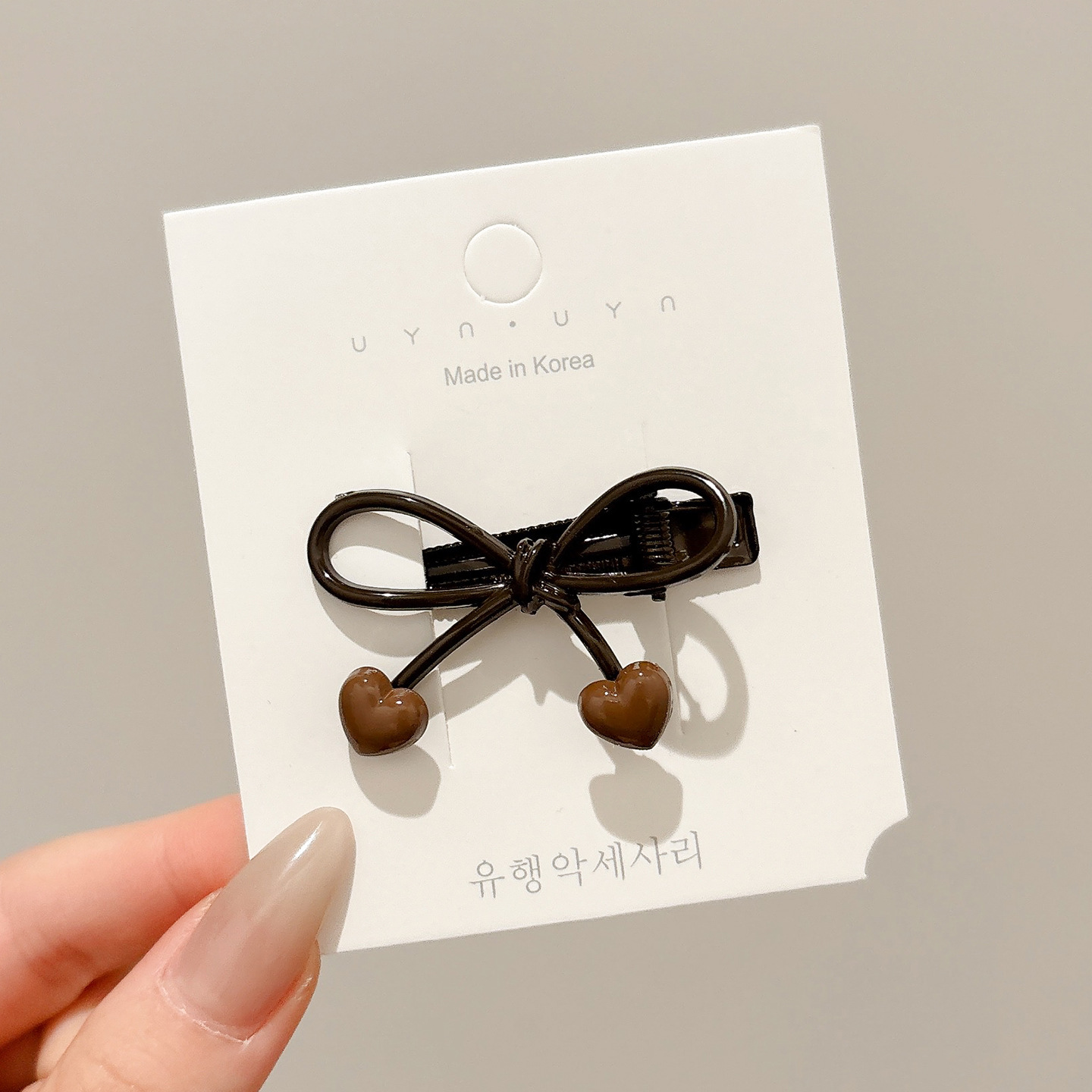 4# single [coffee-colored heart] bow barrettes