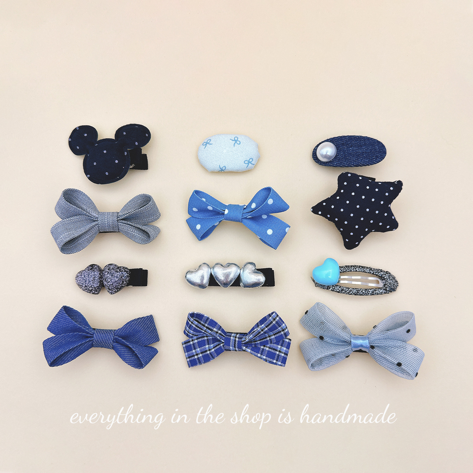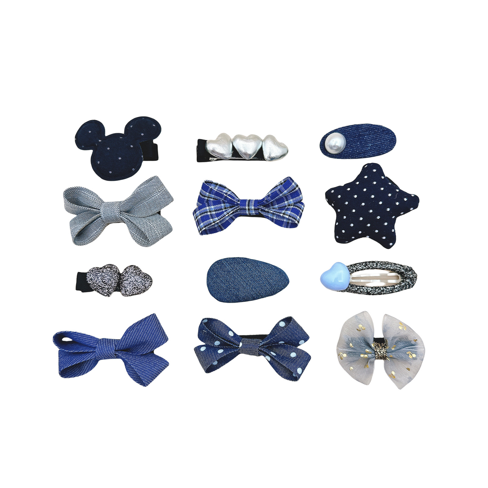 denim bow love heart-shaped hairpin