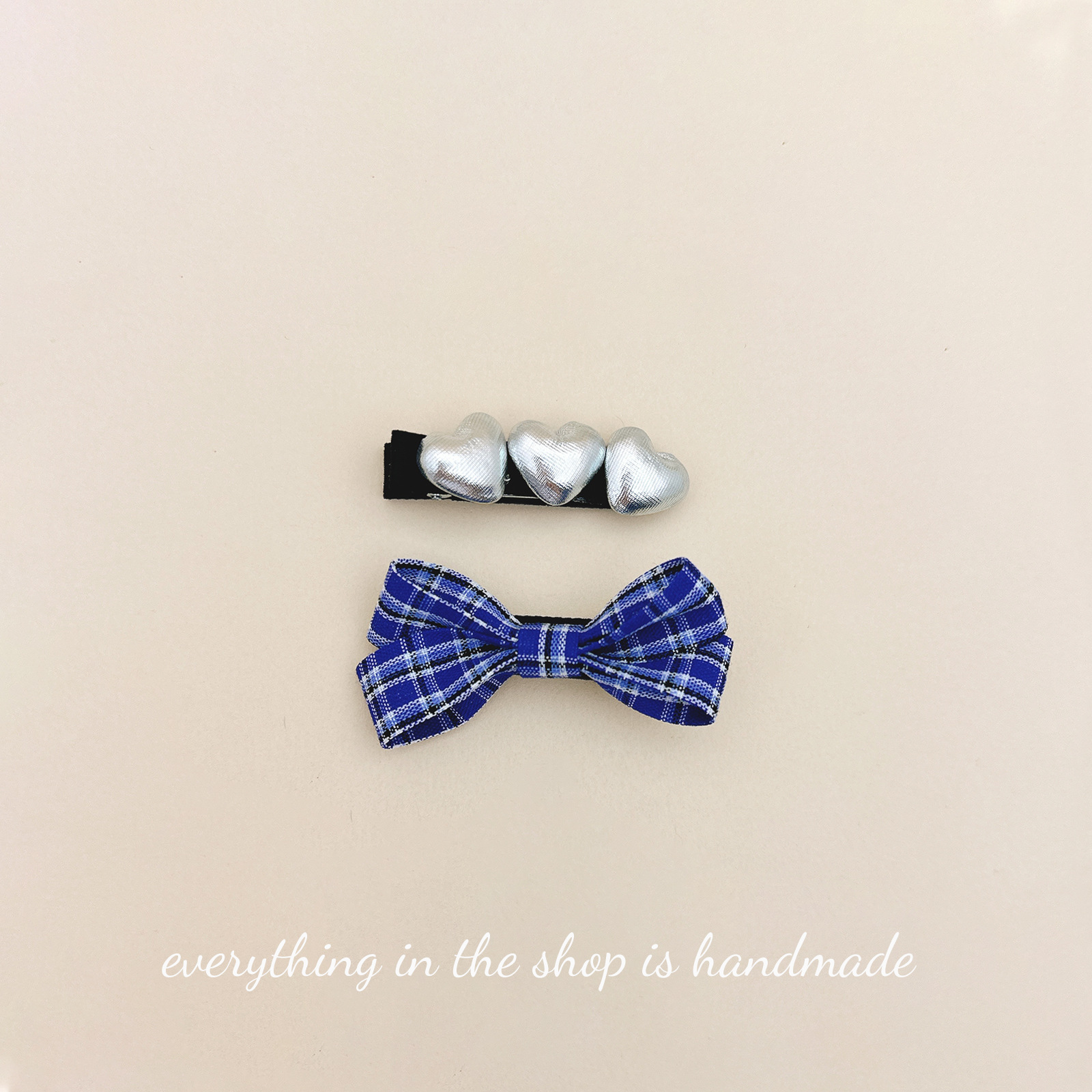 plaid bow love heart-shaped hairpin