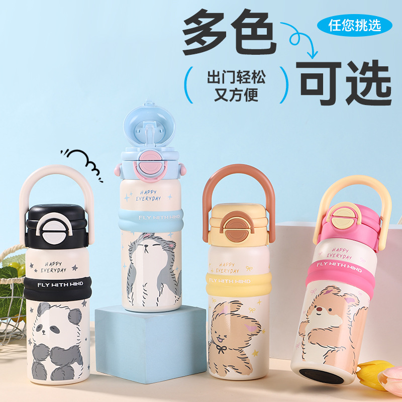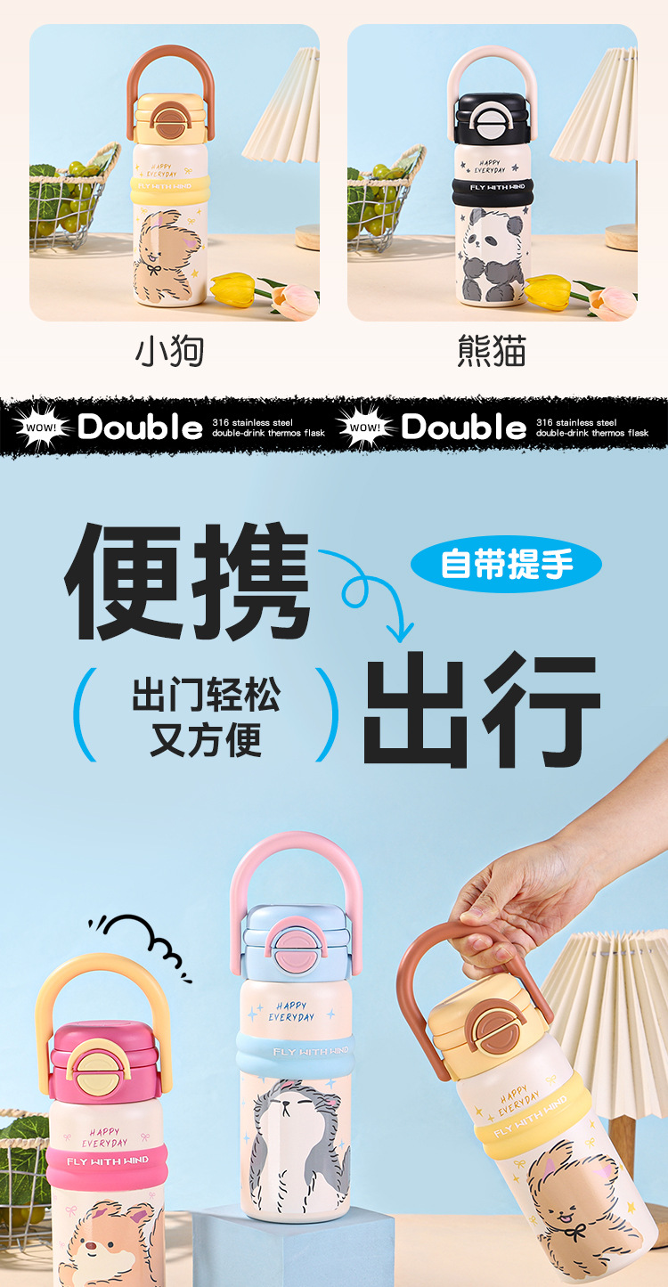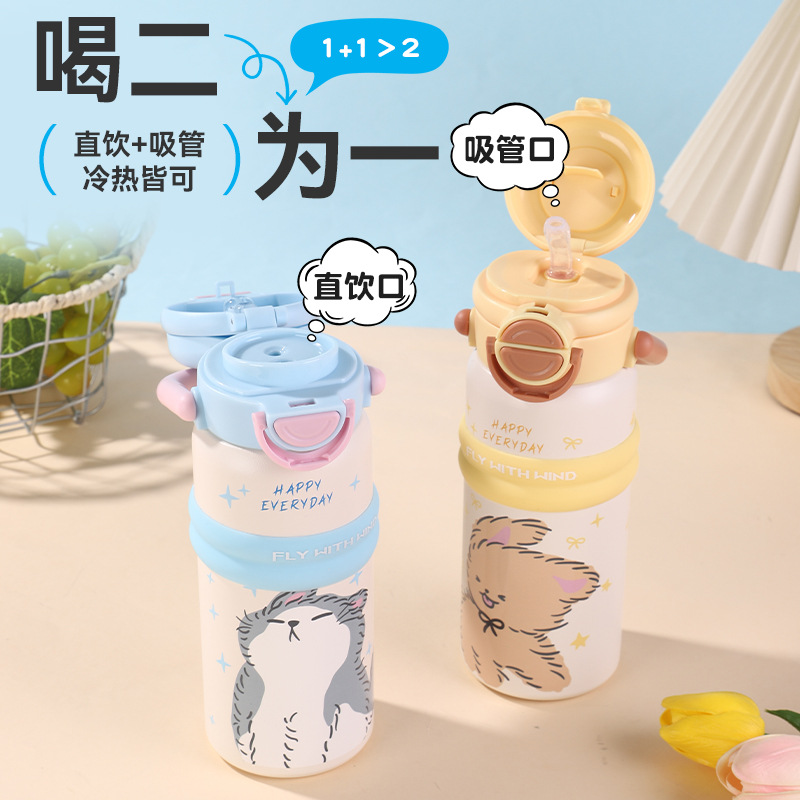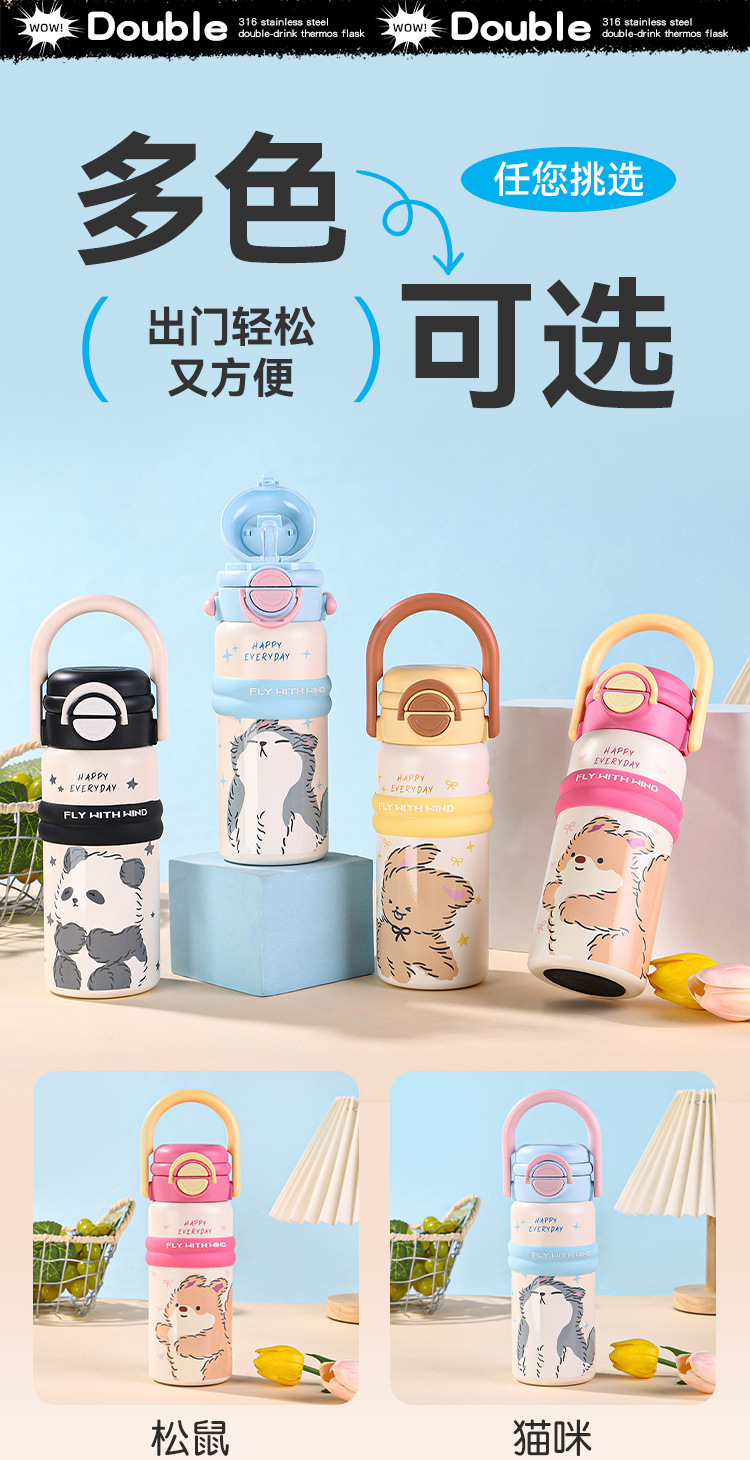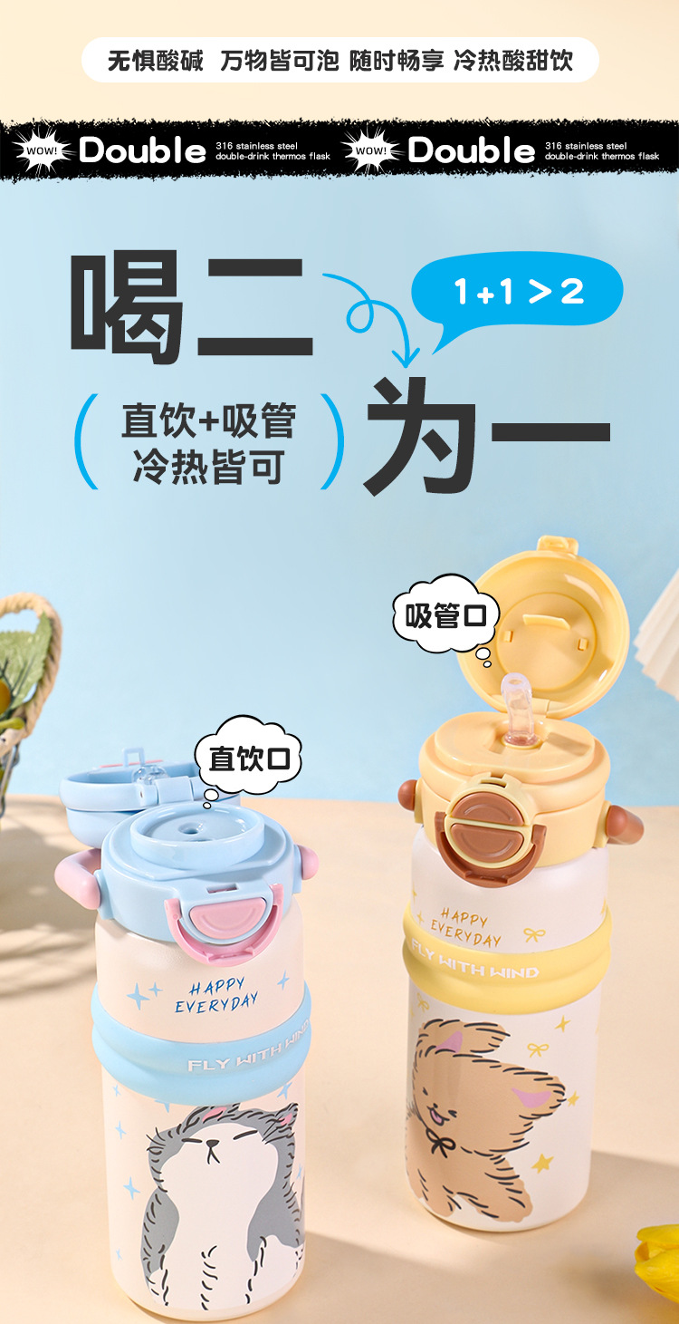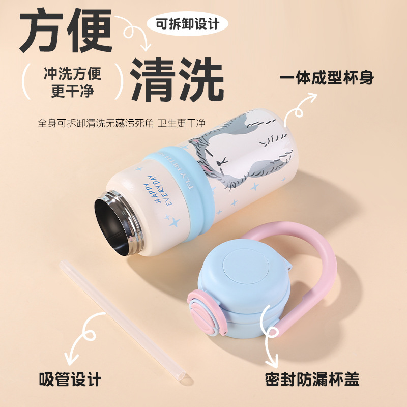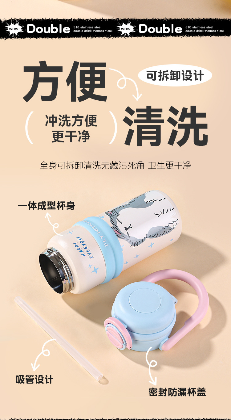 new 316 stainless steel vacuum cup cute fashion portable children's water cup large capacity cartoon double drink cup with straw