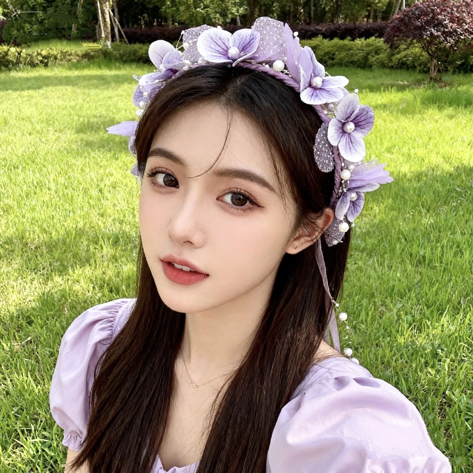 19# fairy pearl flower headband-purple
