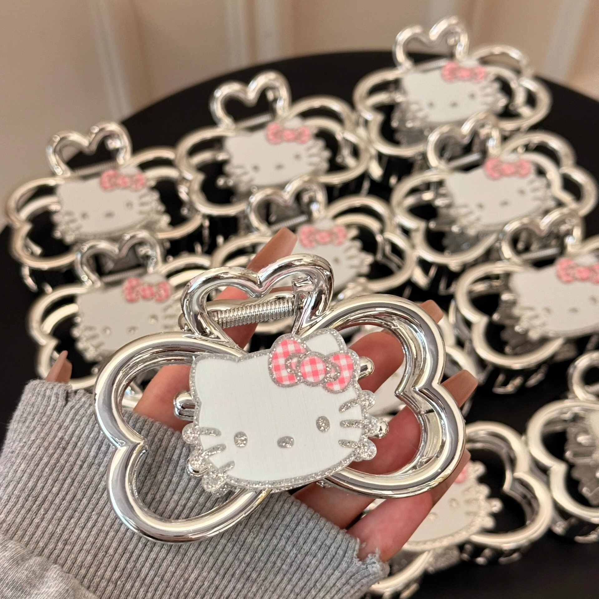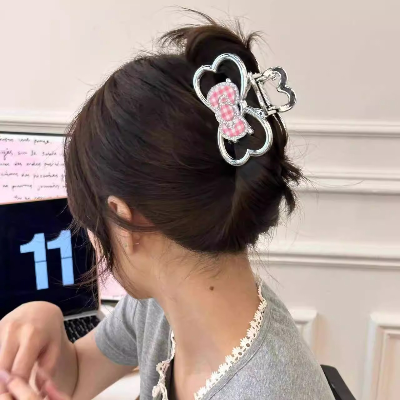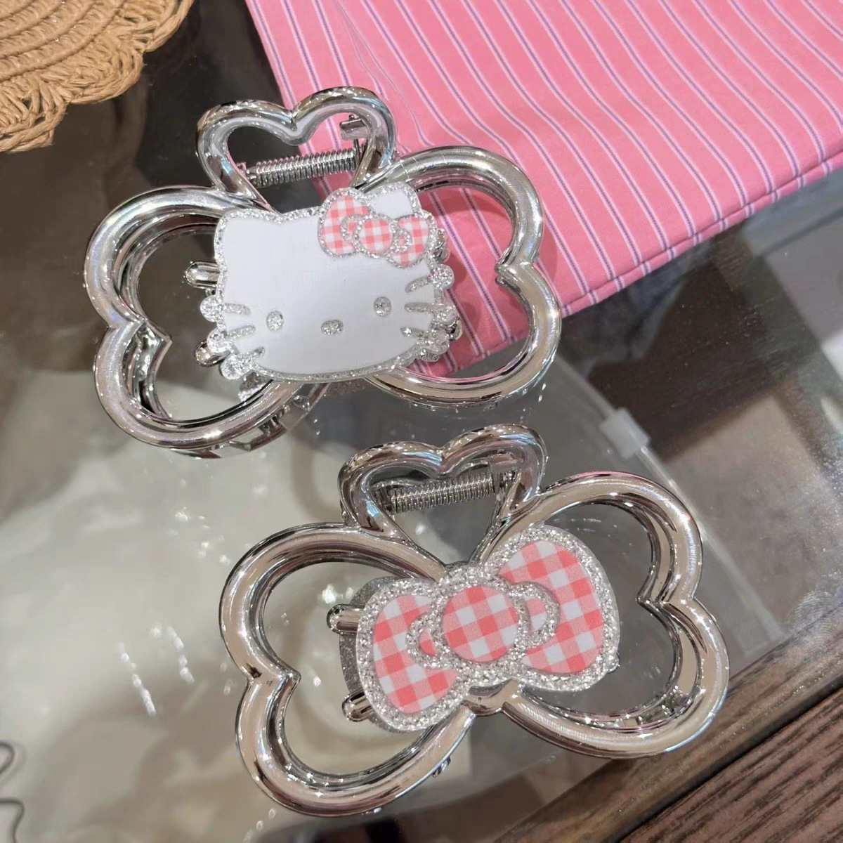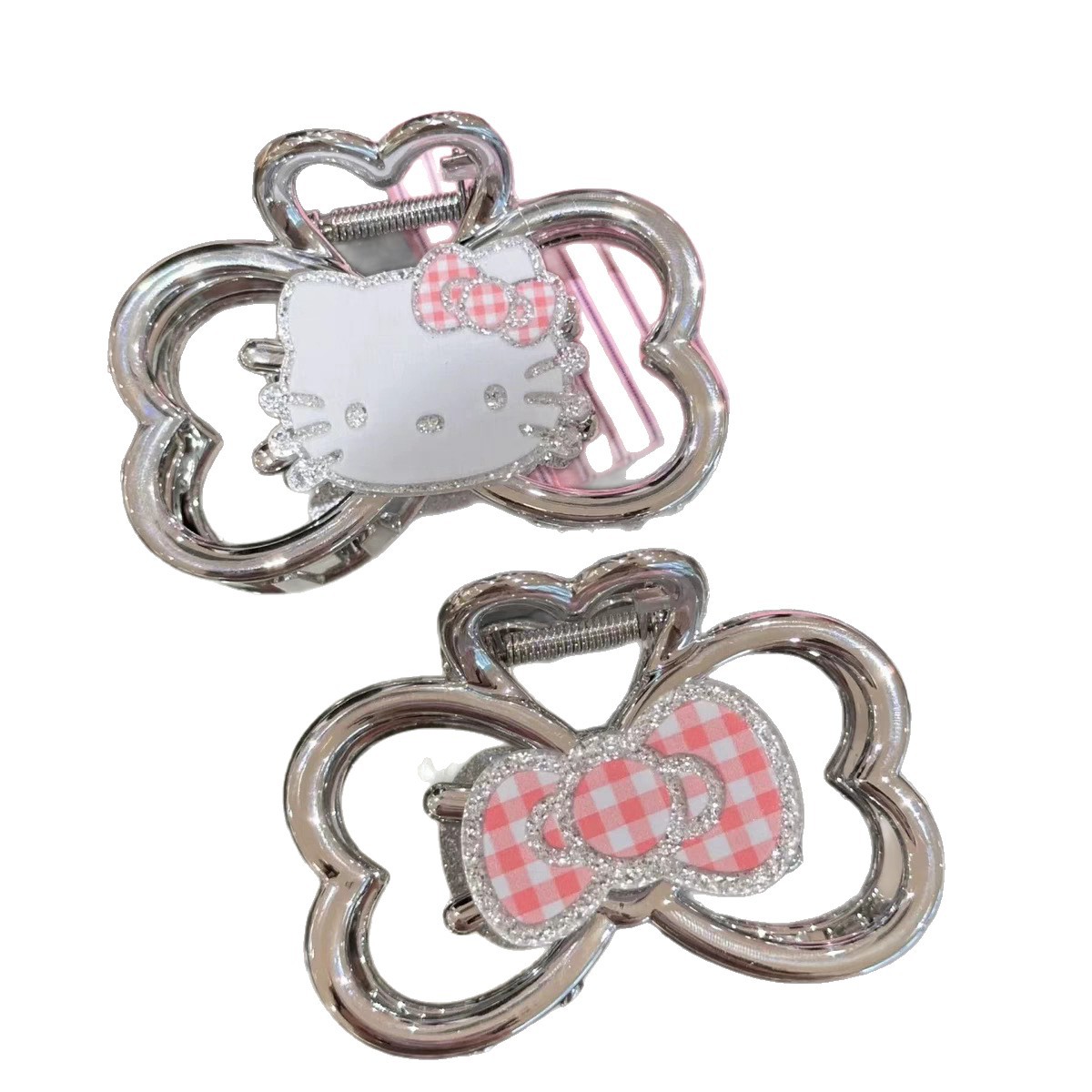 4# cute cat barrettes -- pink bow