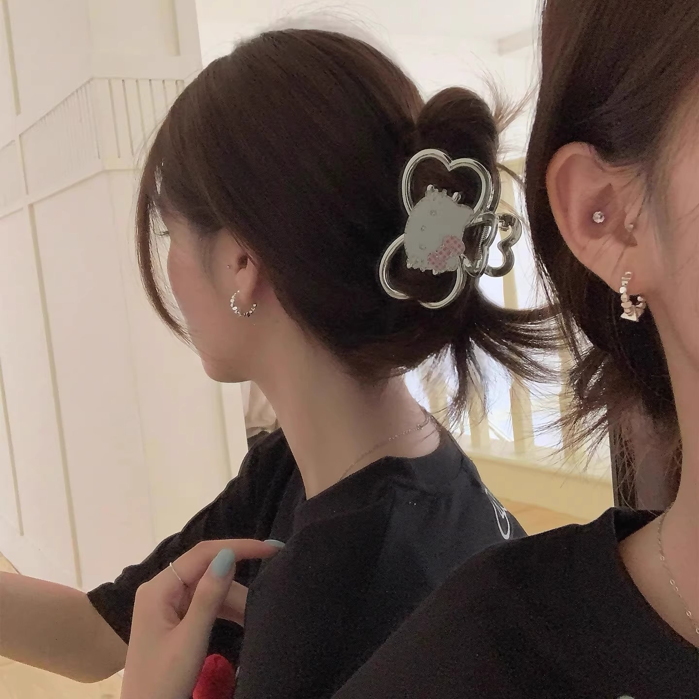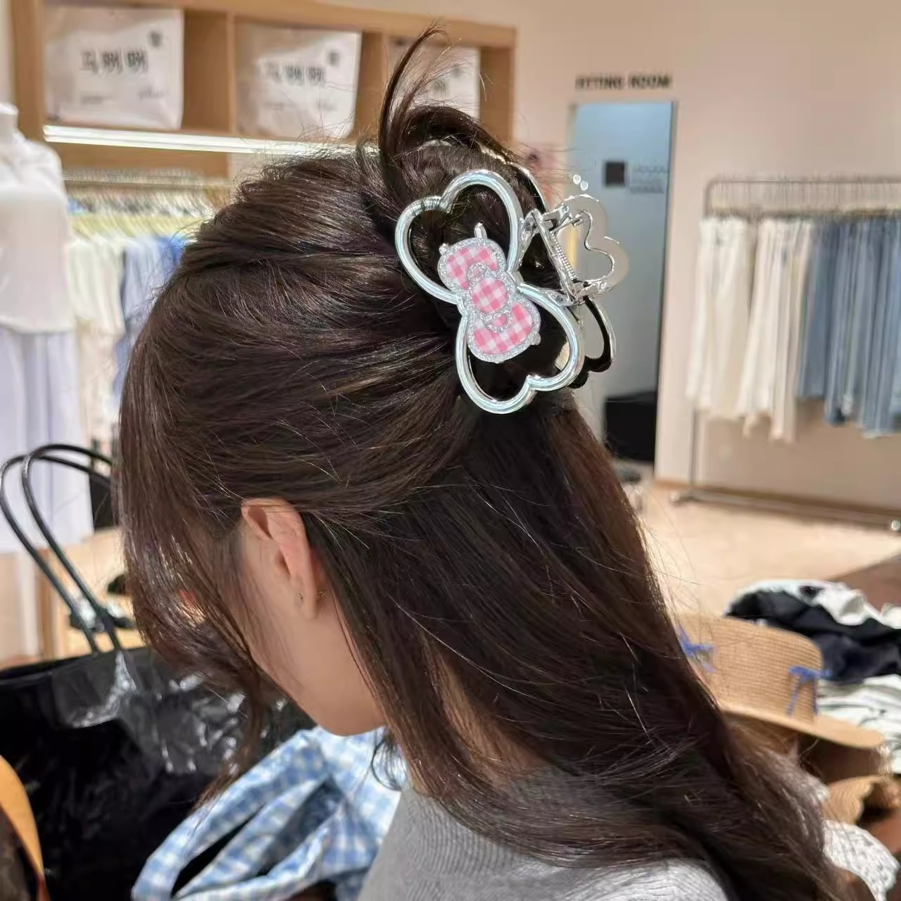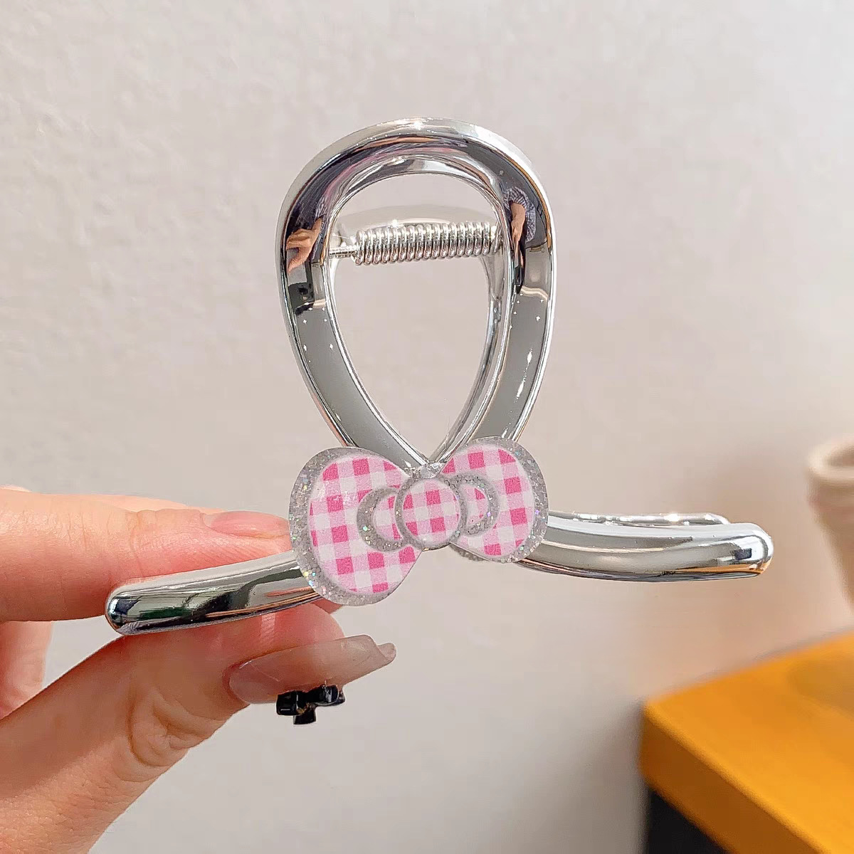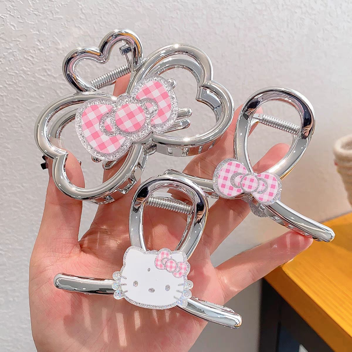 4# cute cat barrettes -- pink bow