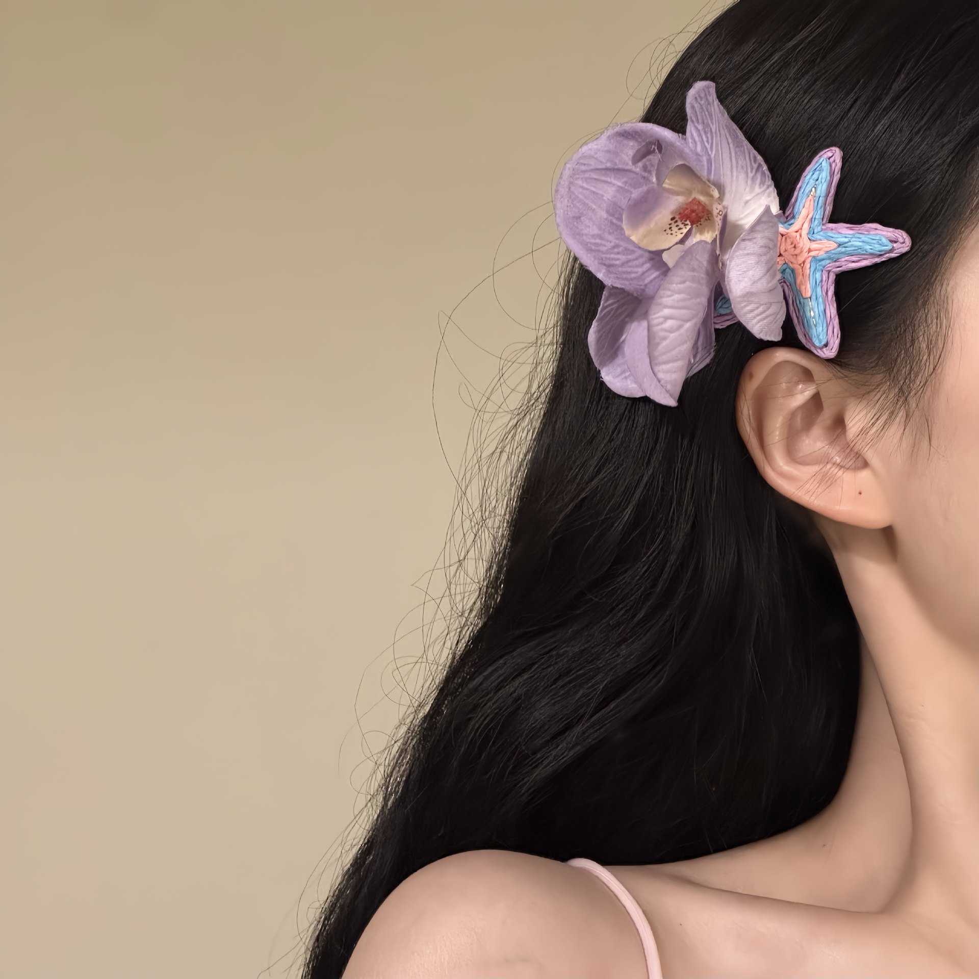 5# flower barrettes -- purple flower starfish barrettes