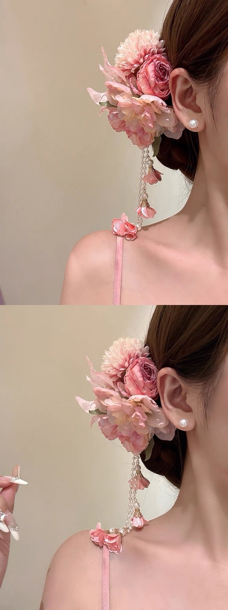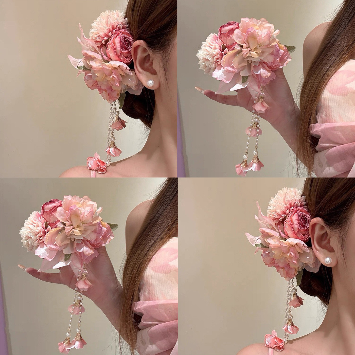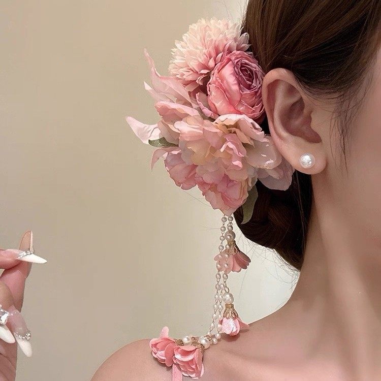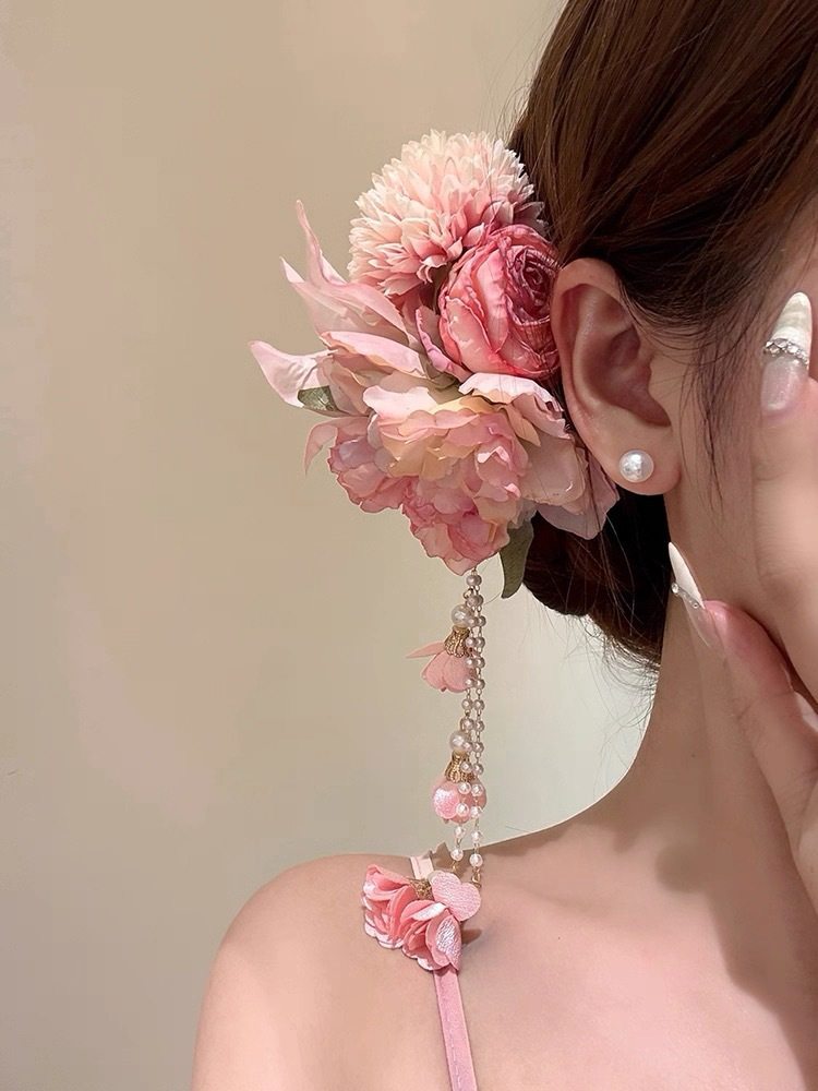 1# pink flower tassel hairpin