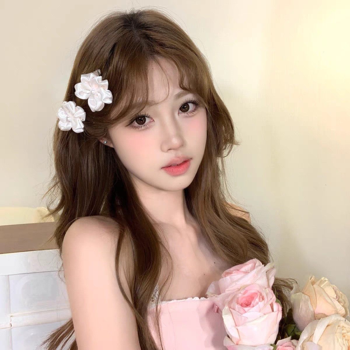 11# pure desire pink flower barrettes
