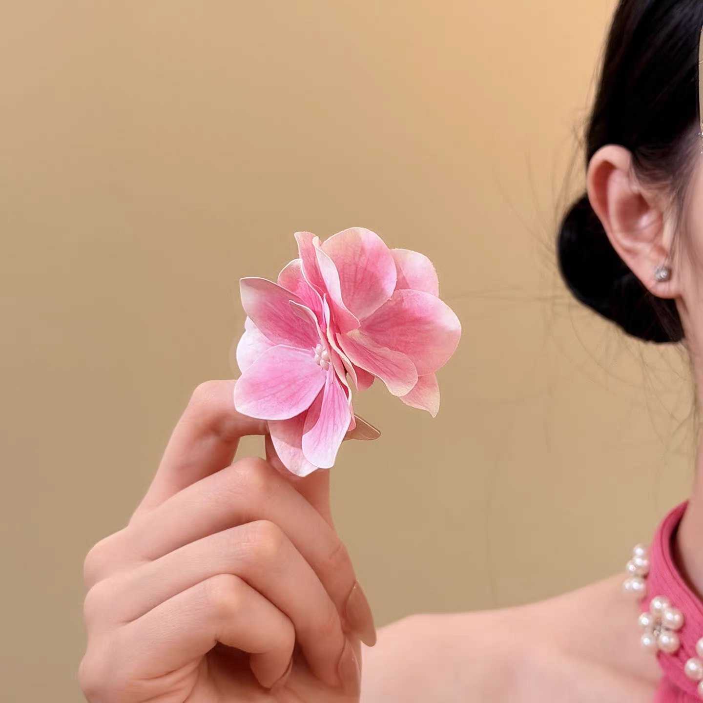 7# pink hydrangea barrettes