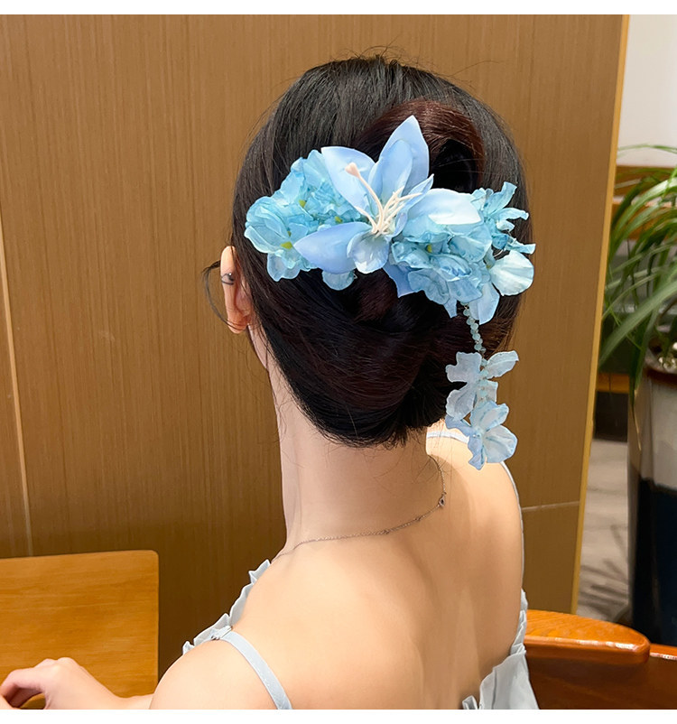 1# super fairy flowers tassel hairpin-blue