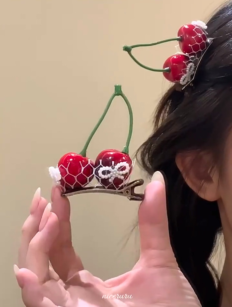 2# mesh fruit barrettes -- one cherry