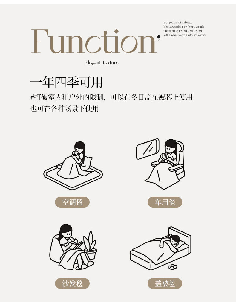 | 150*200cm [dual-use bed cover & blanket] anti-static, doesn’t shed fuzz easily | CN¥ 51.0 |