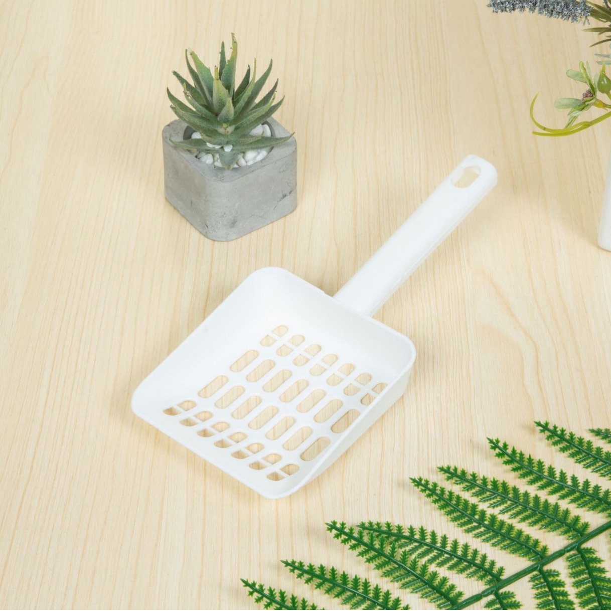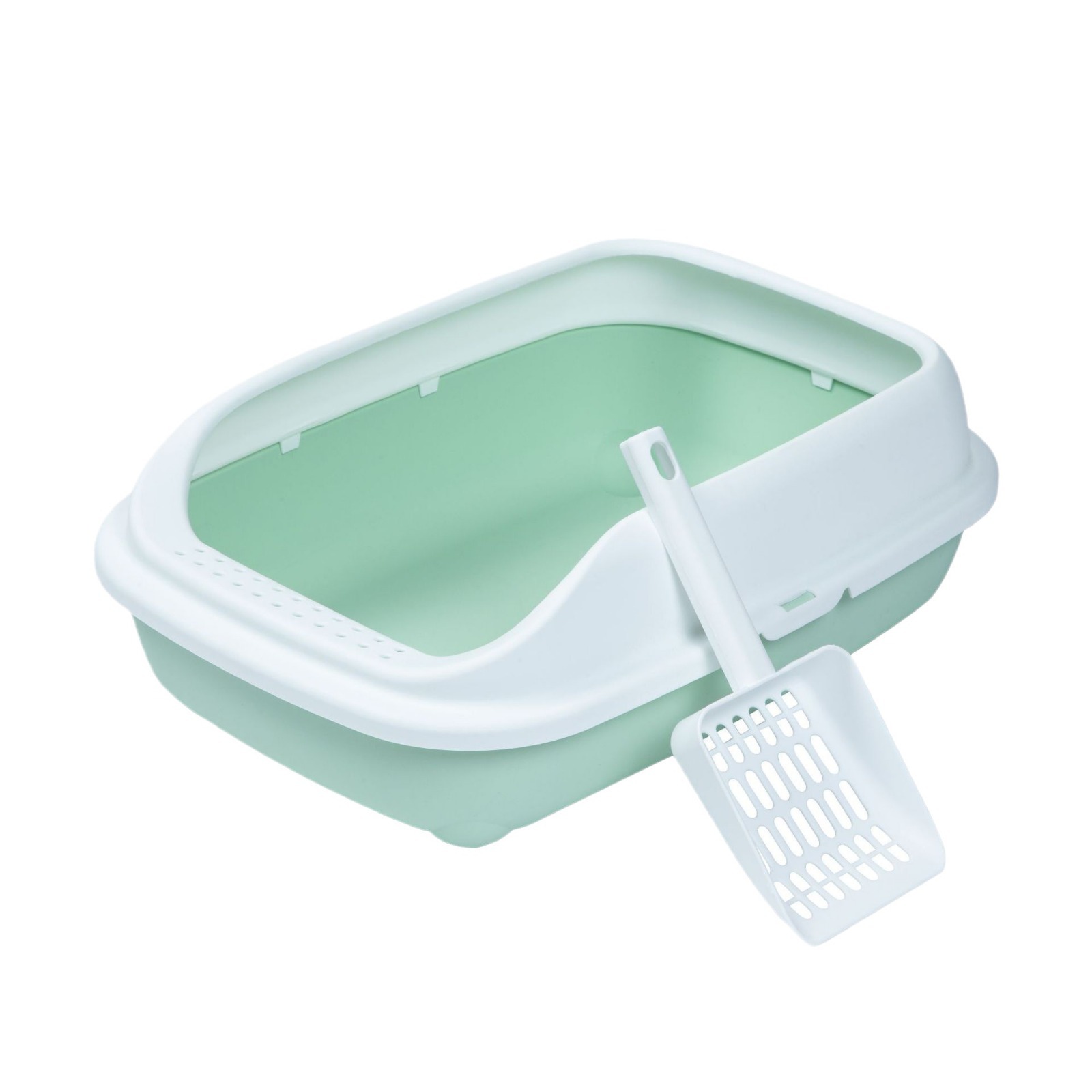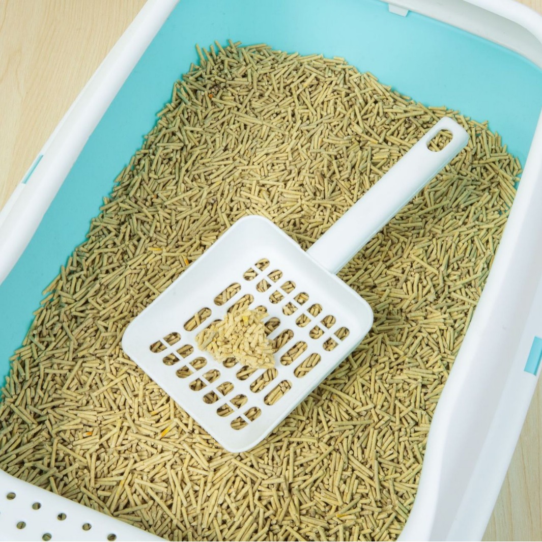 Each cat litter box is accompanied by a matching cat litter shovel.