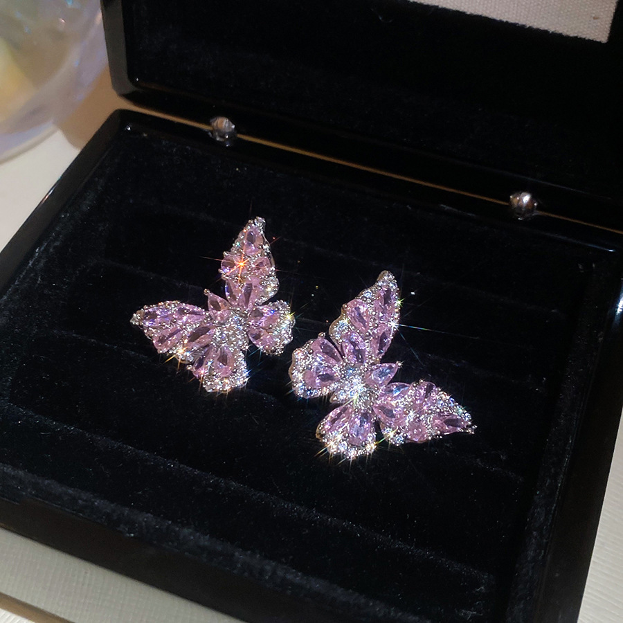 27# silver needle-pink zircon butterfly