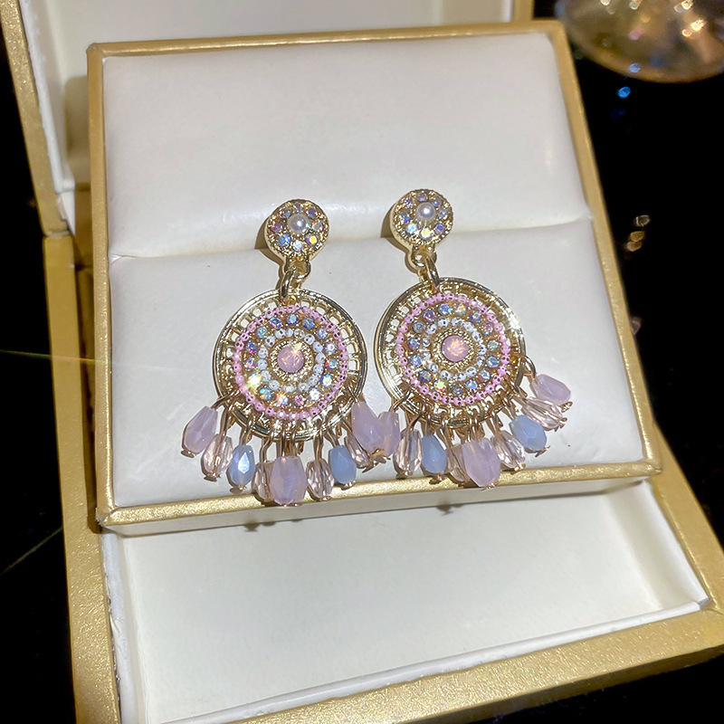 9# silver needle-golden-pink zircon tassel