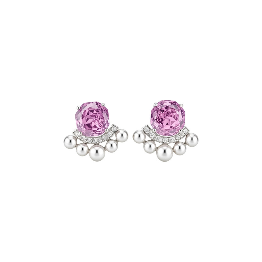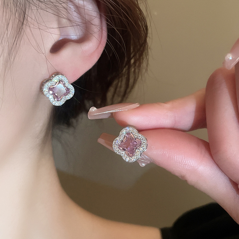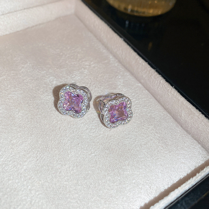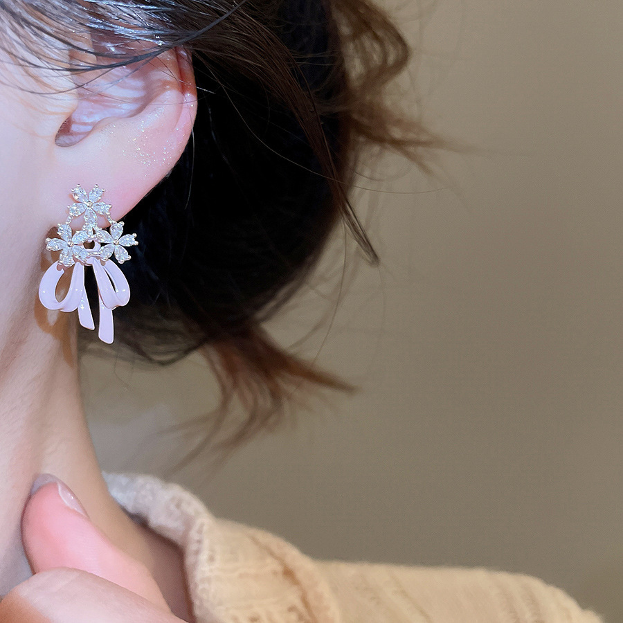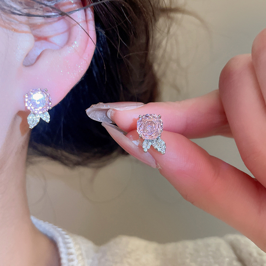 38# silver needle-pink zircon flower tassel