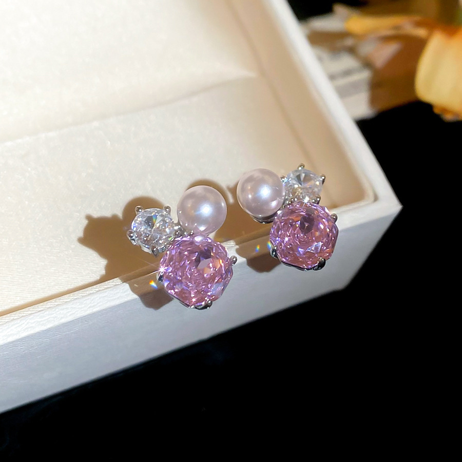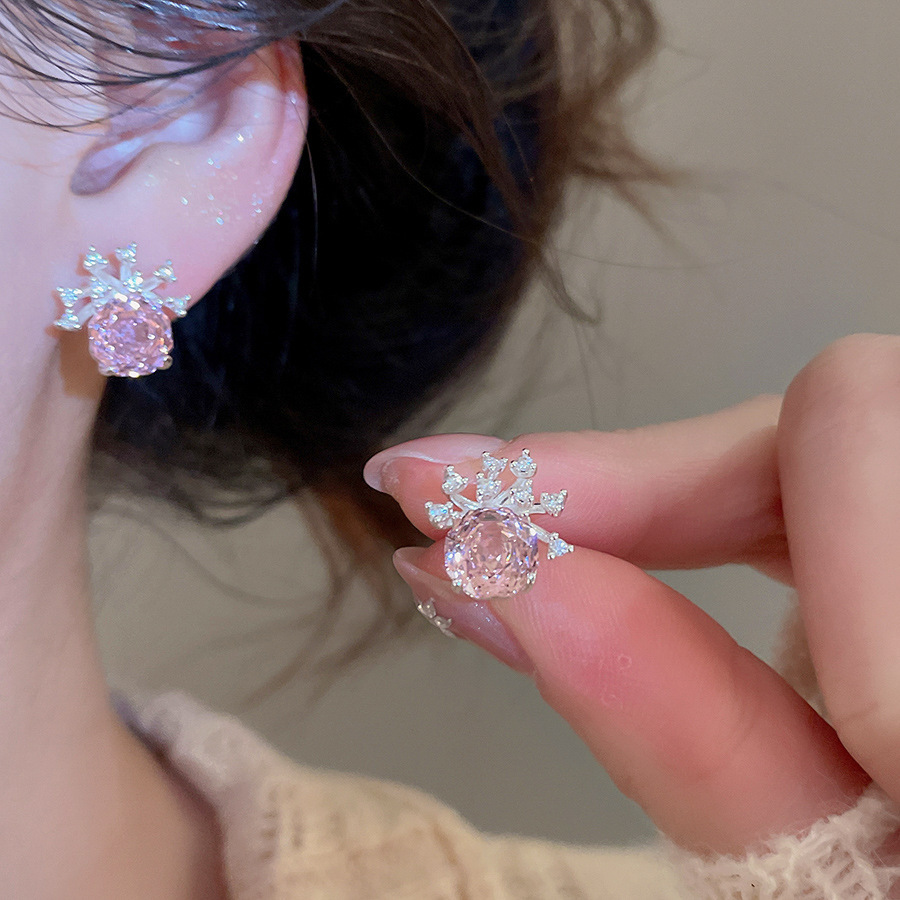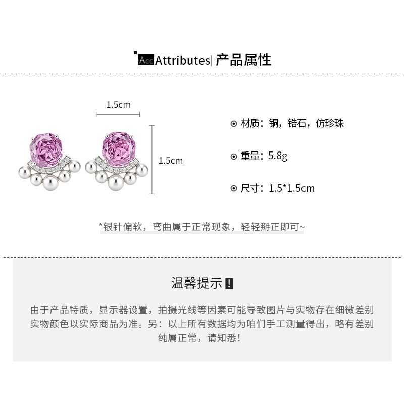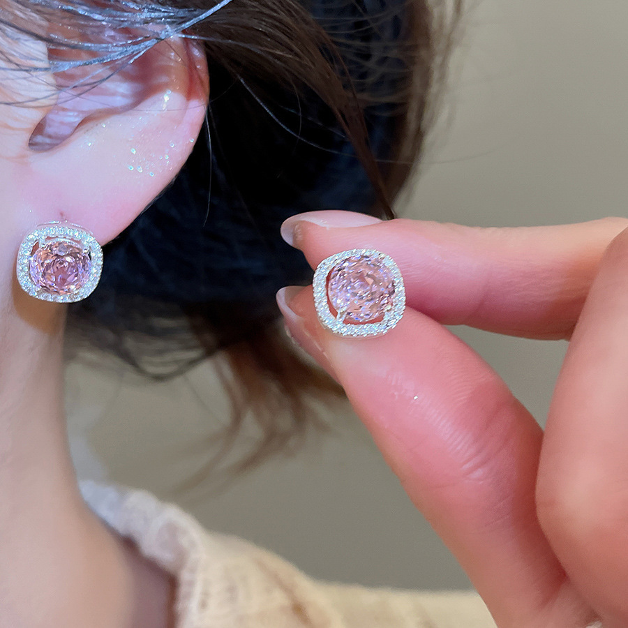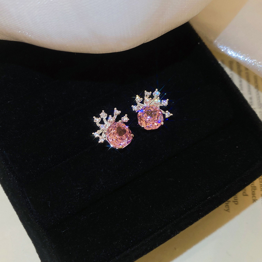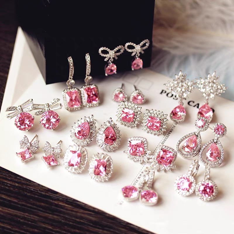 8# silver needle-pink zircon water drops tassel