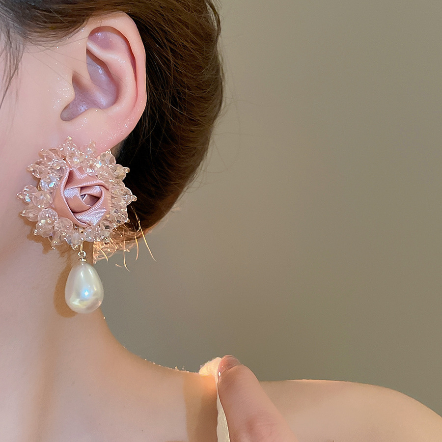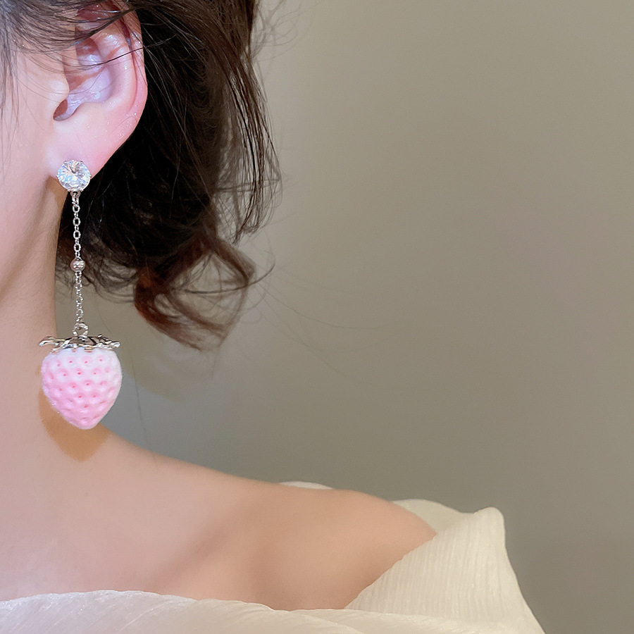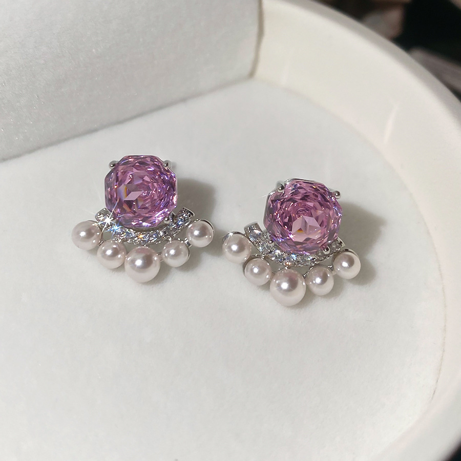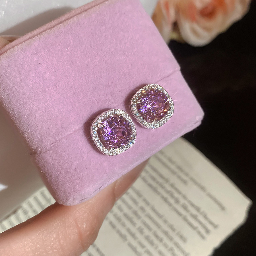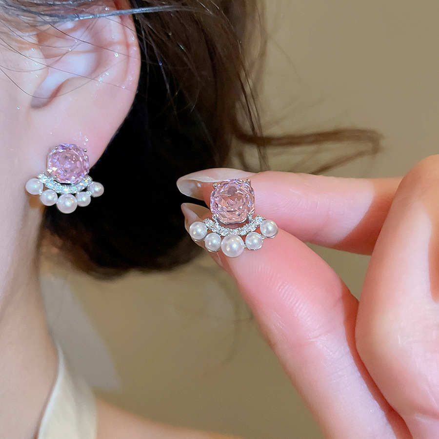 8# silver needle-pink zircon water drops tassel