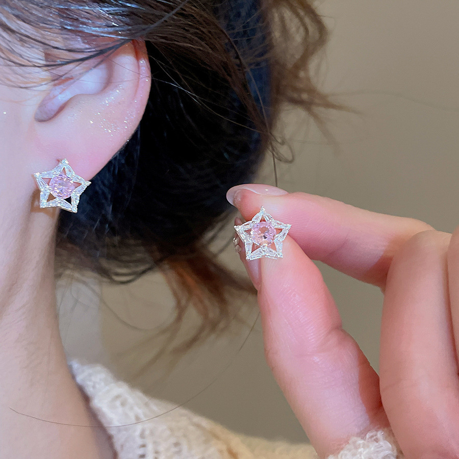 35# silver needle-silver-pink zircon tassel