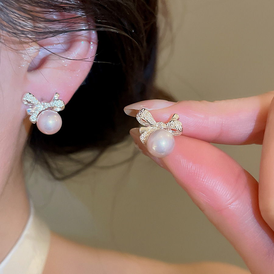 30# silver needle-pink-silver diamond-encrusted bow
