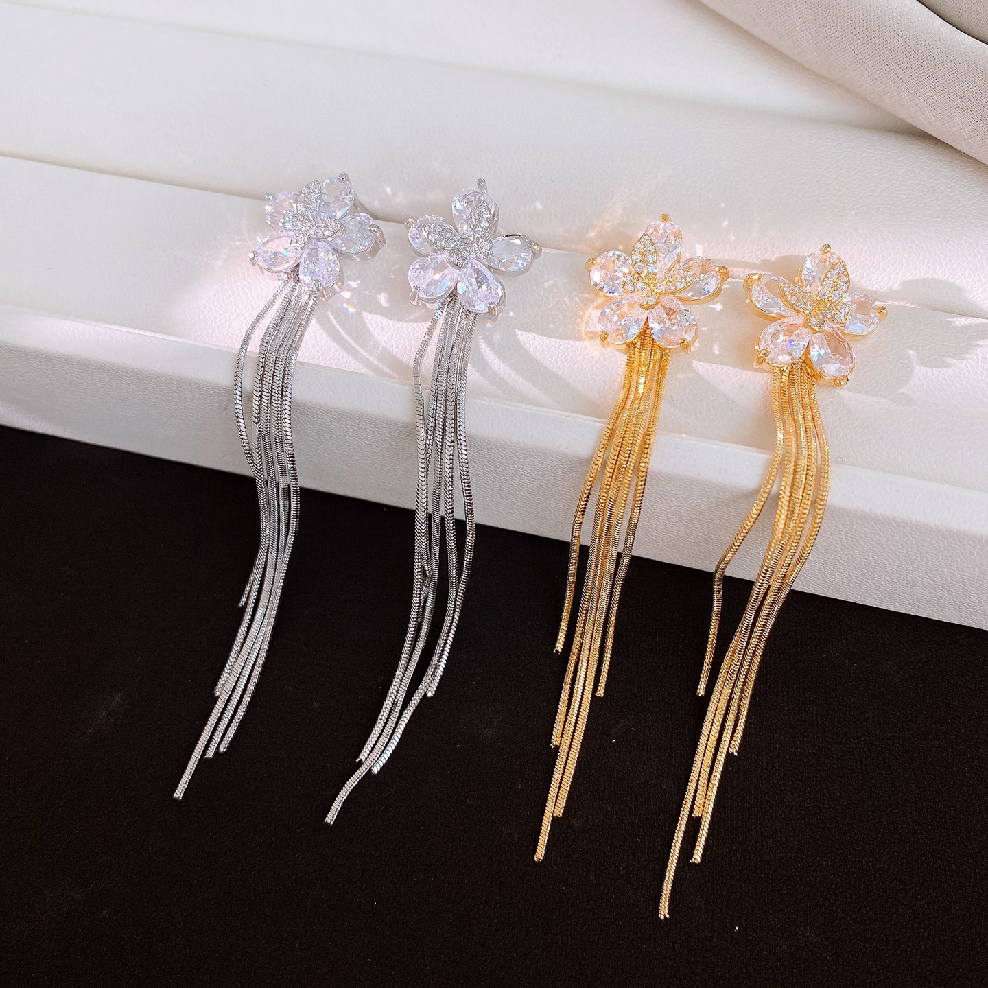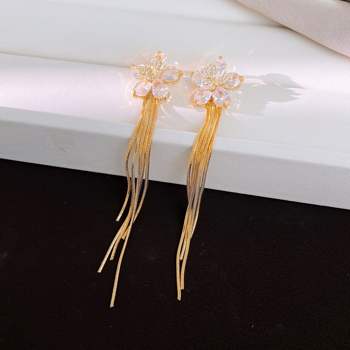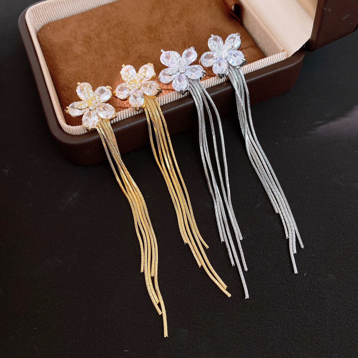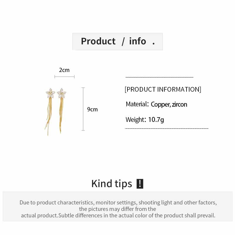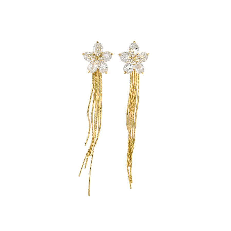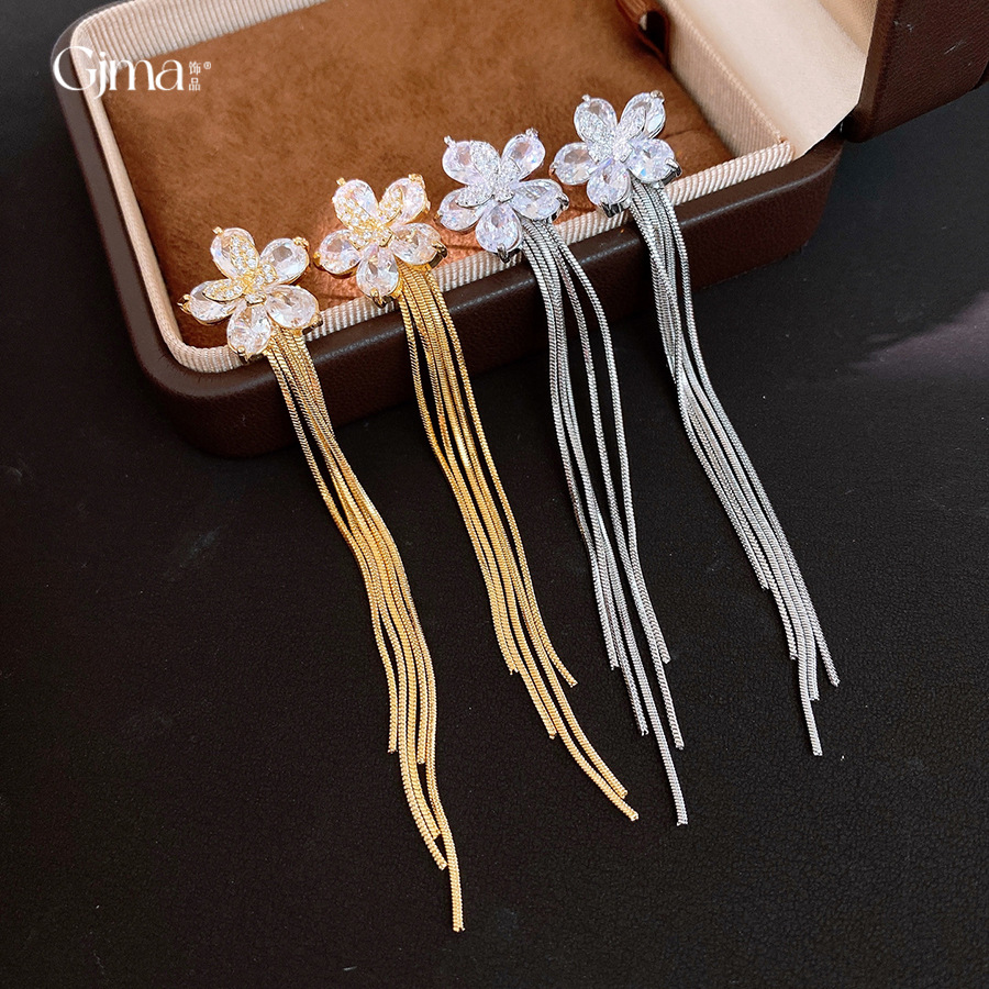 18k gold plated silver needle zircon flower tassel earrings light luxury high-grade earrings minority fashion earrings for women