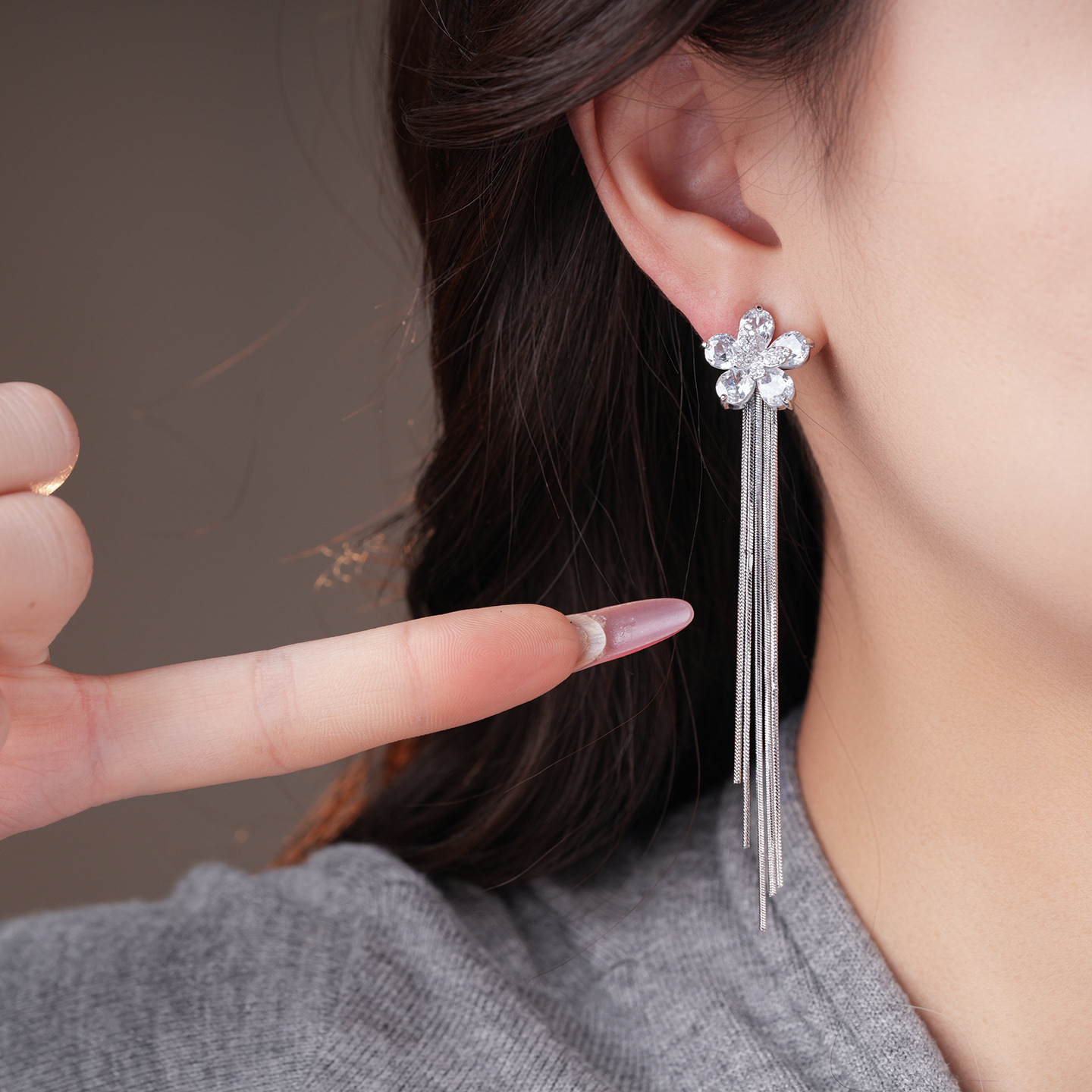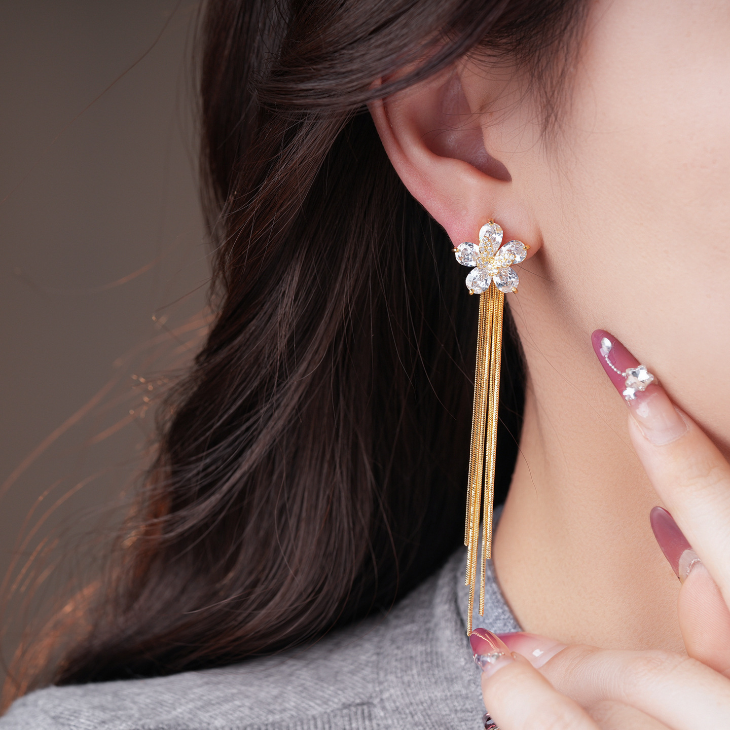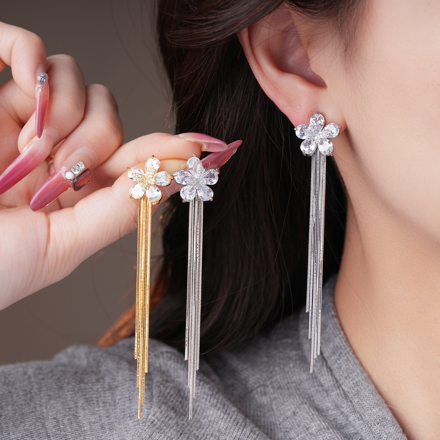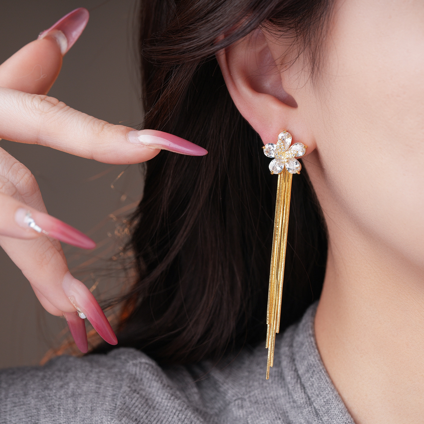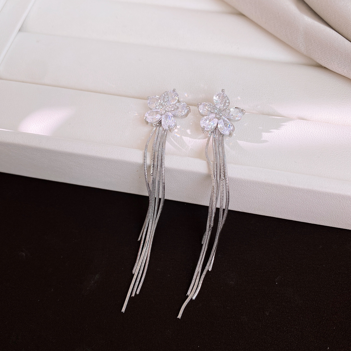 18k gold plated silver needle zircon flower tassel earrings light luxury high-grade earrings minority fashion earrings for women