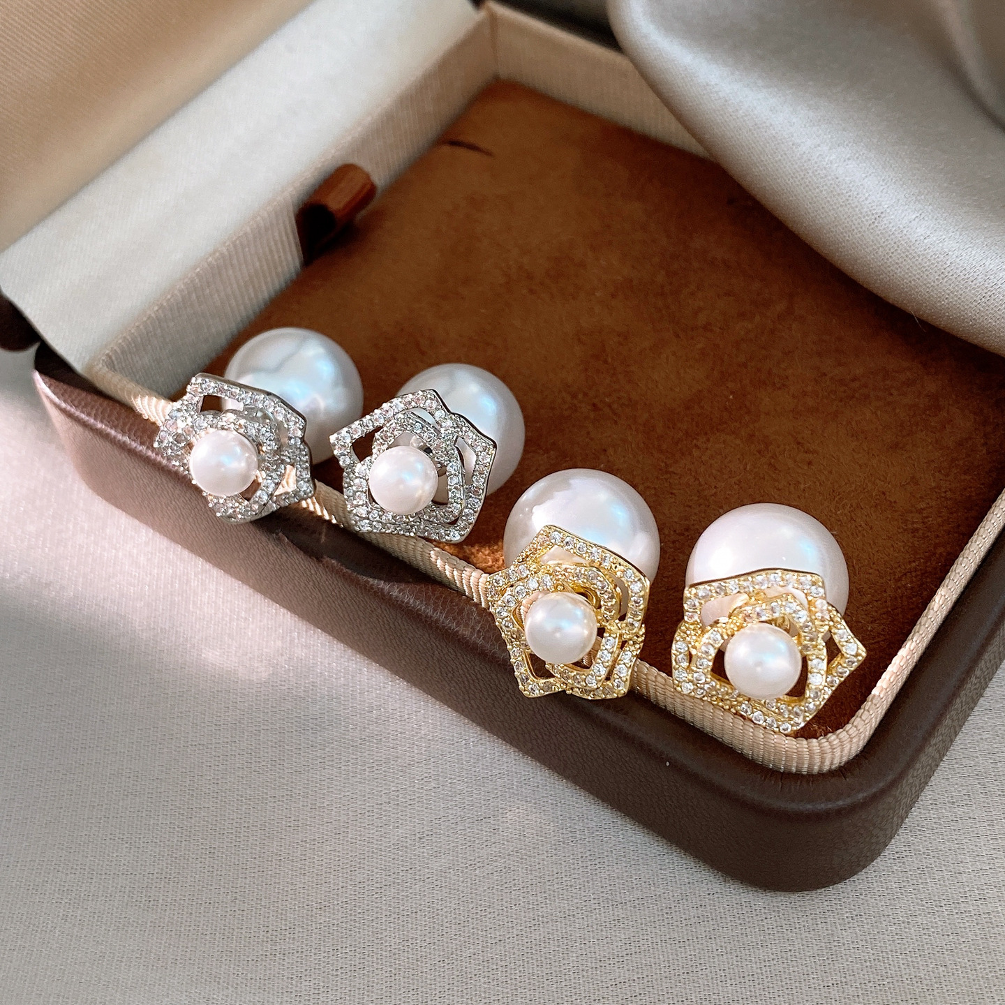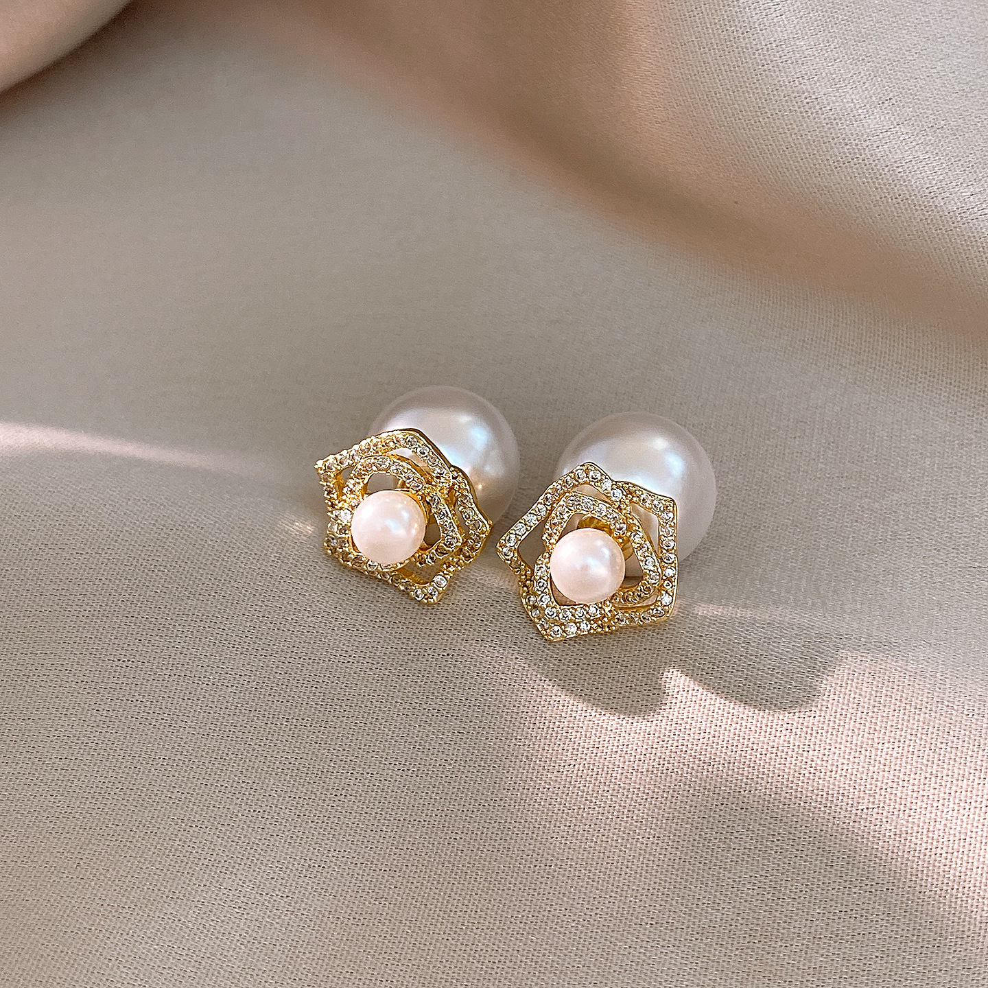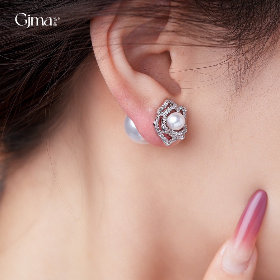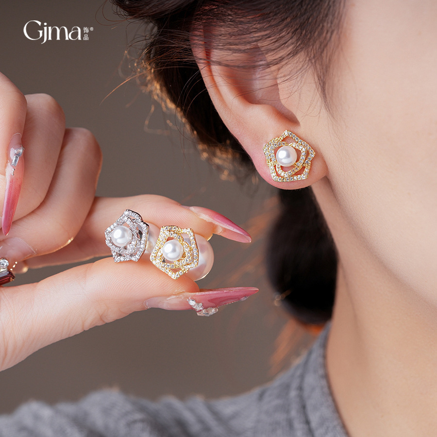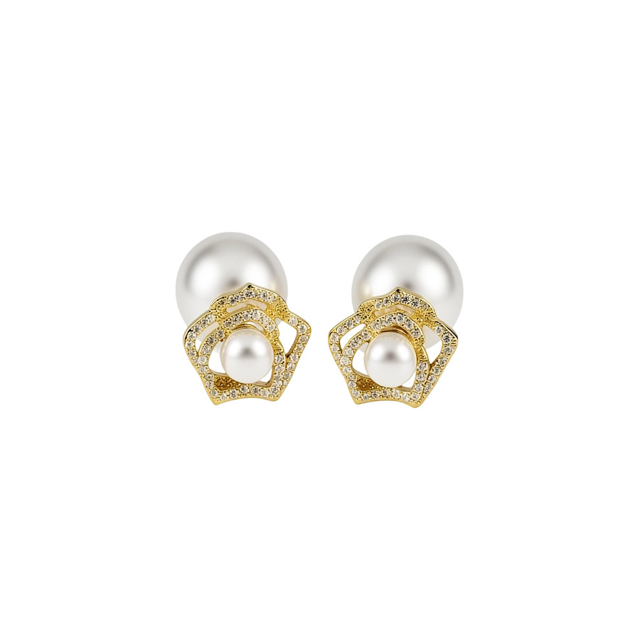 14k gold plated silver needle zircon flower pearl earrings light luxury high-grade ear studs retro exquisite earrings for women