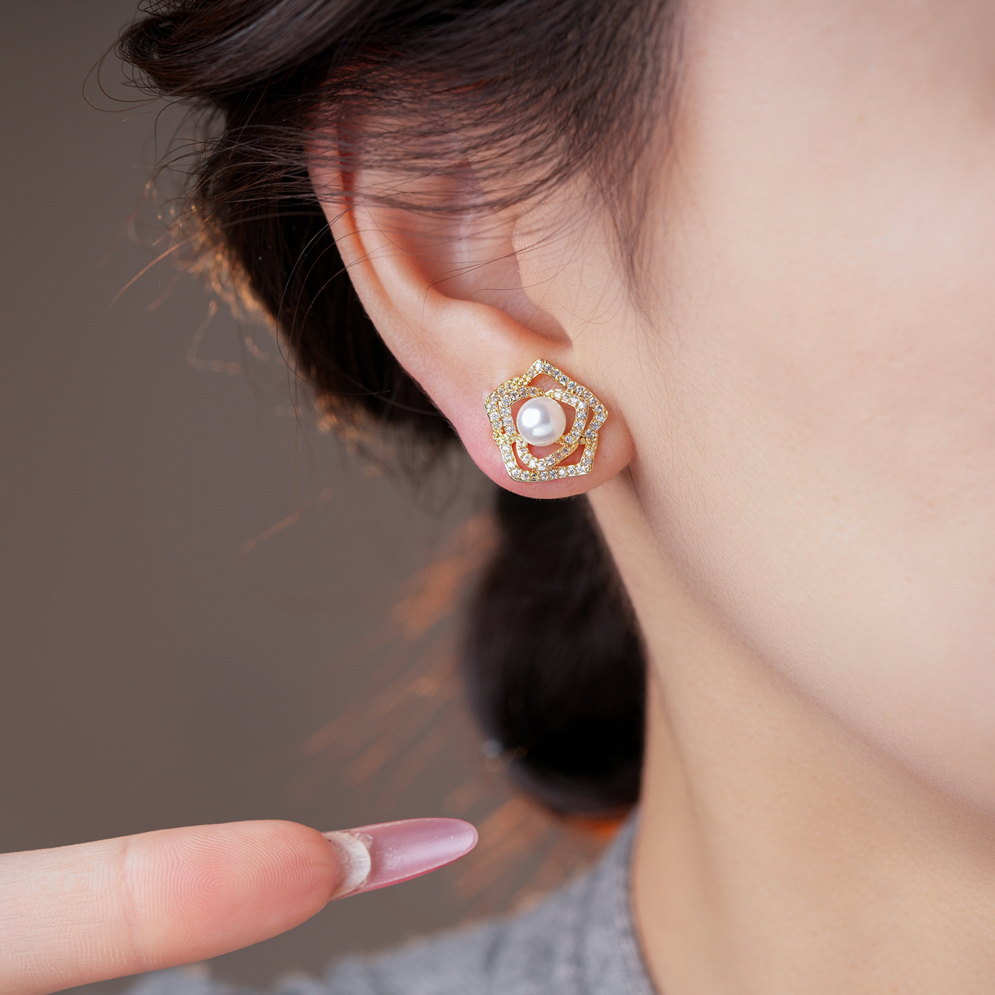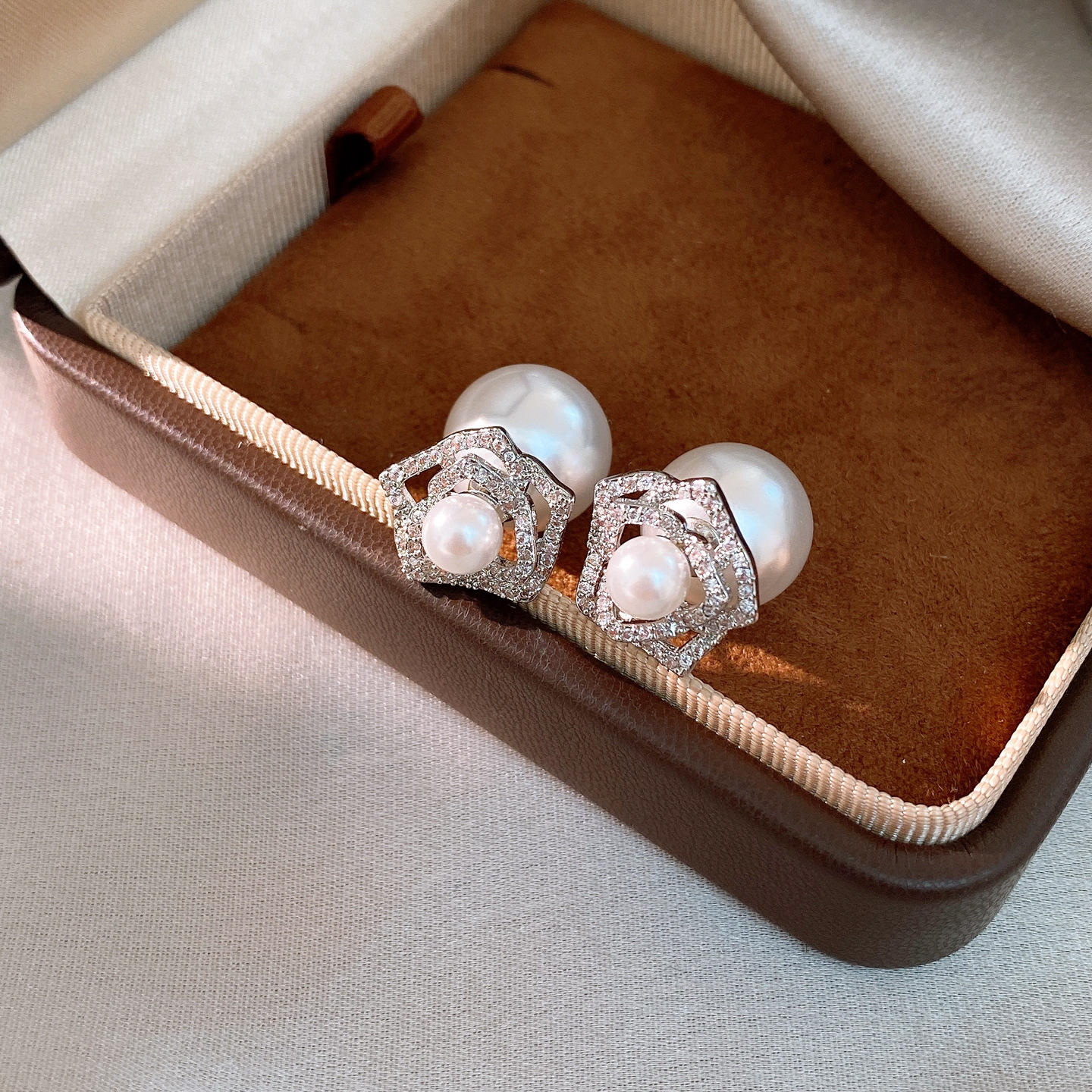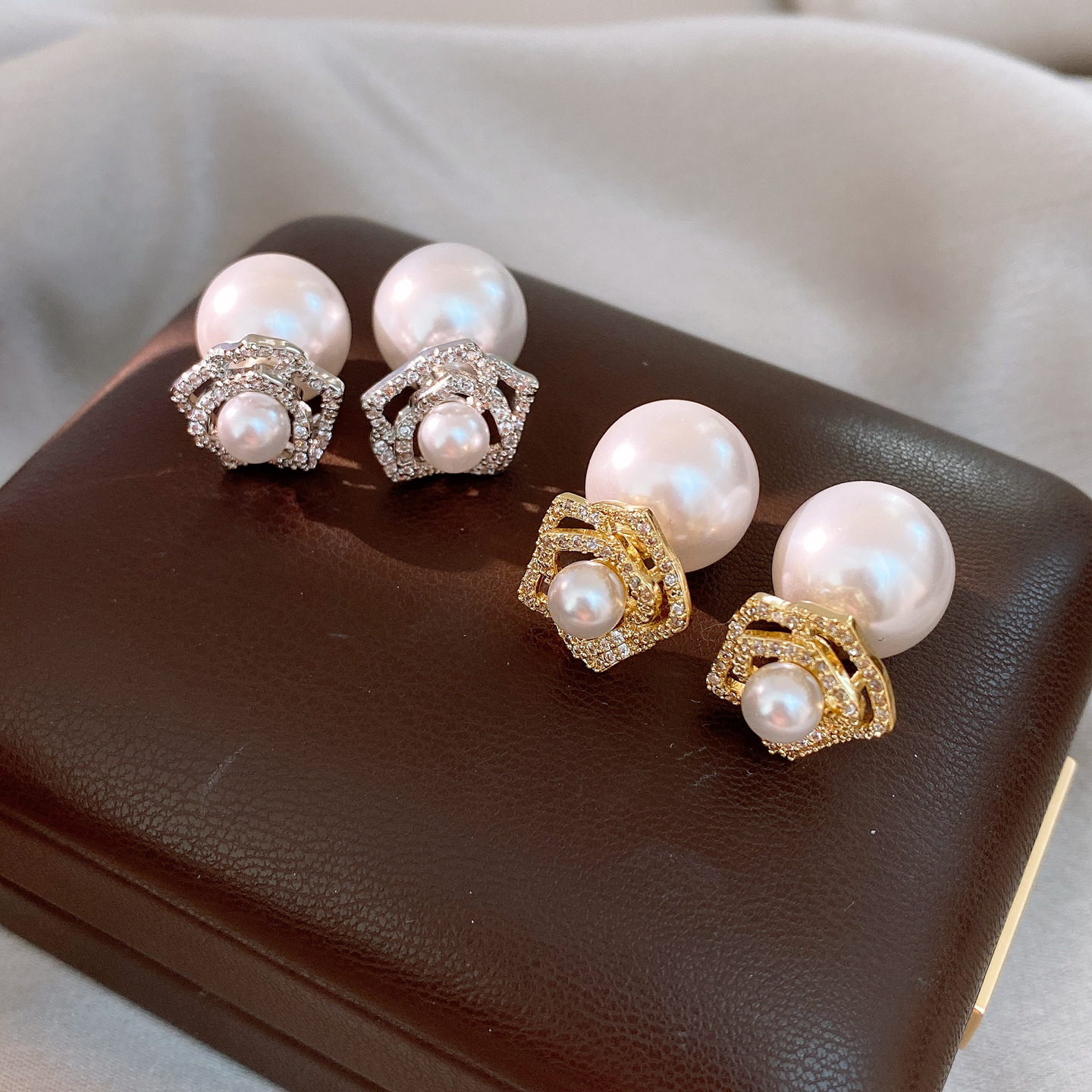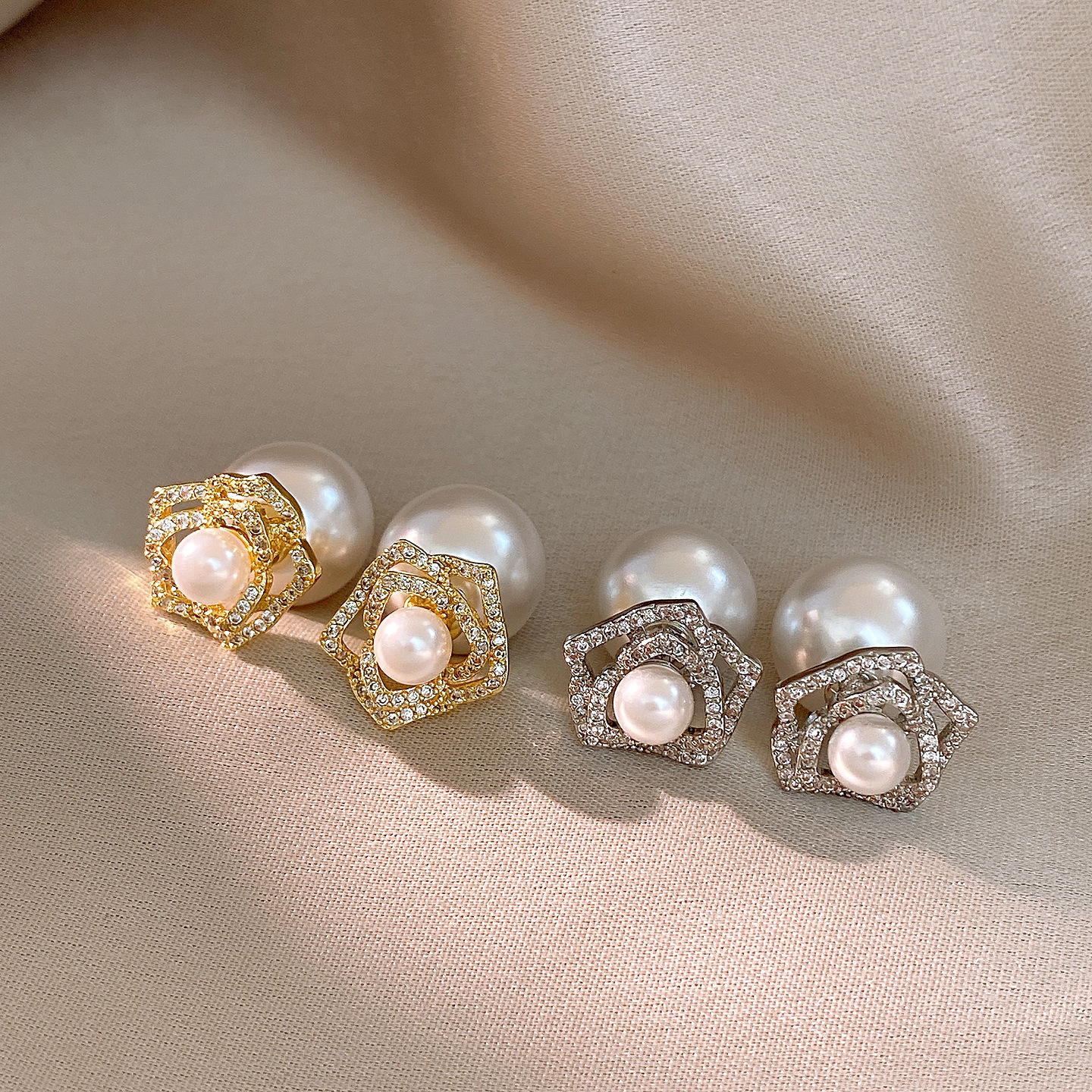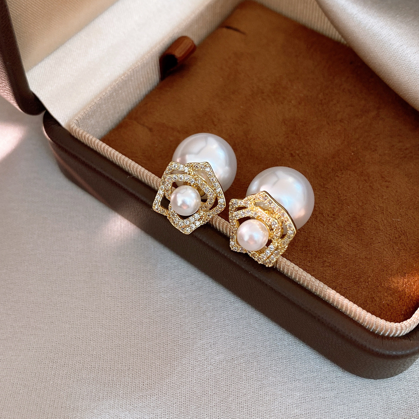 14k gold plated silver needle zircon flower pearl earrings light luxury high-grade ear studs retro exquisite earrings for women
