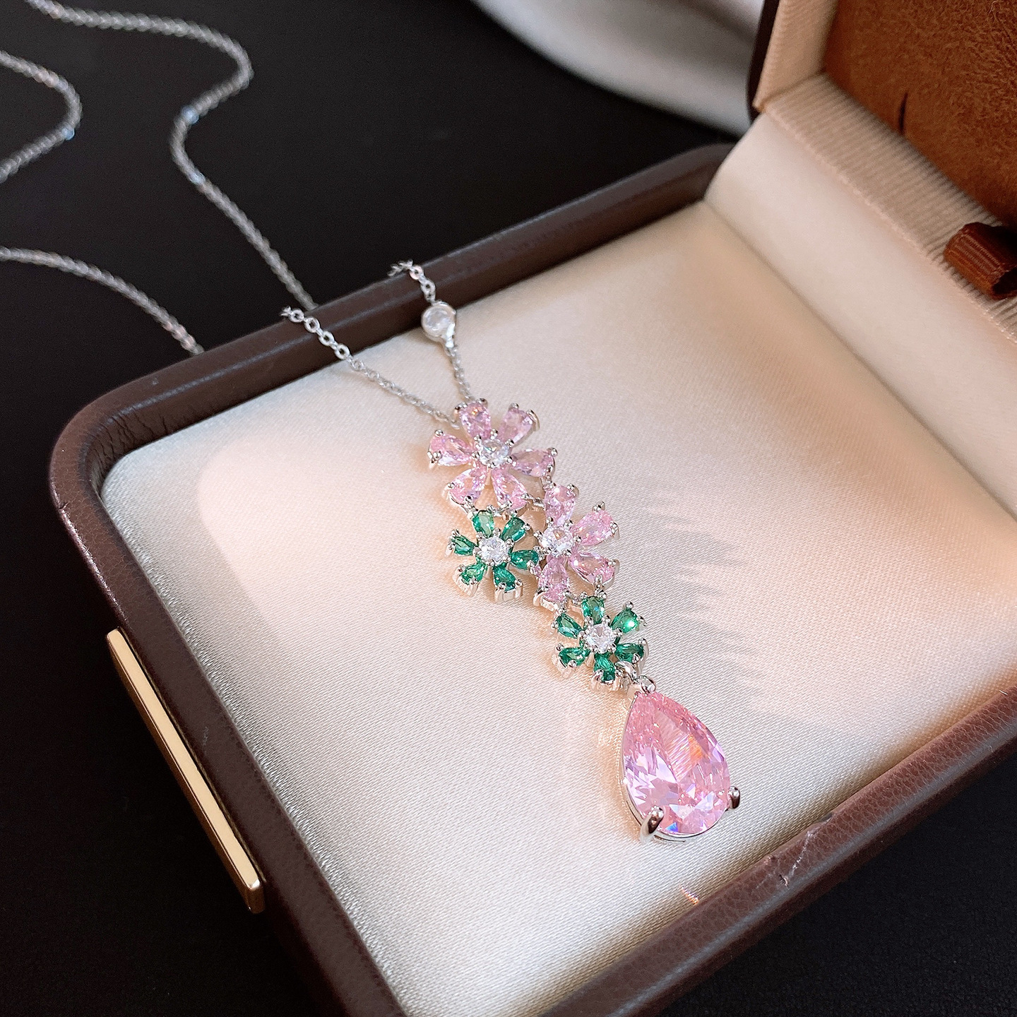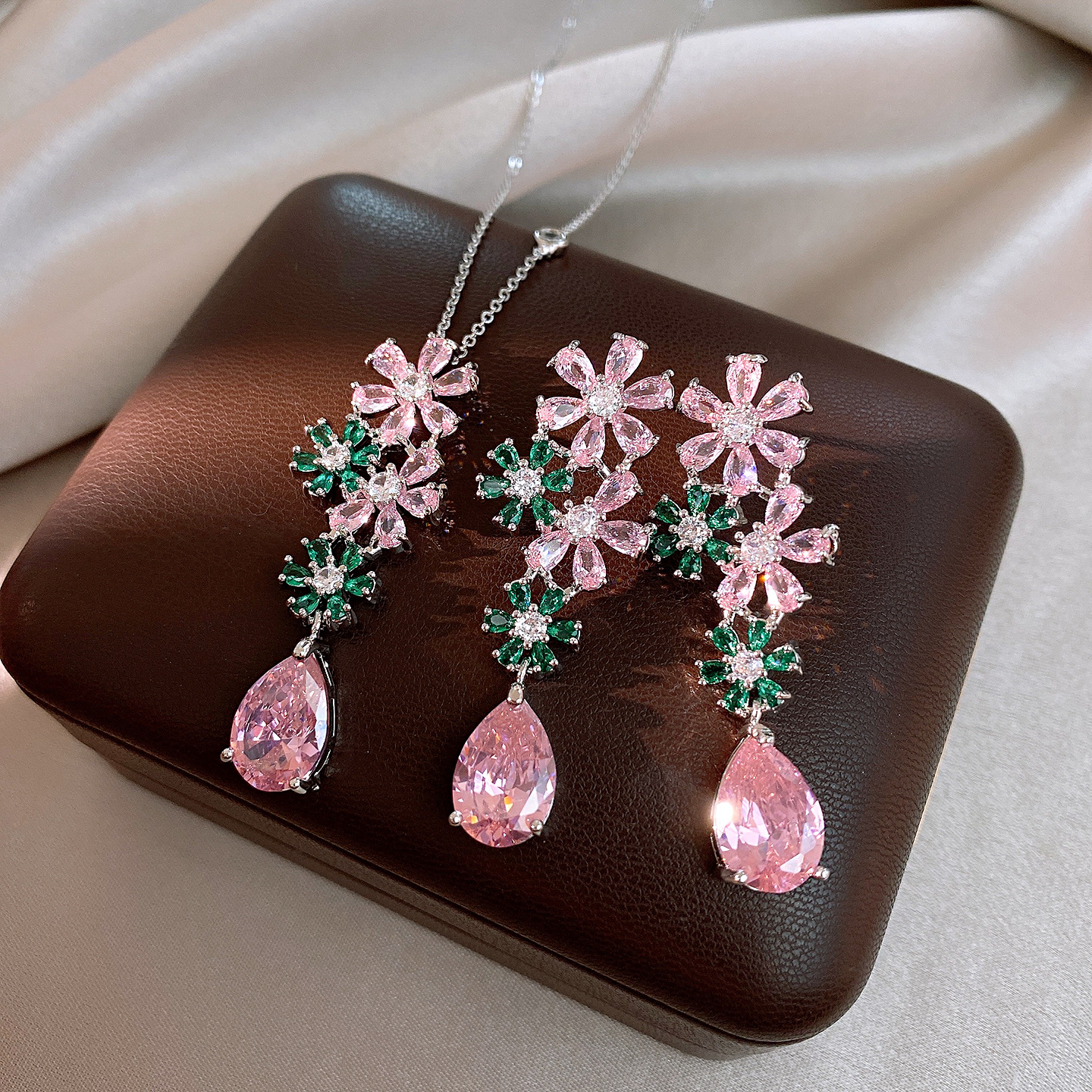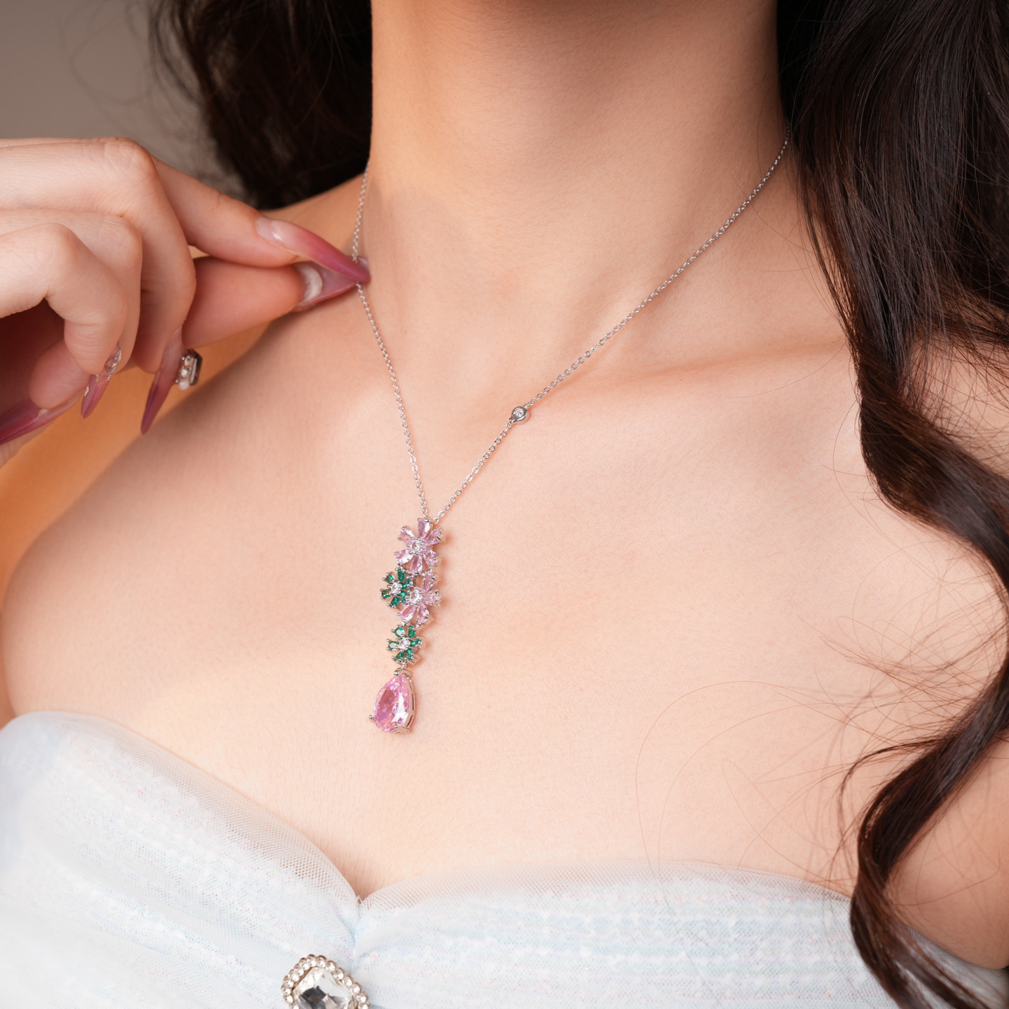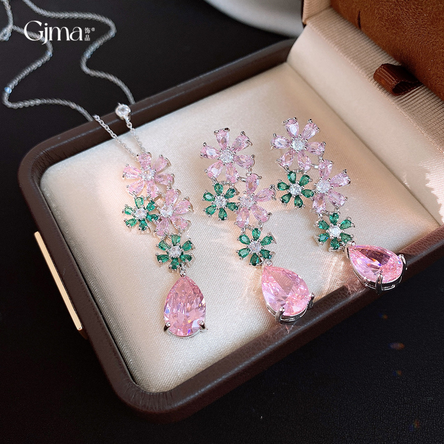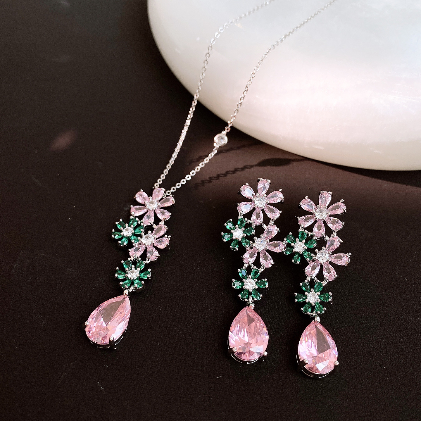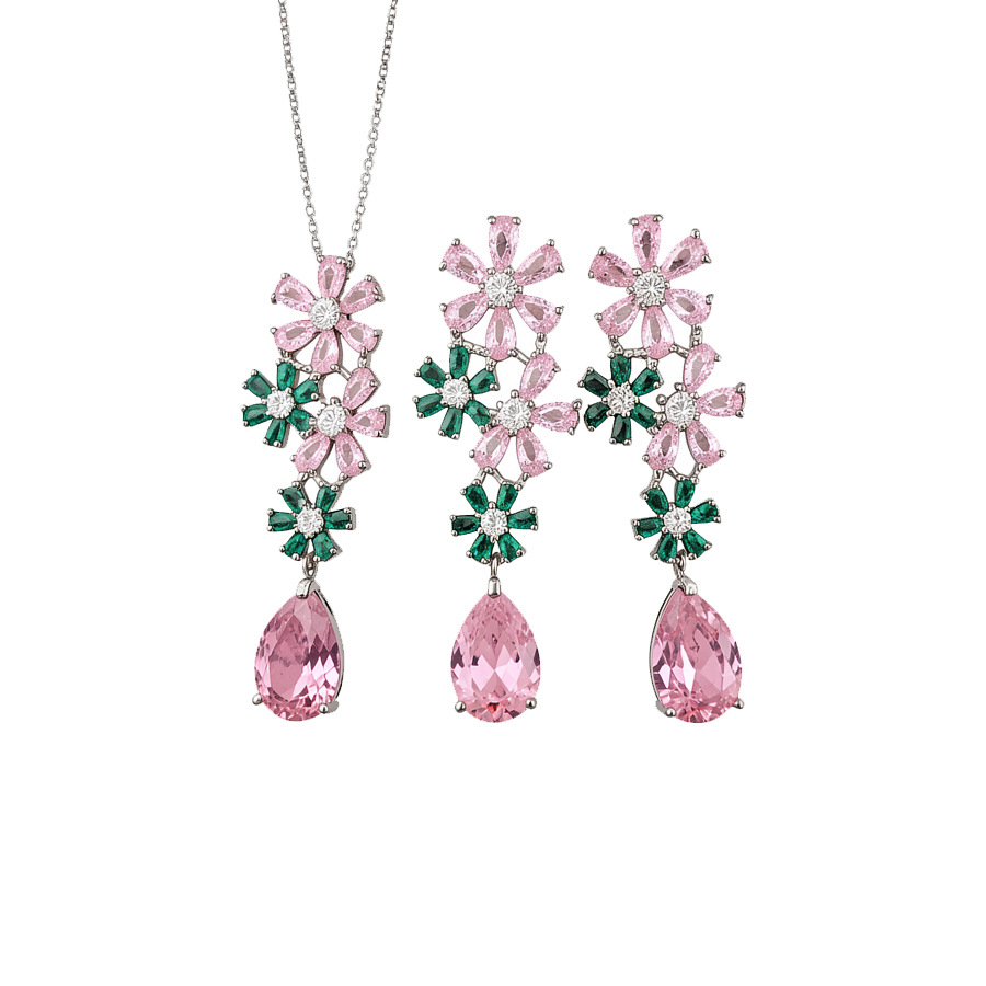 necklace – silver – pink – green (set of two)