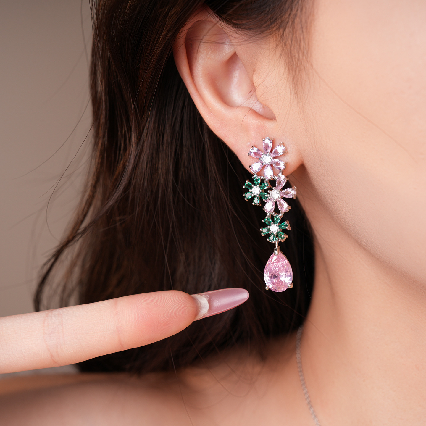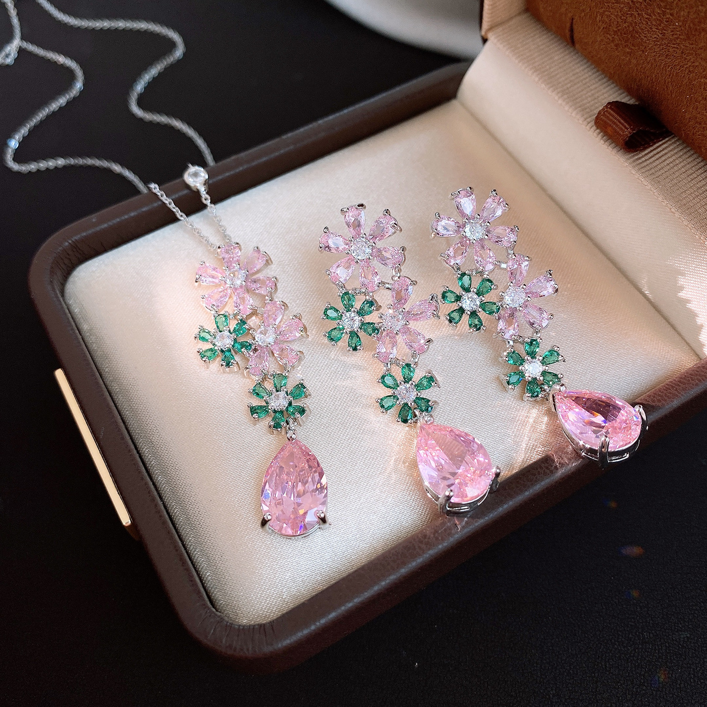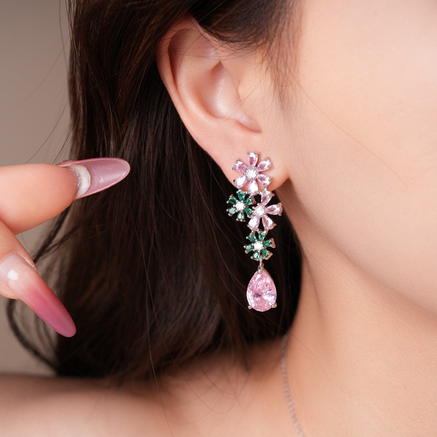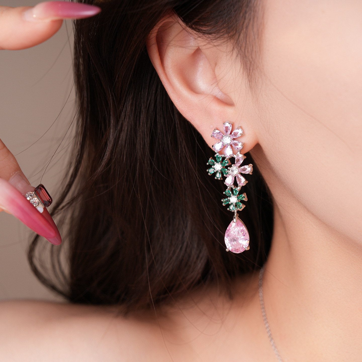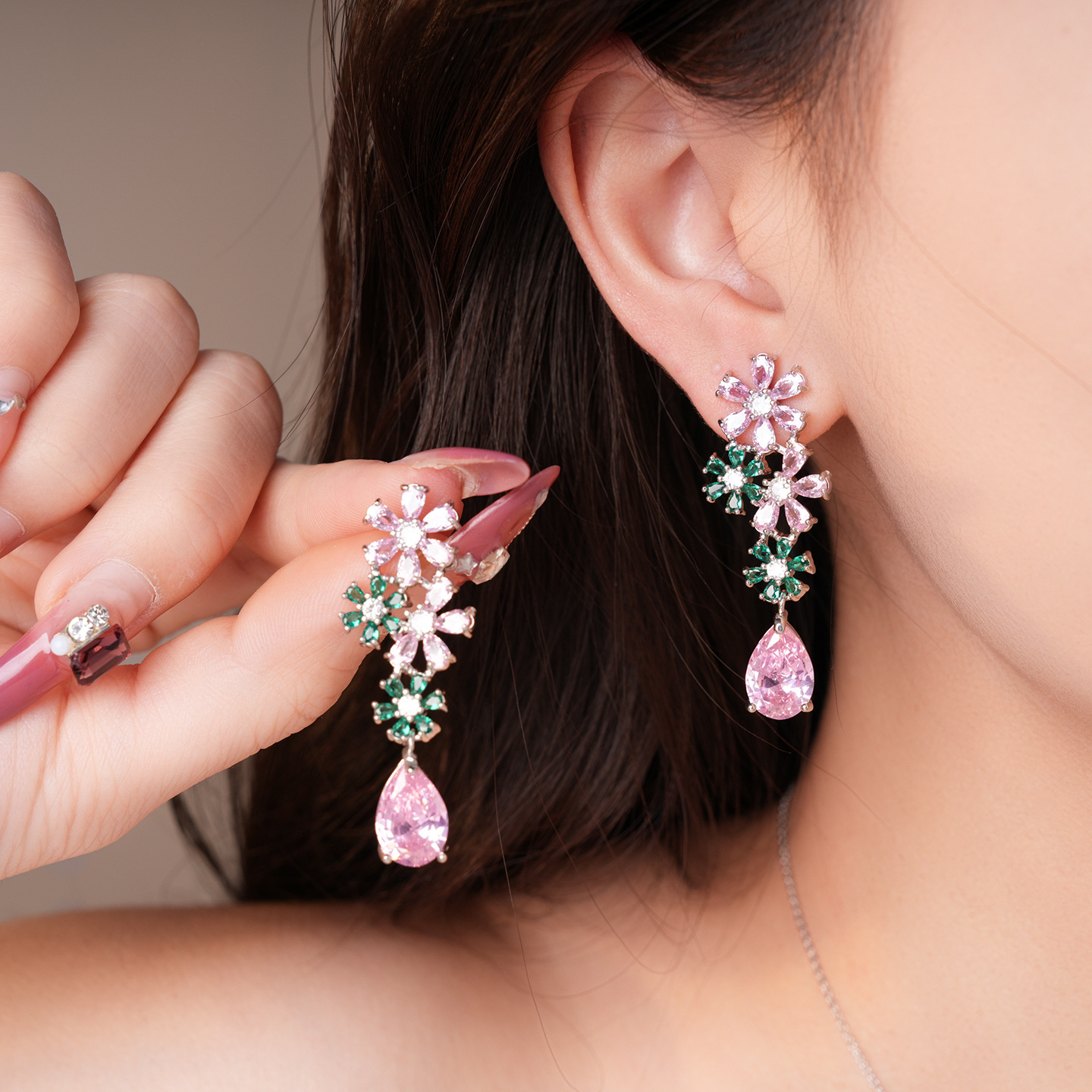 necklace – silver – pink – green (set of two)