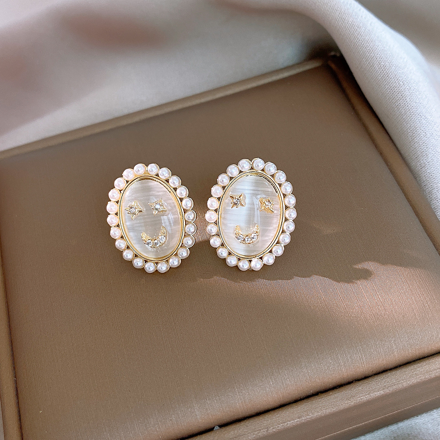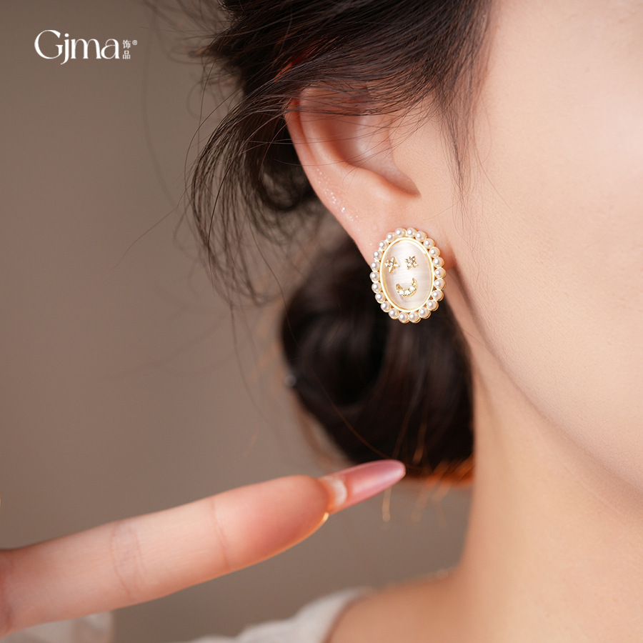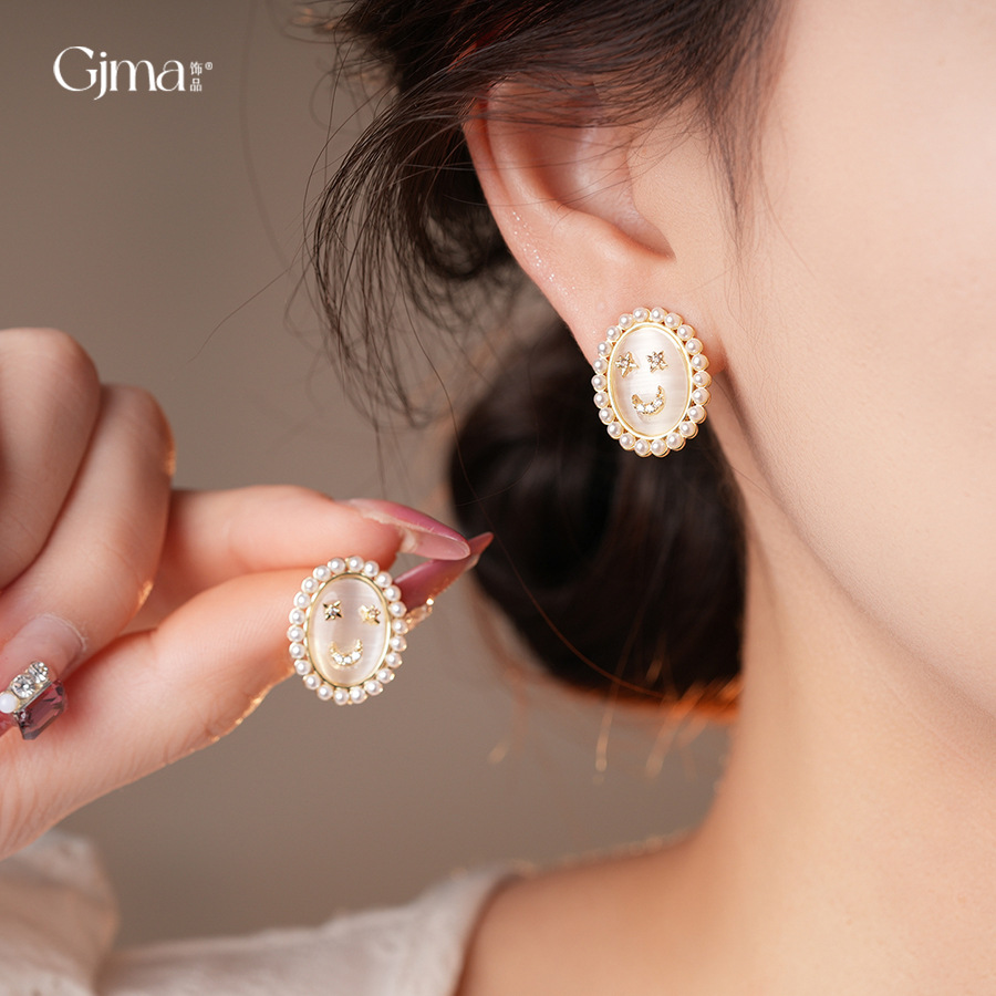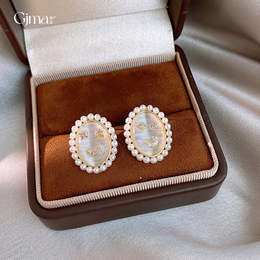 14k real gold plated silver needle zircon opal pearl earrings light luxury high sense ear studs french vintage earrings