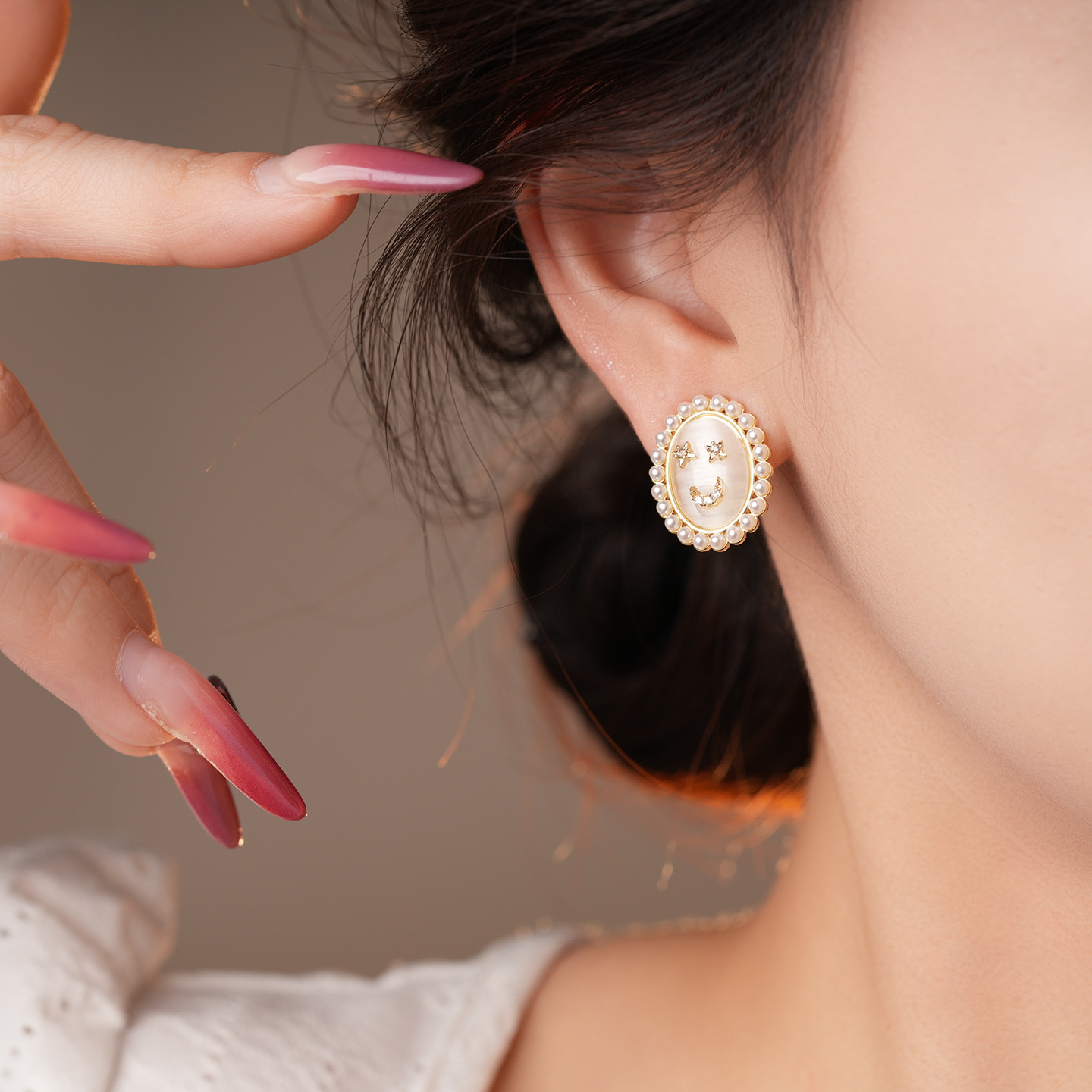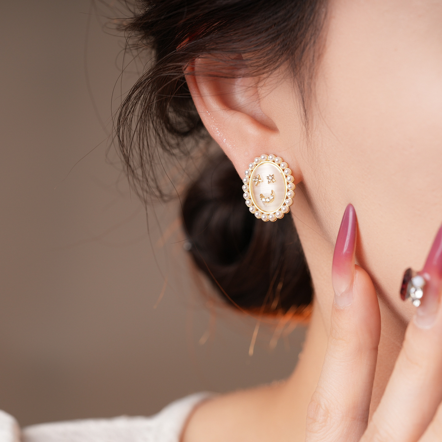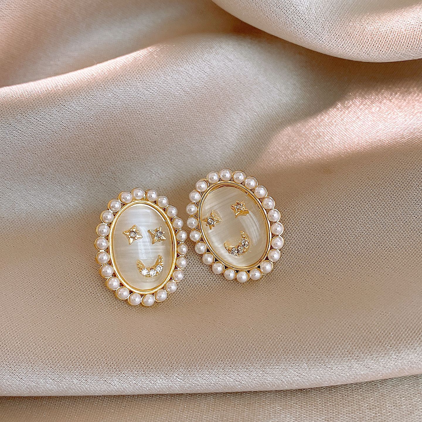 14k real gold plated silver needle zircon opal pearl earrings light luxury high sense ear studs french vintage earrings