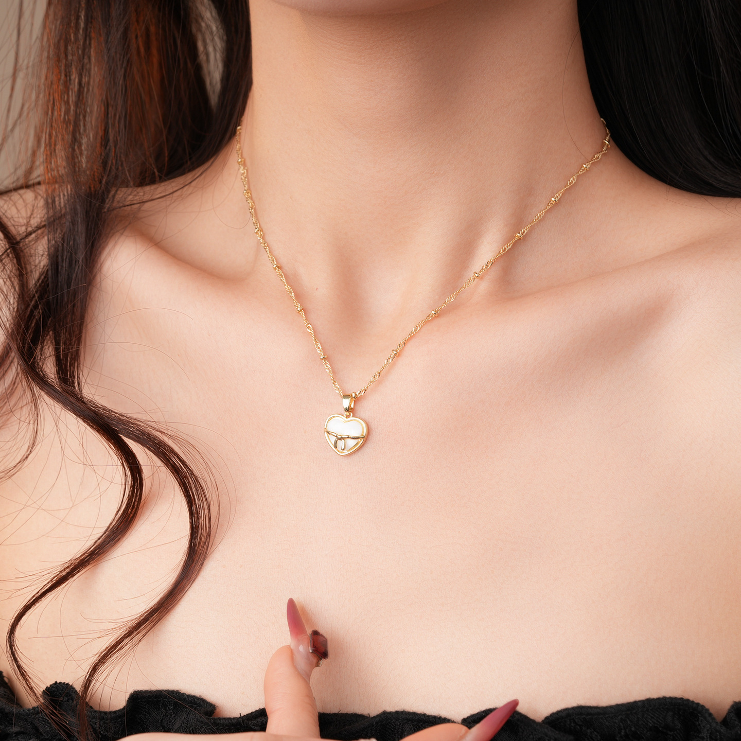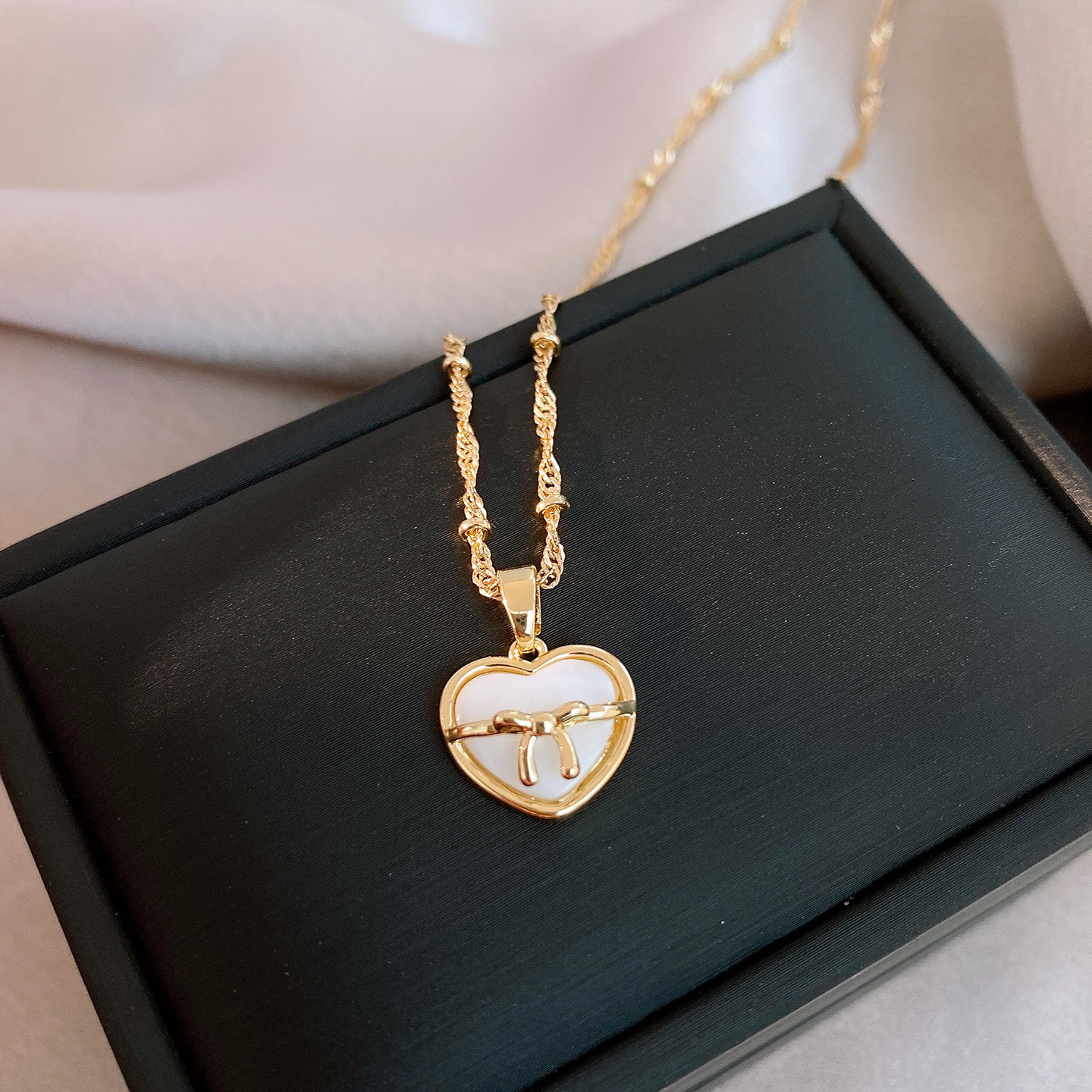 necklace-golden-love heart (real gold plating)
