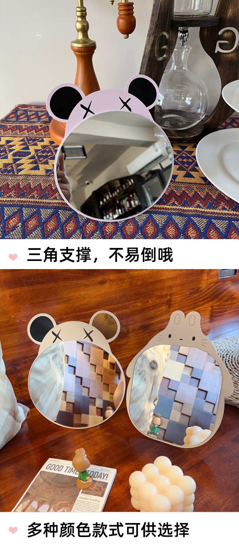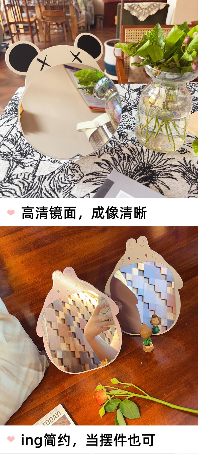 makeup mirror, desktop dressing mirror, princess mirror, foldable and portable, internet celebrity minimalist, large size, popular online, minimalist, portable, for dormitory desktop, for women