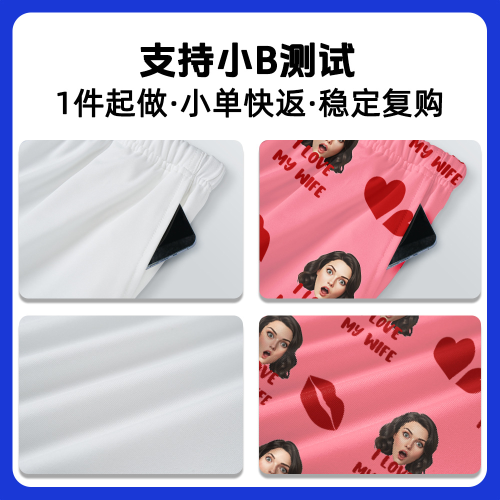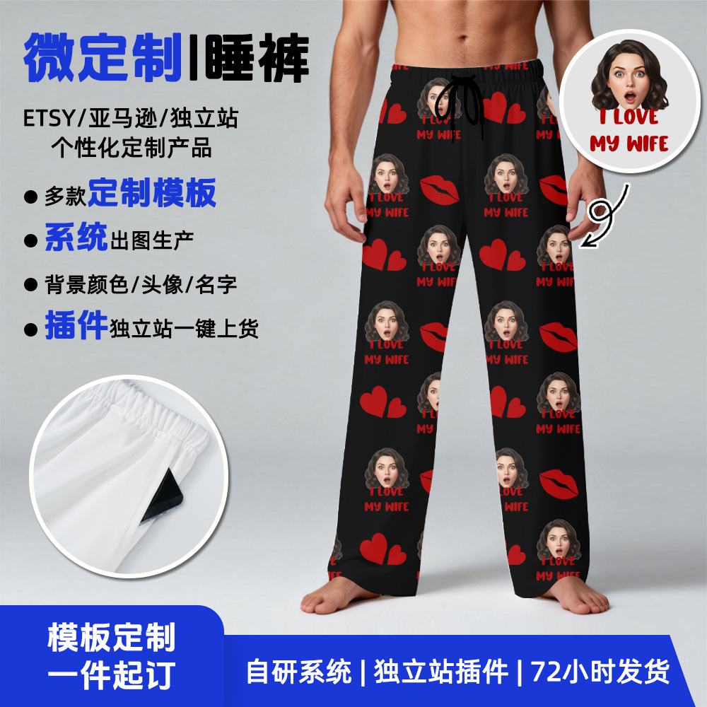 Support sleep pants template micro-customization, replace the avatar / name / background color, the self-developed system automatically generates production pictures, without manual repeated docking, 1-minute picture output, significantly reduce the custom communication cost, compatible with ETSY / independent station personalized orders.