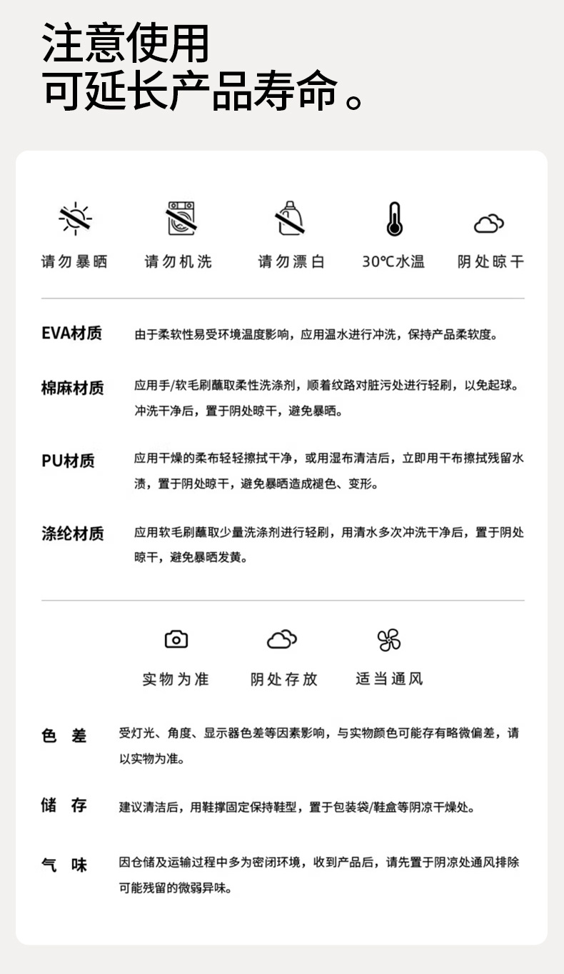 7:温馨提示:EVA材质拖鞋需避免高温暴晒,长时间高温会导致鞋子产生变形。