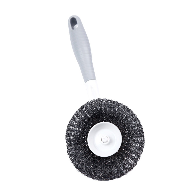 kitchen decontamination long handle steel wire ball washing pot brush household stainless steel cleaning ball cooktop cleaning brush washing brush wok brush