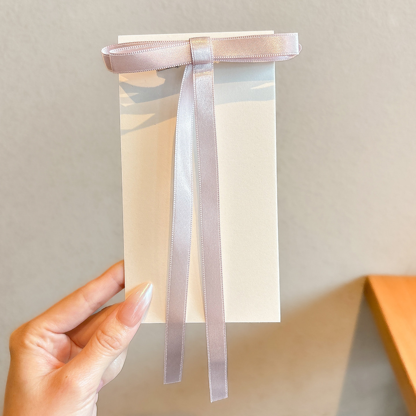 light pink double-layer bow ribbon hairpin 5.5cm