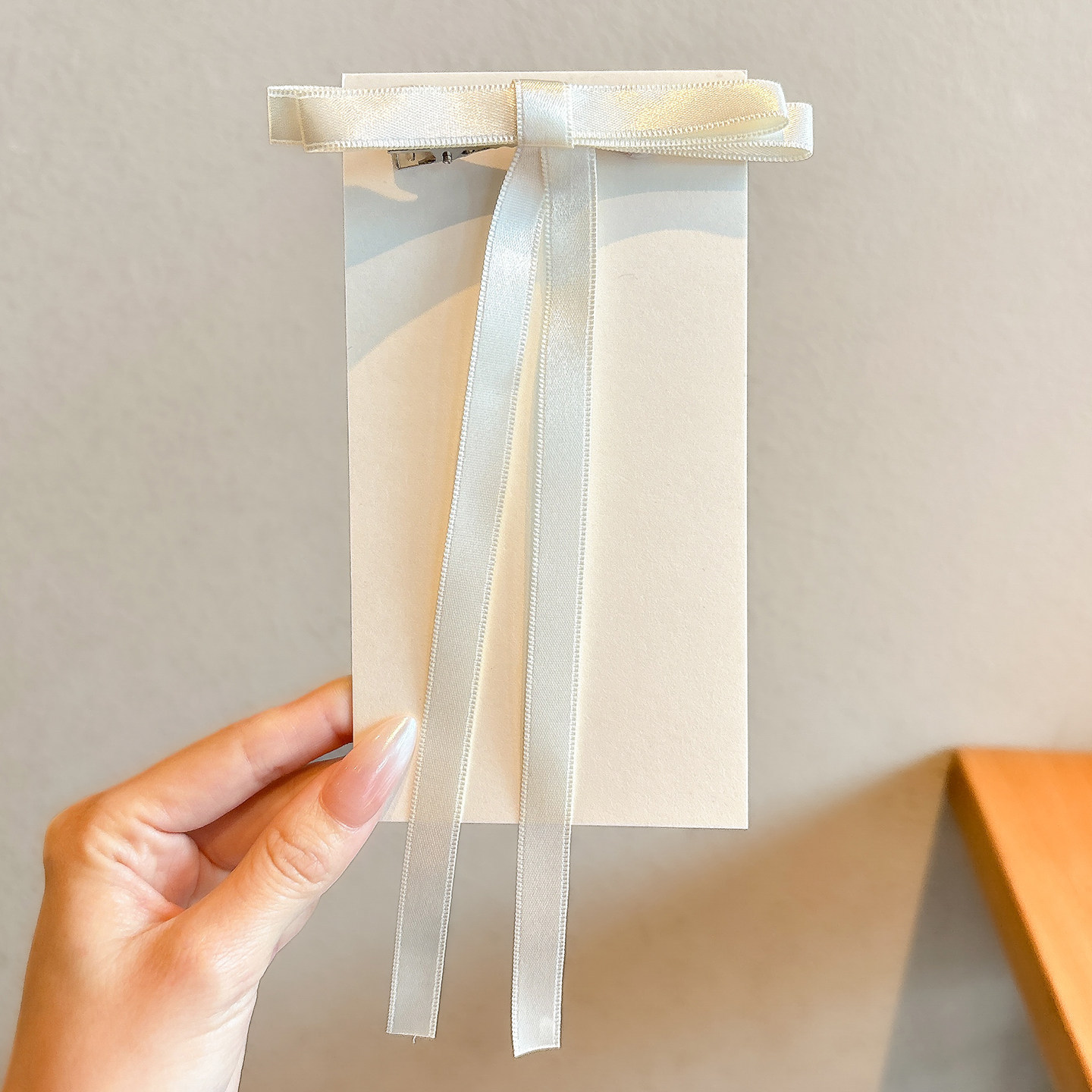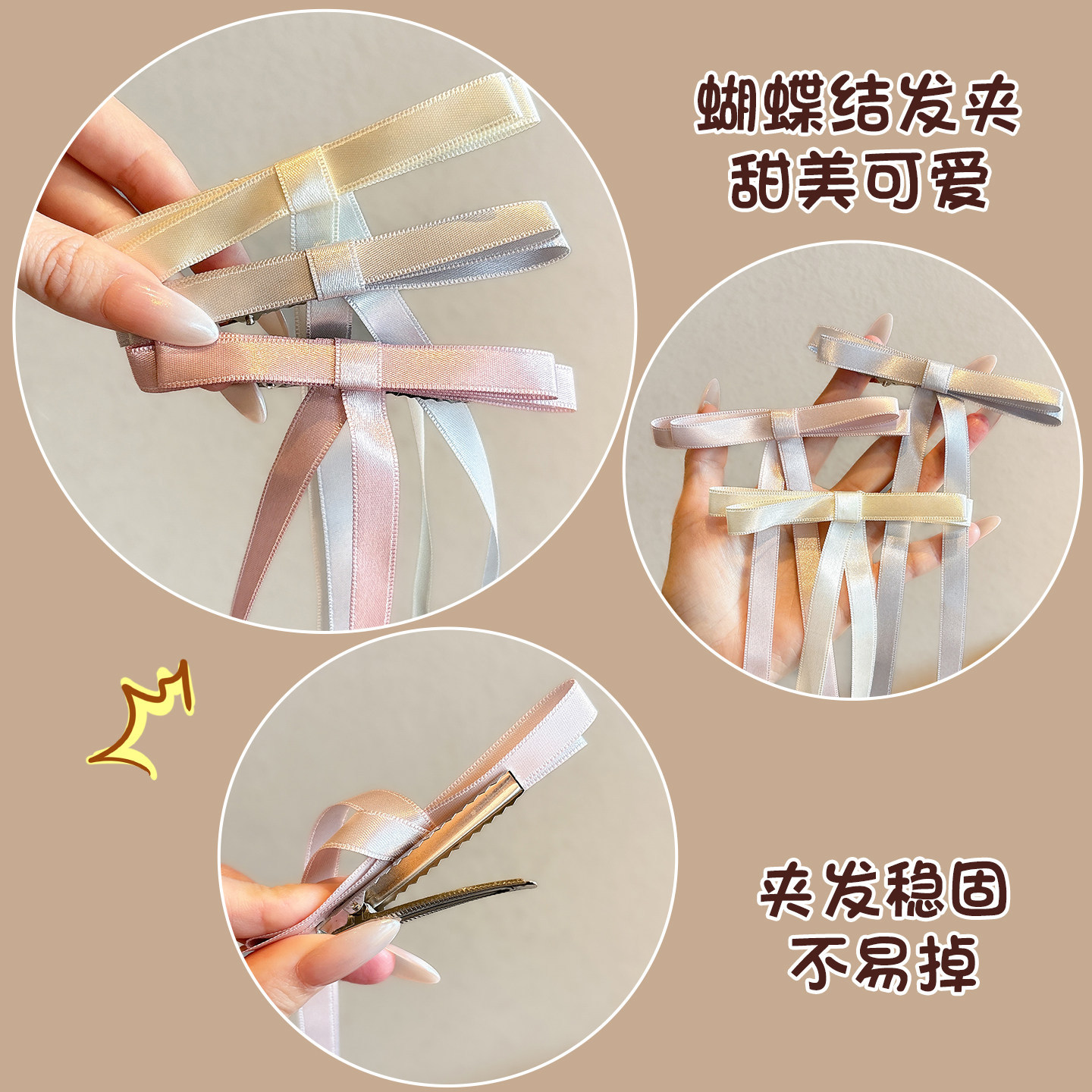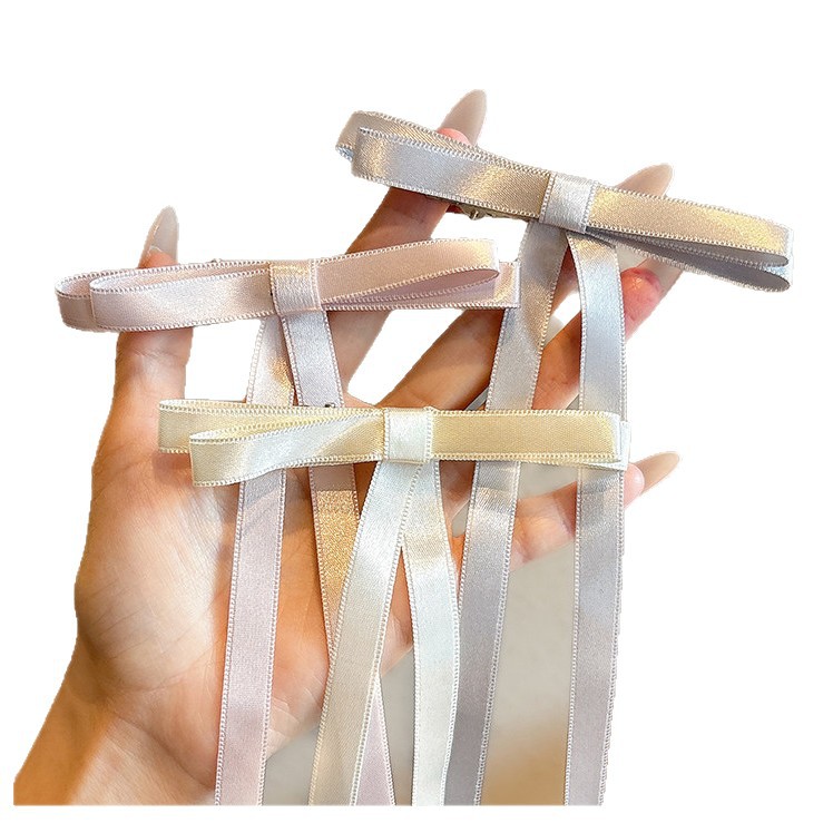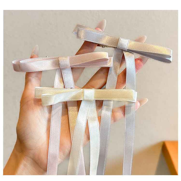 beige double bow ribbon hairpin 5.5cm