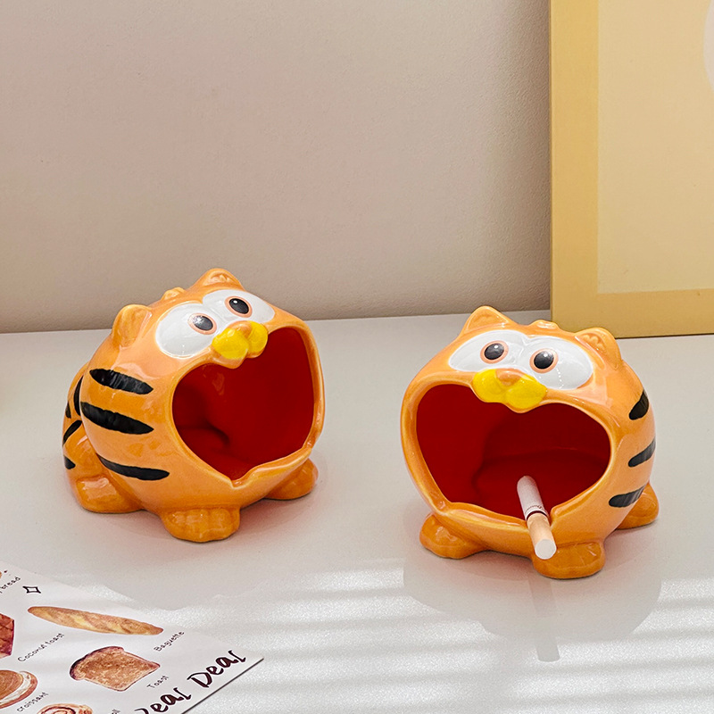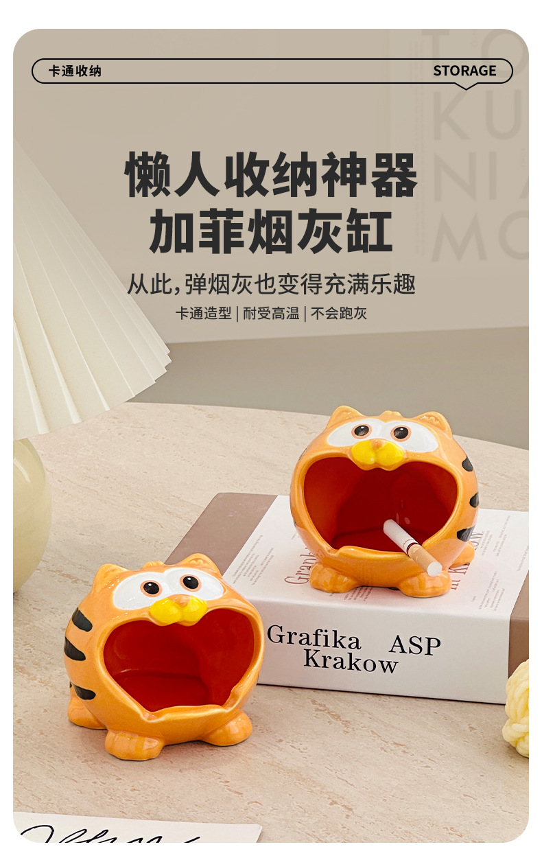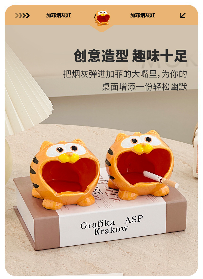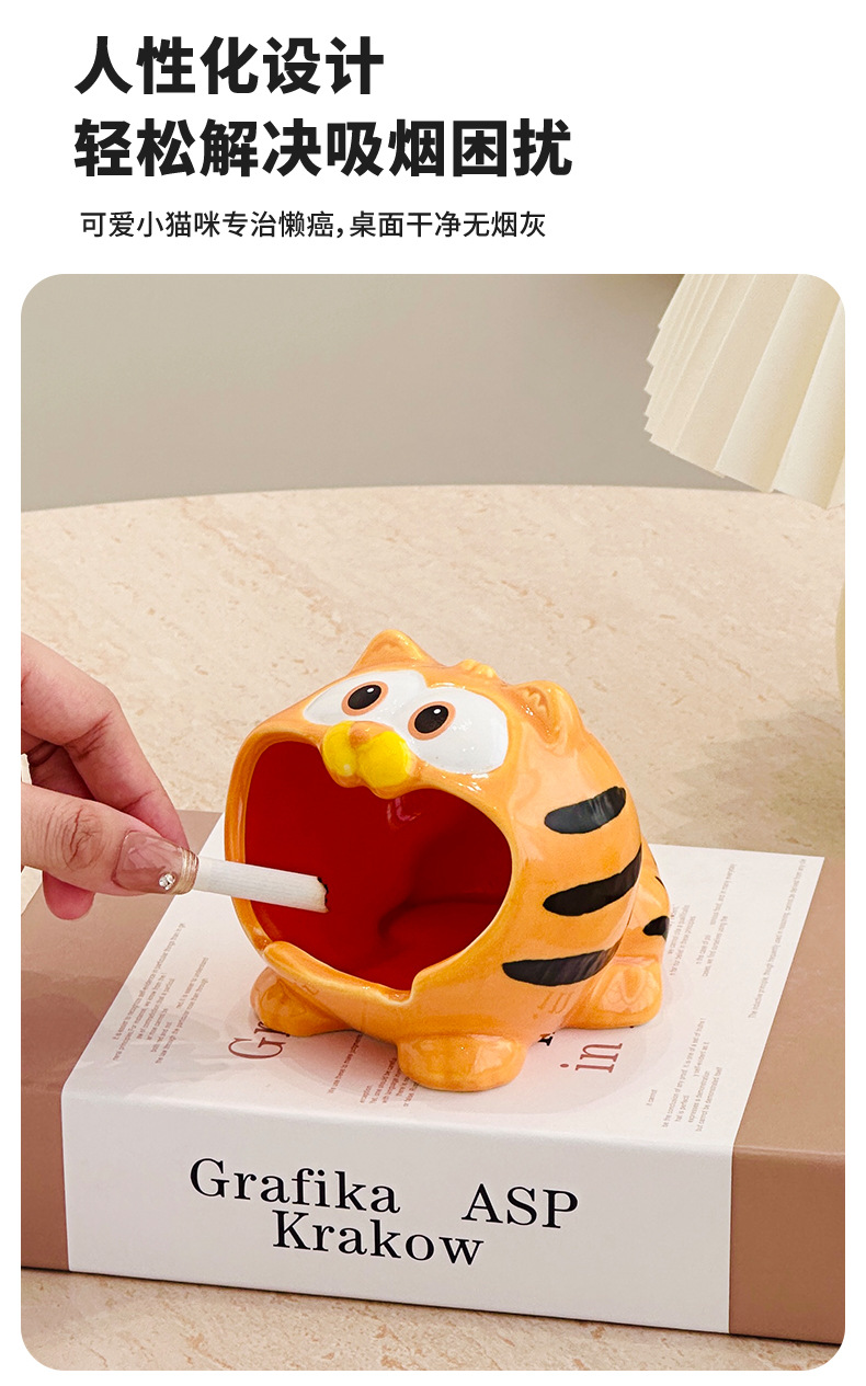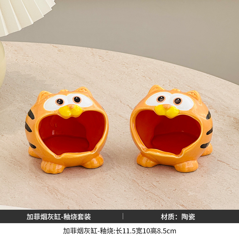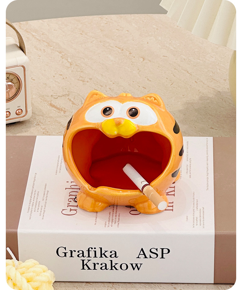 garfield ashtray glost firing ceramic home office high-end ornament simple with lid prevent fly ash living room decoration ashtray