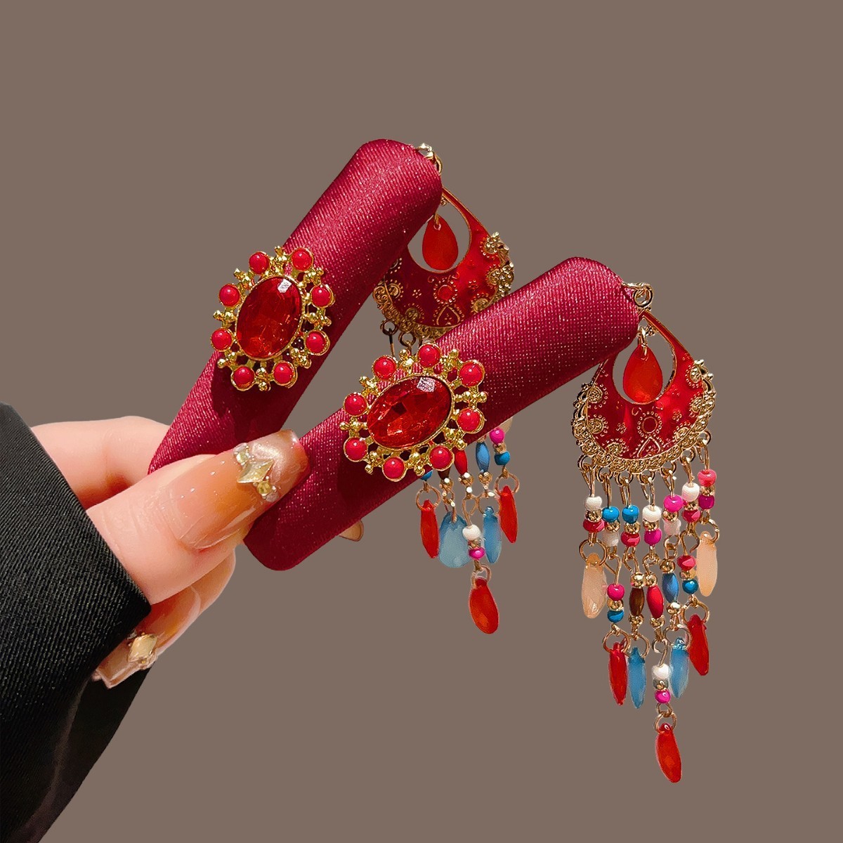 red velvet crystal tassel bb clip