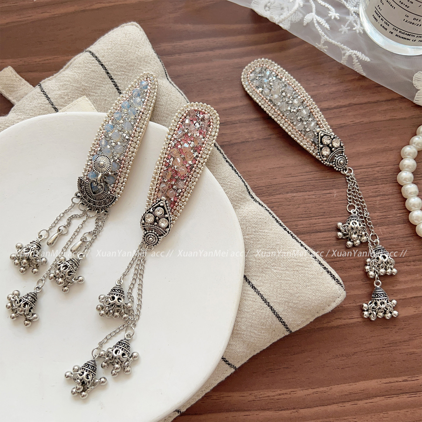 red silk pearl tassel bb clip