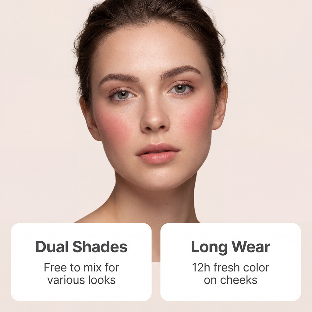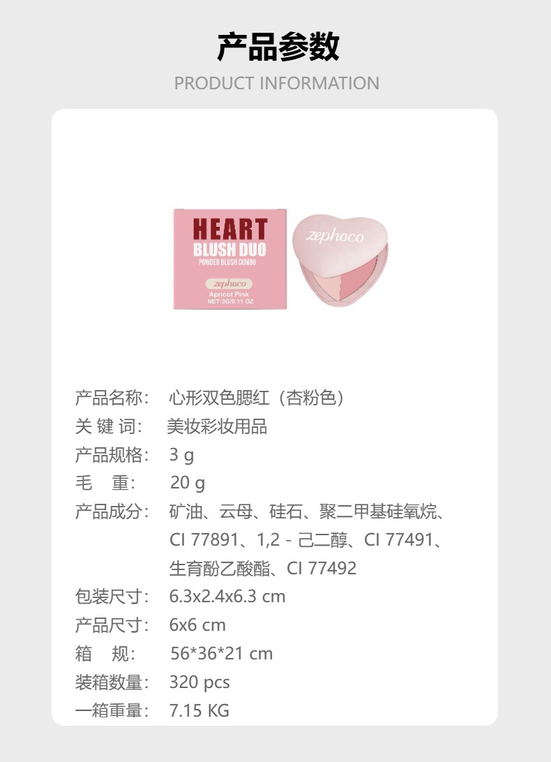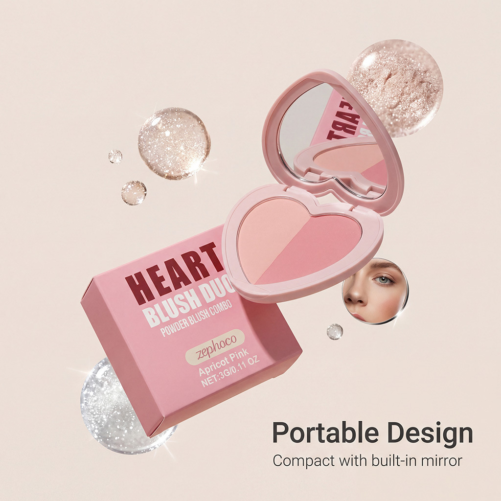 zephoco heart-shaped two-tone blush (apricot pink) creates natural red halo three-dimensional sense all-matching no falling out