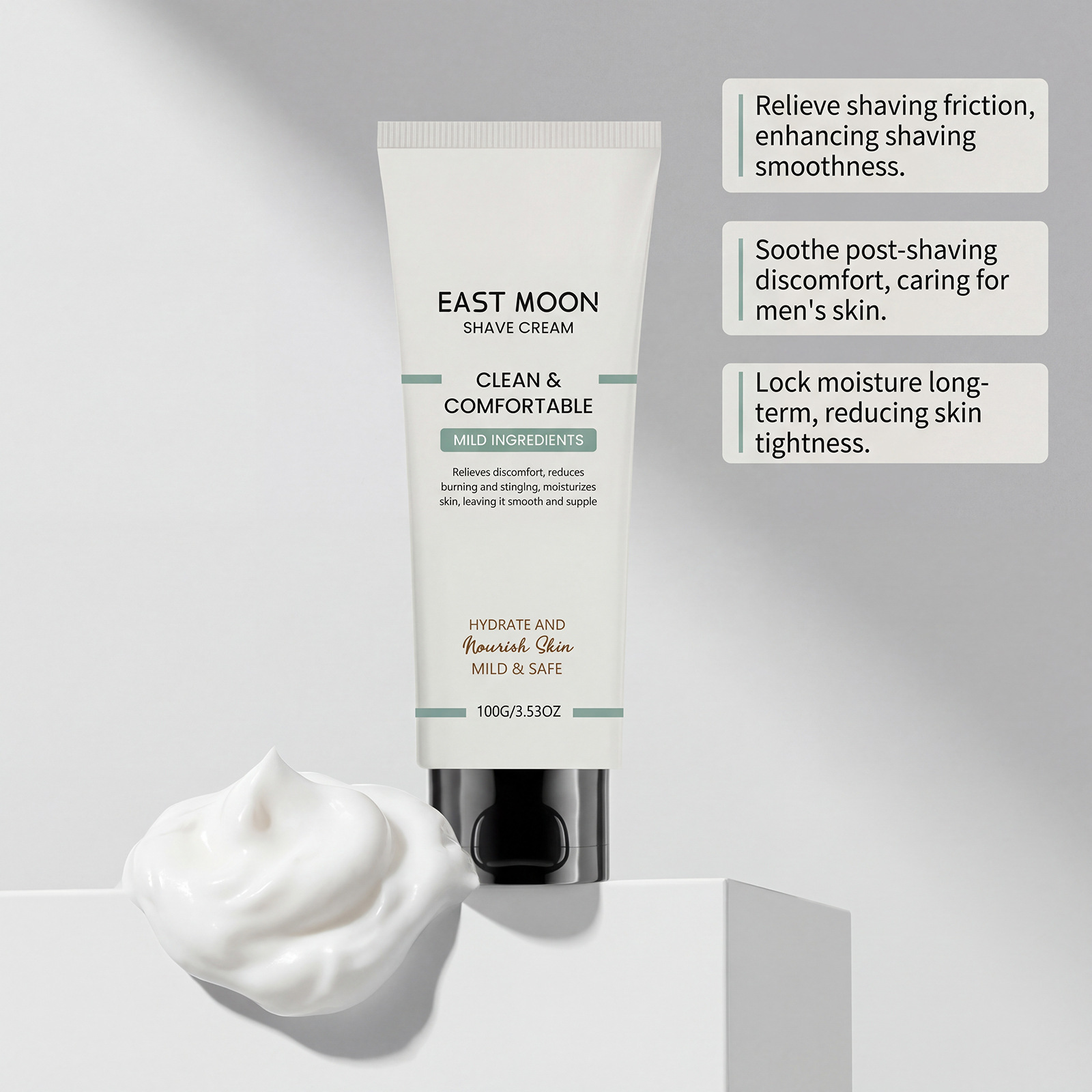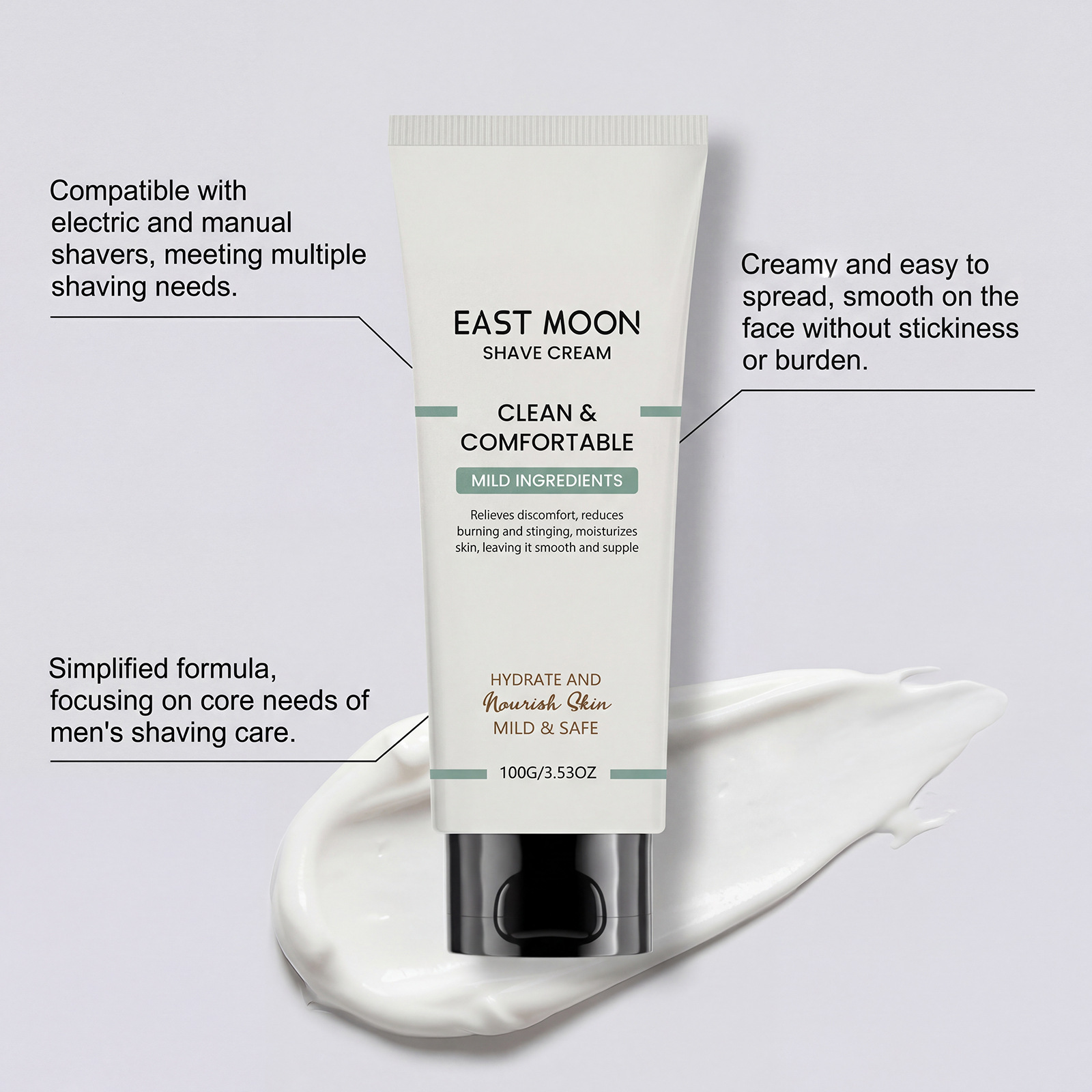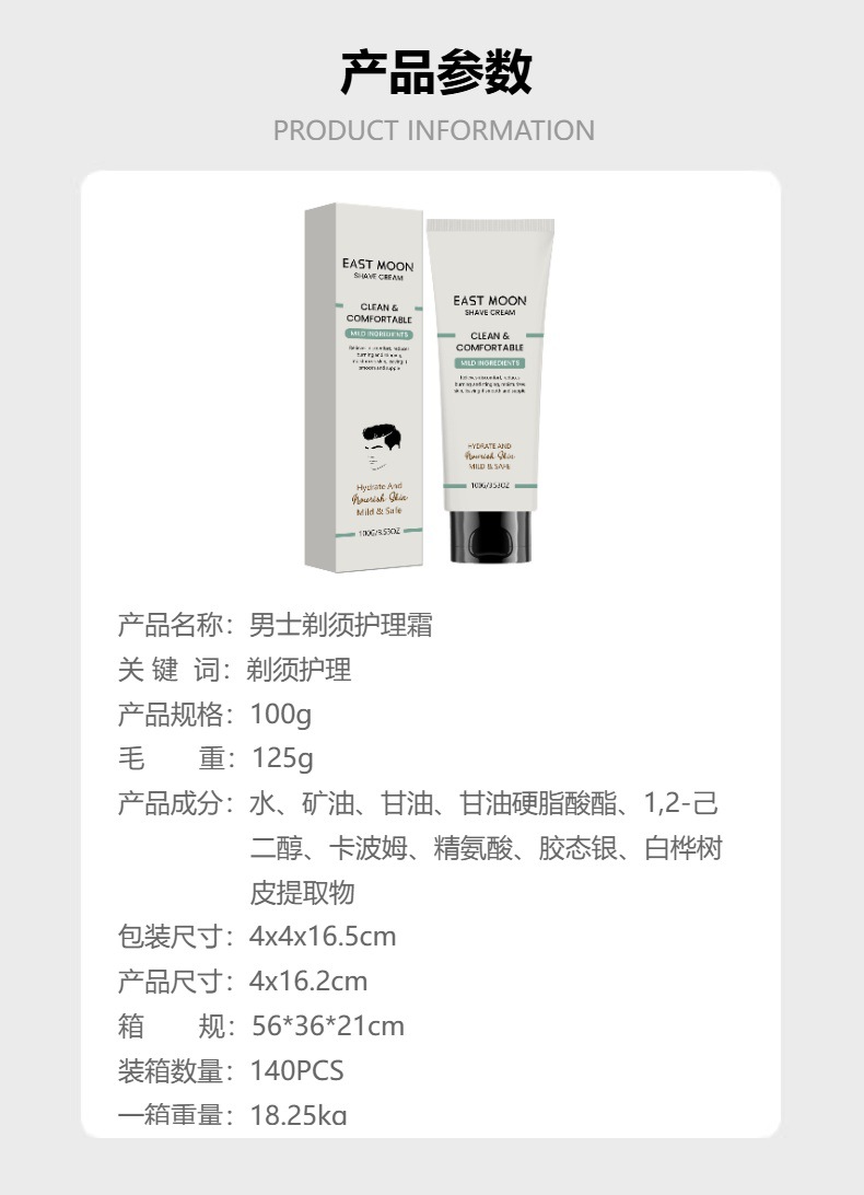 east moon men's pogonotomy neck cream daily mild cleansing facial refreshing smooth lightweight shaving cream