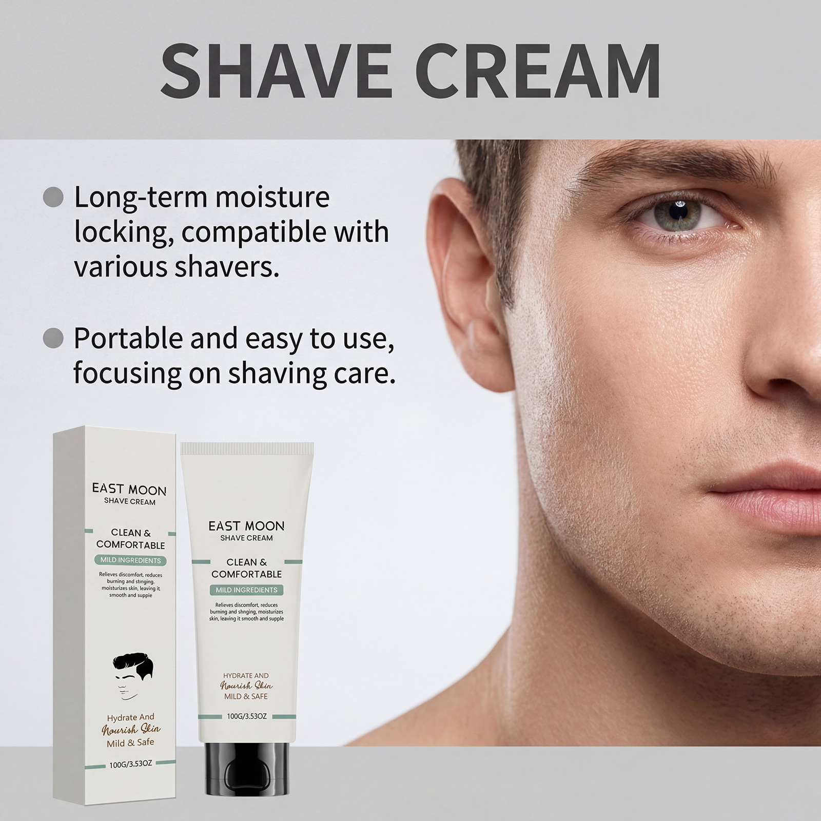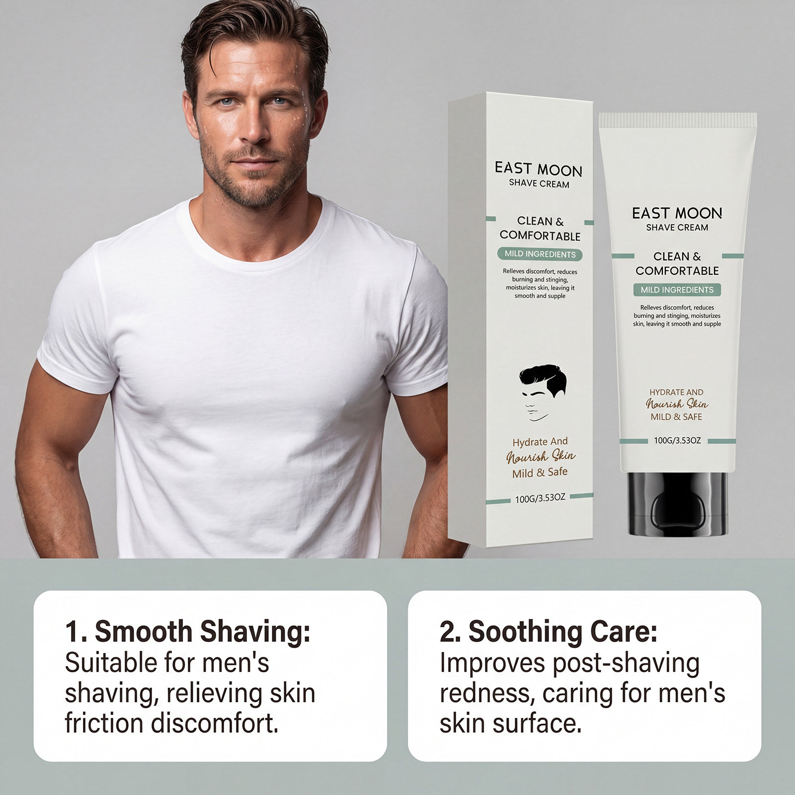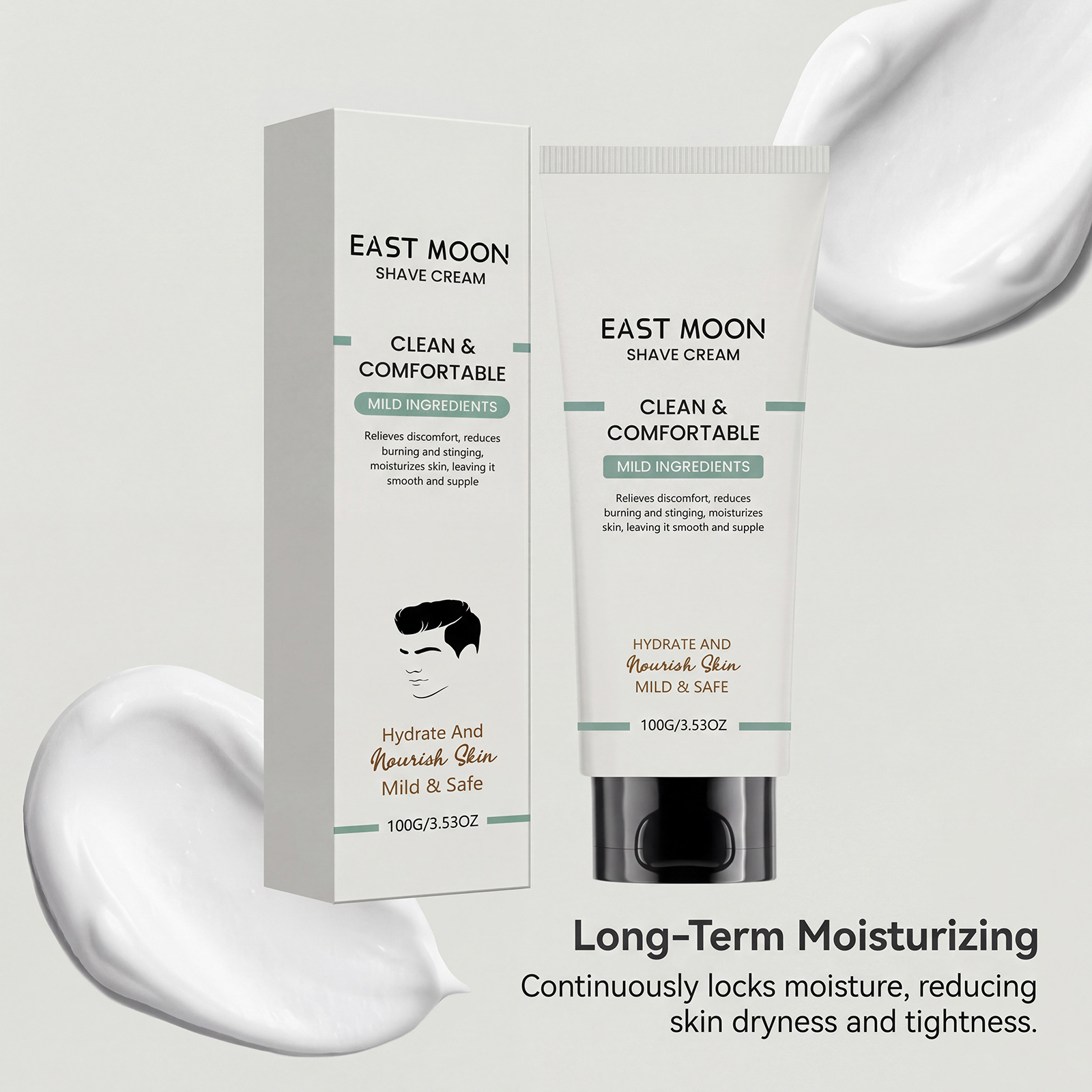 east moon men's pogonotomy neck cream daily mild cleansing facial refreshing smooth lightweight shaving cream